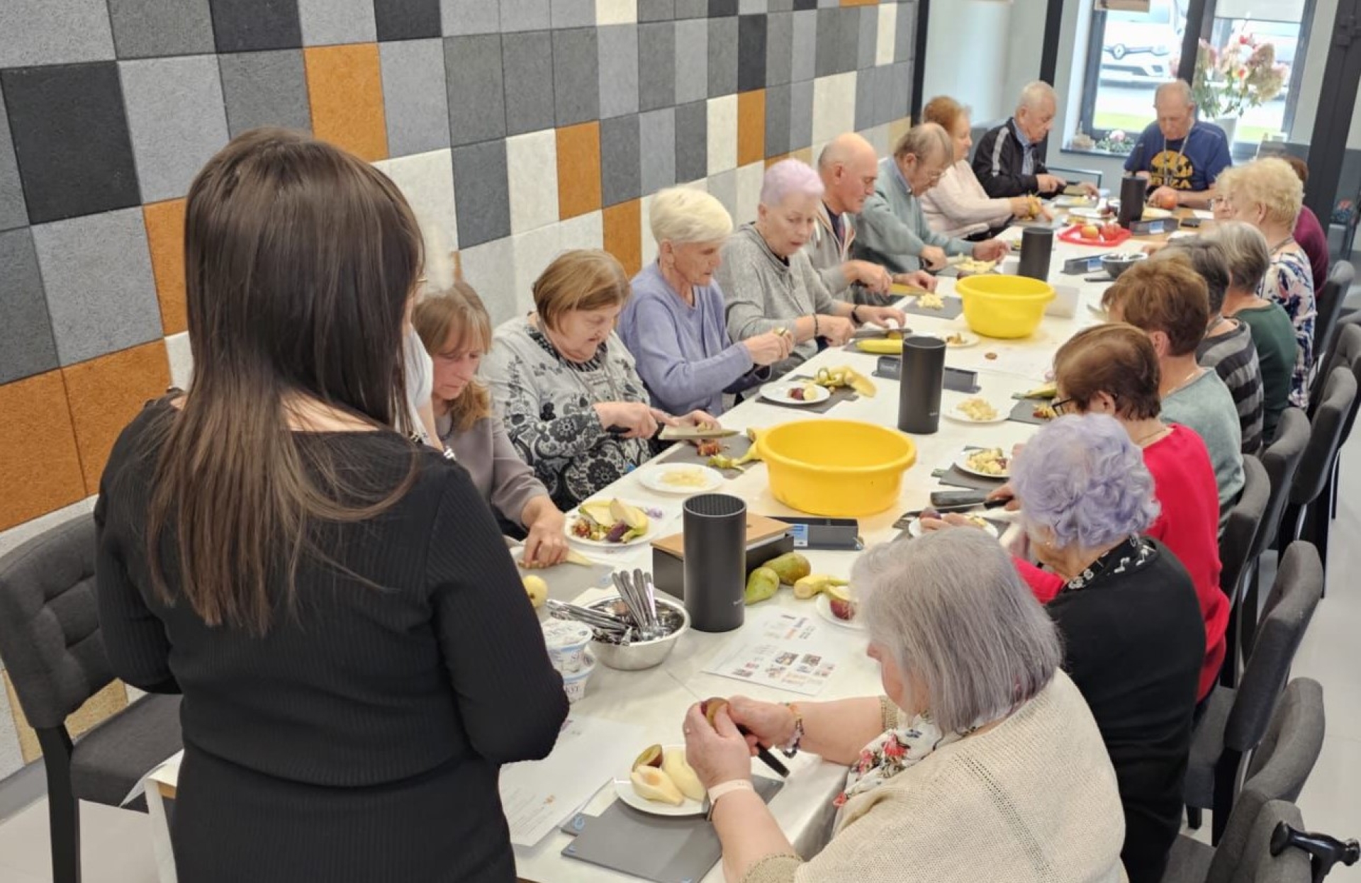 W październiku Seniorzy z Gminy Baranów w ramach projektu kontynuowali zajęcia ruchowe z elementami jogi, zumbę, zajęcia ogólnoruchowe oraz relaksacyjne. W związku z realizacją w/w zajęć zakupiono bieżnię elektryczną, fotele masujące, głośnik mobilny, zestaw nagłaśniający oraz słuchawki. Odbyły się także pierwsze warsztaty „Ogród w słoiku”, podczas których Seniorzy stworzyli miniaturowe ekosystemy zamknięte w szklanych słojach. Na warsztatach decoupage Seniorzy poznali technikę decoupage na drewnie, tworząc niepowtarzalnie ozdobione szkatułki. Z kolei warsztaty „zdrowy styl życia” podzielono na część teoretyczną, podczas której, korzystając z zakupionego rzutnika i ekranu projekcyjnego, Seniorom przekazano wiedzę na temat zasad zdrowego stylu życia z uwzględnieniem ich schorzeń oraz część praktyczną czyli naukę praktycznego przyrządzania zdrowych posiłków. W ramach w/w zadania zakupiono zmywarkę lodówkę, ekspres do kawy oraz mały sprzęt AGD – który Seniorzy wykorzystują do przygotowania zdrowych posiłków w trakcie warsztatów. Przerwy pomiędzy każdymi warsztatami Seniorzy spędzali przy poczęstunku we wspólnym gronie, który sprzyjał rozmowom i integracji grupy. Ponadto 27 października br. Seniorzy spędzili cały dzień w Termach Uniejów. Zakończona pysznym obiadem wycieczka okazała się doskonałym celem podróży dla osób starszych, potrzebujących prozdrowotnego relaksu i odpoczynku.