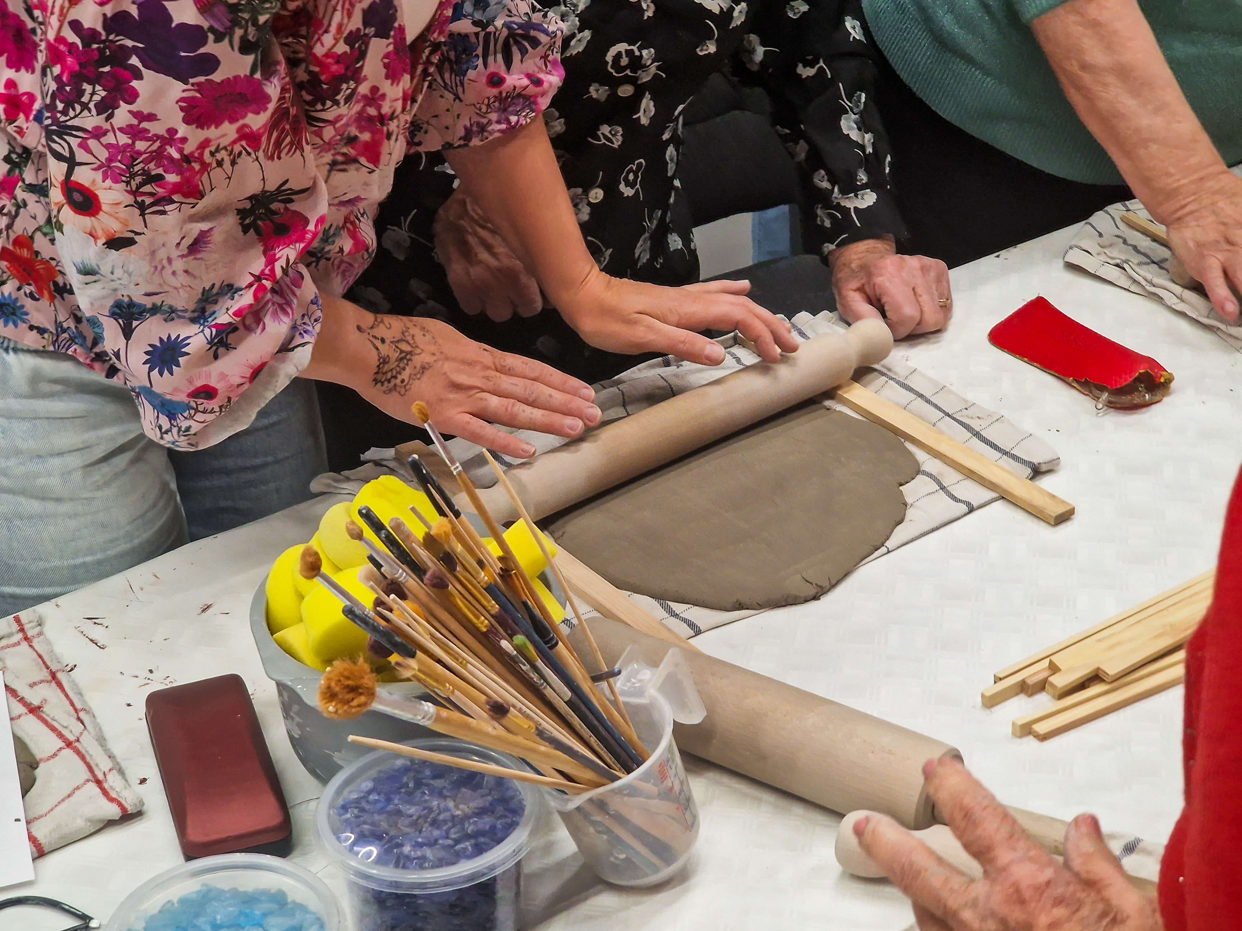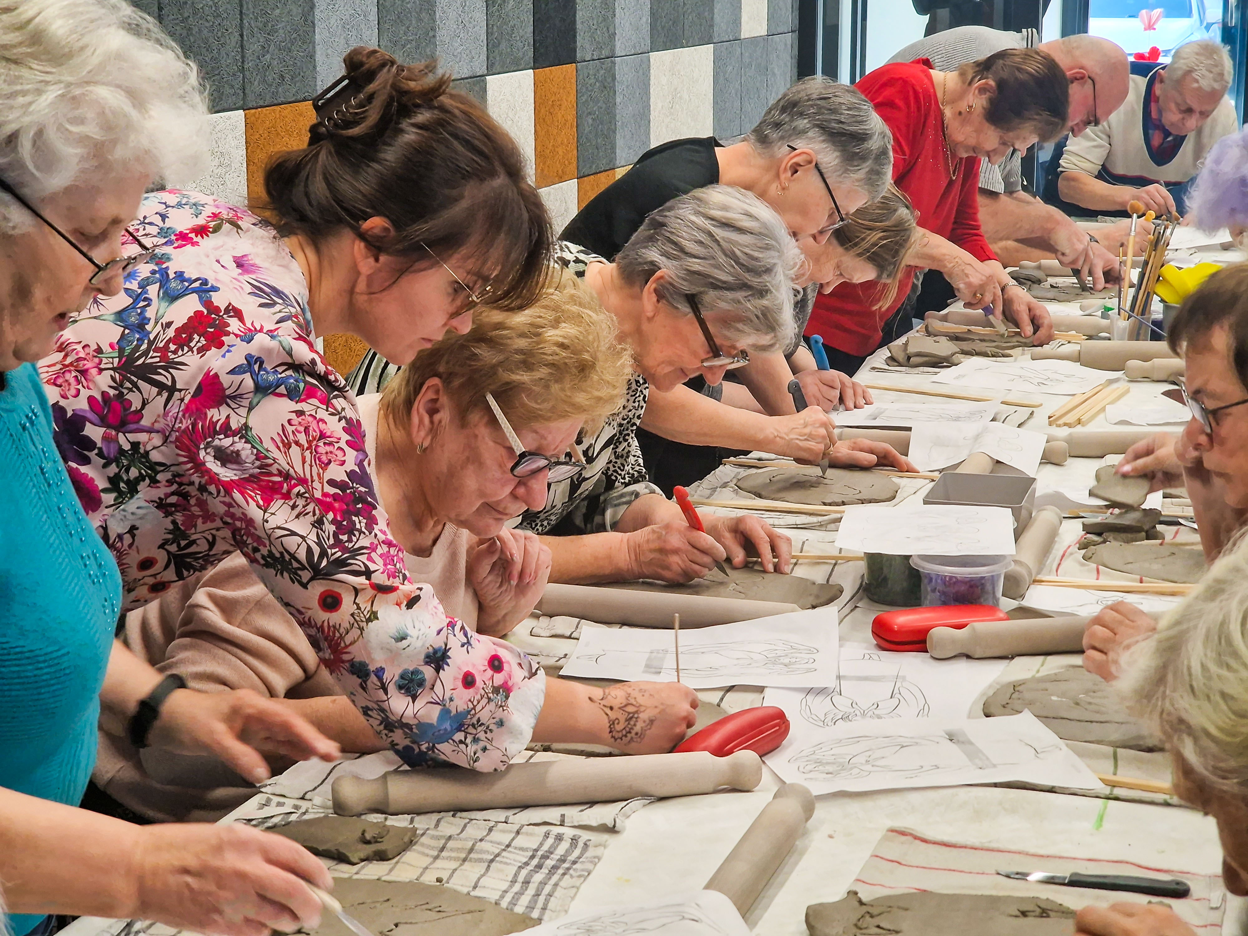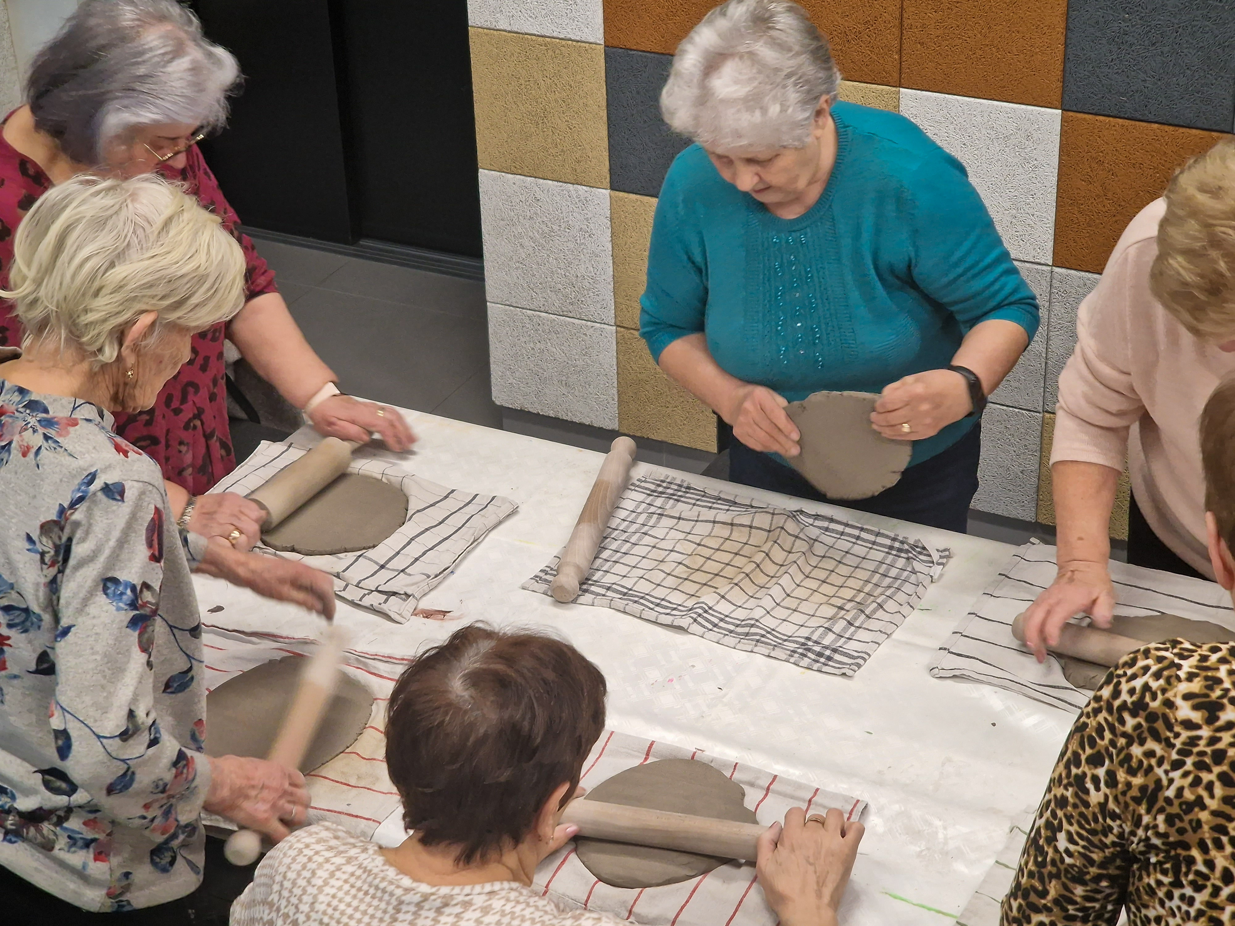 W trakcie cyklu 4 warsztatów Seniorzy poznają różne techniki formowania gliny, zdobienia oraz podstawy szkliwienia i wypalania ceramiki. Zdaniem prowadzącej warsztaty – pani Justyny Wolnej „Glina to niezwykły materiał o nieskończonych możliwościach. Jej plastyczność i kontakt z dłońmi mają kojące działanie, a sam proces tworzenia uczy cierpliwości i uważności. Powstałe prace są unikatowe, odzwierciedlają czas, emocje i osobistą ekspresję twórcy.” Warsztaty ceramiczne są wyjątkową, kreatywną formą integracji, podczas której Seniorzy rozwijają sprawność manualną i koordynację ruchową oraz pobudzają wyobraźnię przestrzenną tworząc dzieła z gliny.