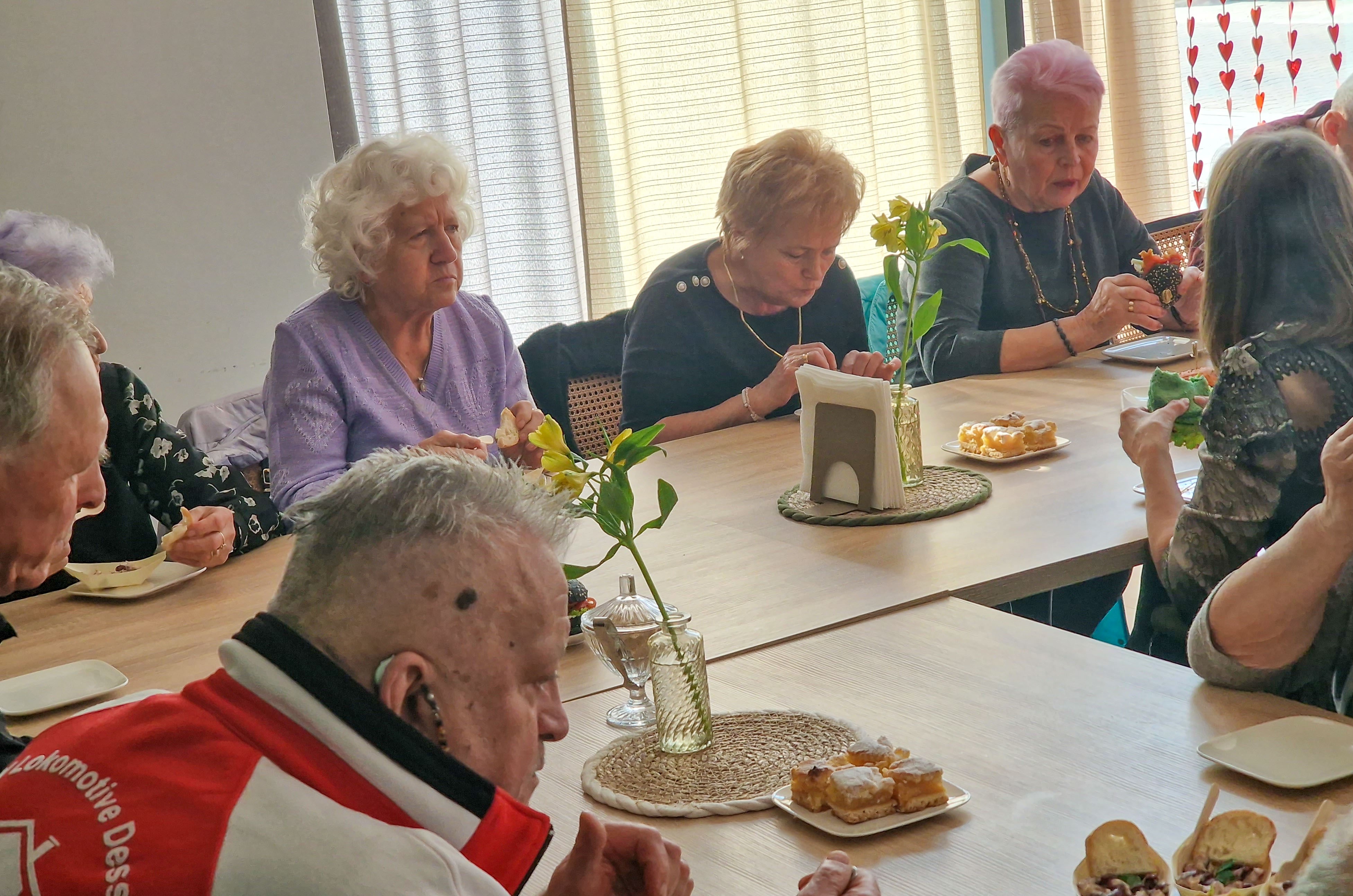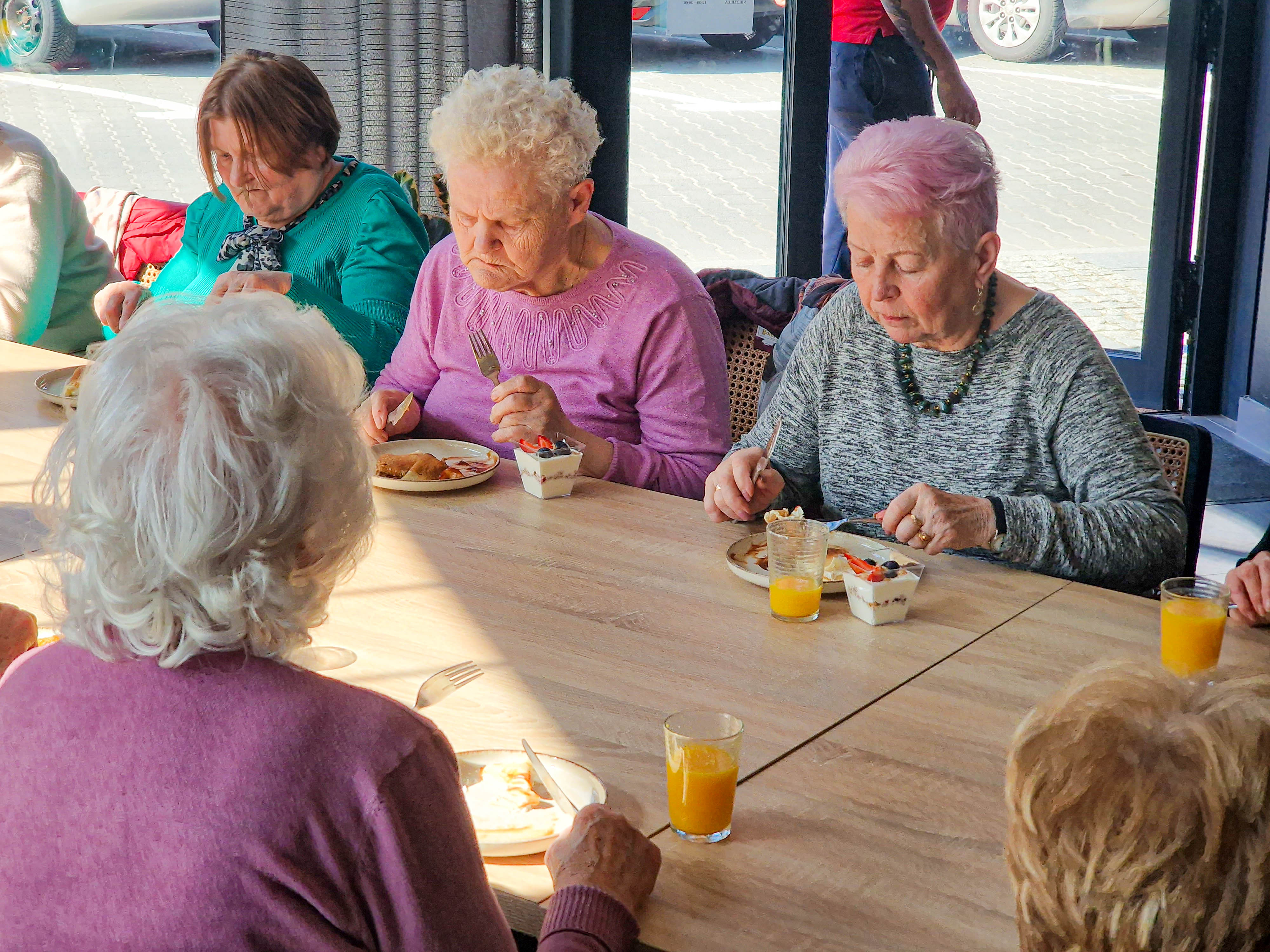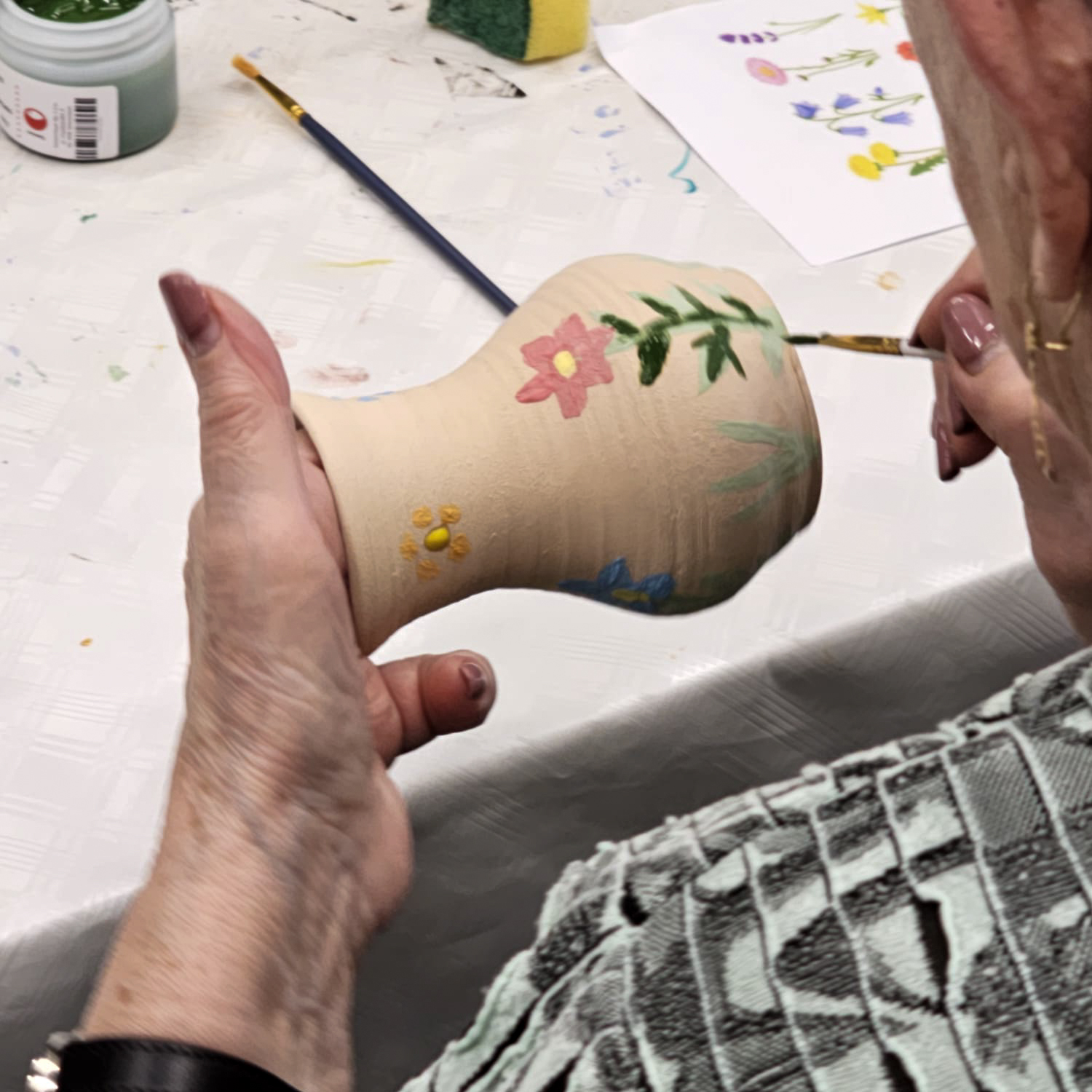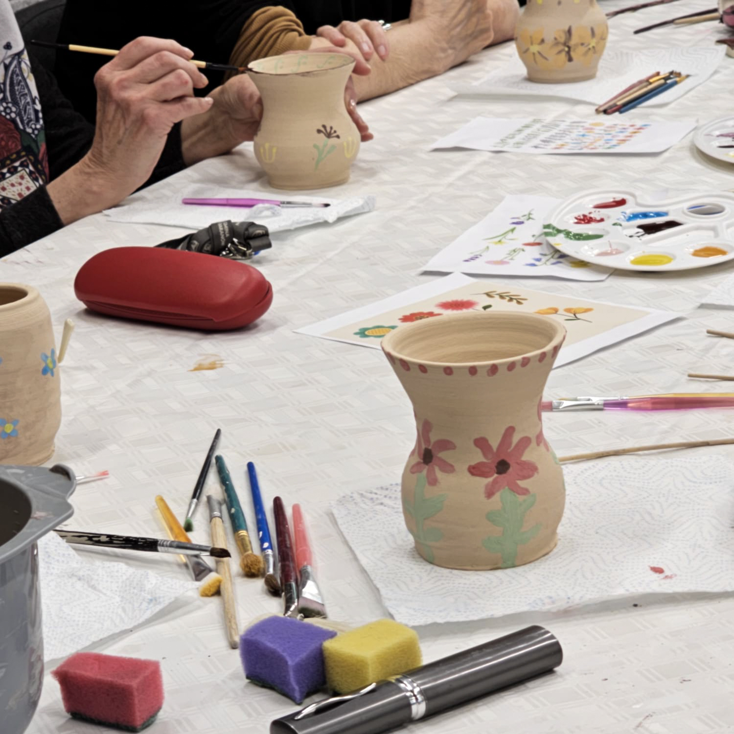 Odbyły się także kolejne warsztaty ceramiczne, których tematem było szkliwienie wypalonych naczyń. Po omówieniu przez prowadzącą procesu i technik szkliwienia (metoda nanoszenia szkliwa: zanurzanie oraz malowanie pędzlem) Seniorzy przystąpili do prac nad kolorystyką stworzonych przez siebie na poprzednich zajęciach aniołów oraz wazonów. Przygotowane tak prace zostały zabrane do pracowni na wypał końcowy. Przerwy pomiędzy warsztatami Seniorzy spędzali przy słodkim i owocowym poczęstunku we wspólnym gronie, który sprzyjał rozmowom i integracji grupy. Ponadto w ramach przerwy kawowej Seniorzy dwukrotnie wybrali się do pobliskiego Bistro na domowe wypieki, deserki, naleśniki, pyszną kawę i herbatę. W marcu Seniorzy uczestniczyli także w całodniowym wyjeździe do Muzeum Ceramiki w Bolesławcu. Wycieczka stanowiła uzupełnienie trwających warsztatów ceramicznych. Odwiedzając manufakturę w Bolesławcu Seniorzy zobaczyli z bliska, jak powstaje ceramika bolesławiecka oraz jak wygląda praca artystów i rzemieślników, którzy tworzą unikatowe wzory na ceramice. Dowiedzieli się także o tradycjach i technikach stosowanych przy wytwarzaniu ceramiki bolesławieckiej. Ponadto, uczestnicy projektu wzięli udział w warsztatach ceramicznych, podczas których samodzielnie ozdabiali wybrane przedmioty ceramiczne, tworząc osobistą pamiątkę pełną wspomnień.