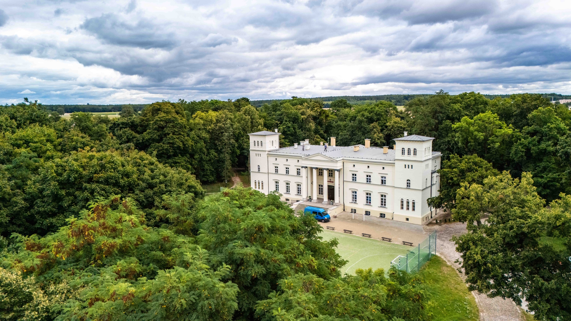 Późnoklasycystyczny budynek wzniesiony w latach 1840-50 na planie prostokąta, prawie idealnie w osi W-E, fasadą zwrócony na północ, podpiwniczony, piętrowy z mezzaninem, z 9-osiową fasadą, po bokach której znajdują się dwie trójkondygnacyjne, alkierzowe wieże. Pośrodku fasady portyk kolumnowy, dźwigający belkowanie i trójkątny fronton. Wejście poprzedzone szerokimi schodami, ujętymi stopniowanym murkiem. „Pałac Wężyka”, bo o nim mowa, już 1 września powita swoich uczniów w zupełnie odświeżonej odsłonie.