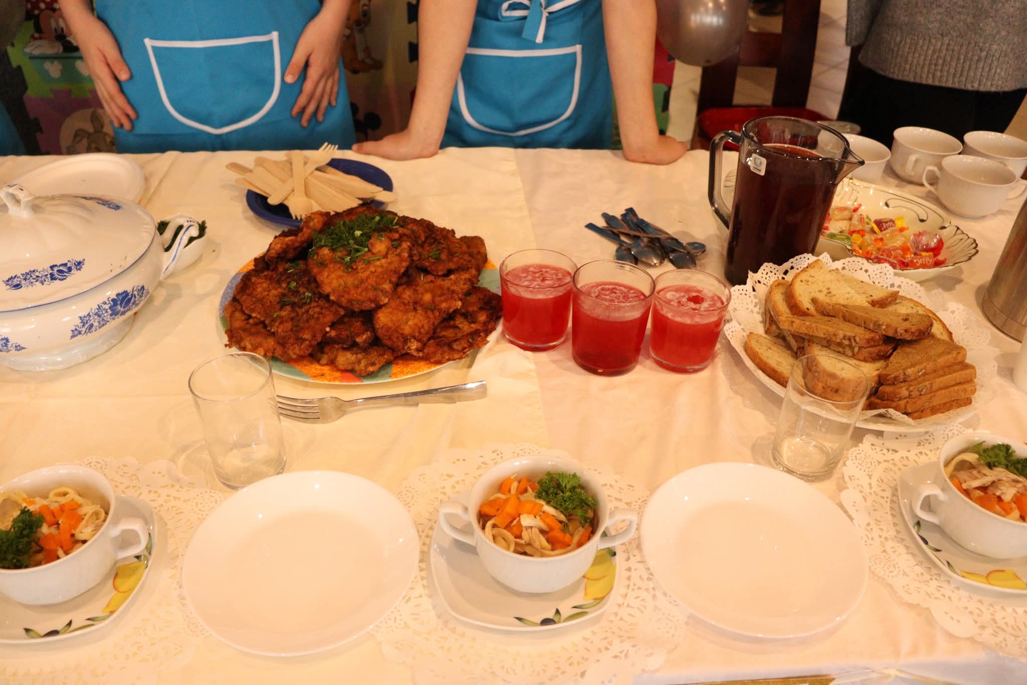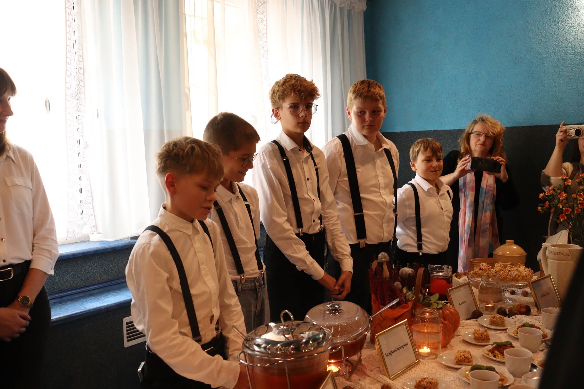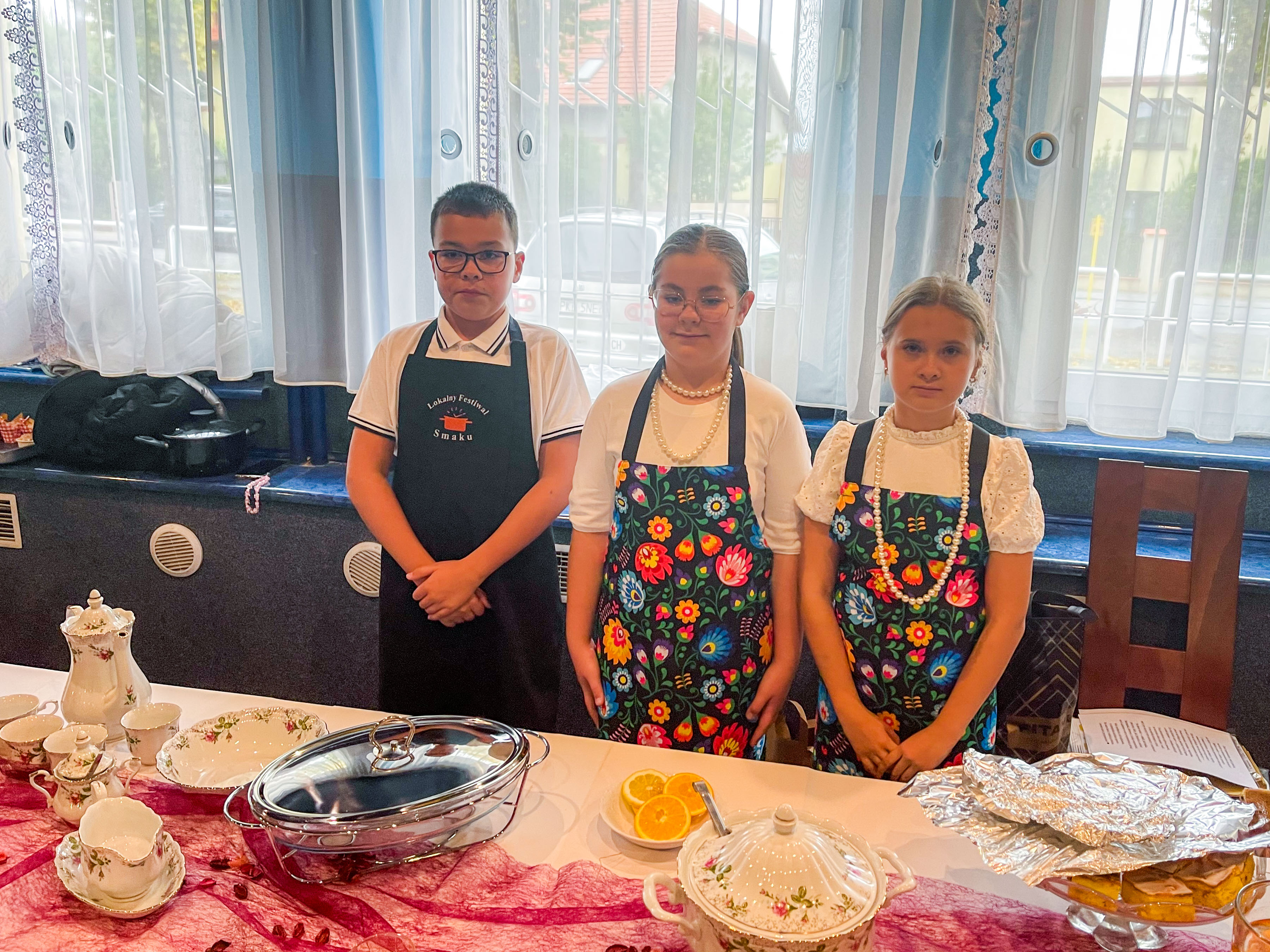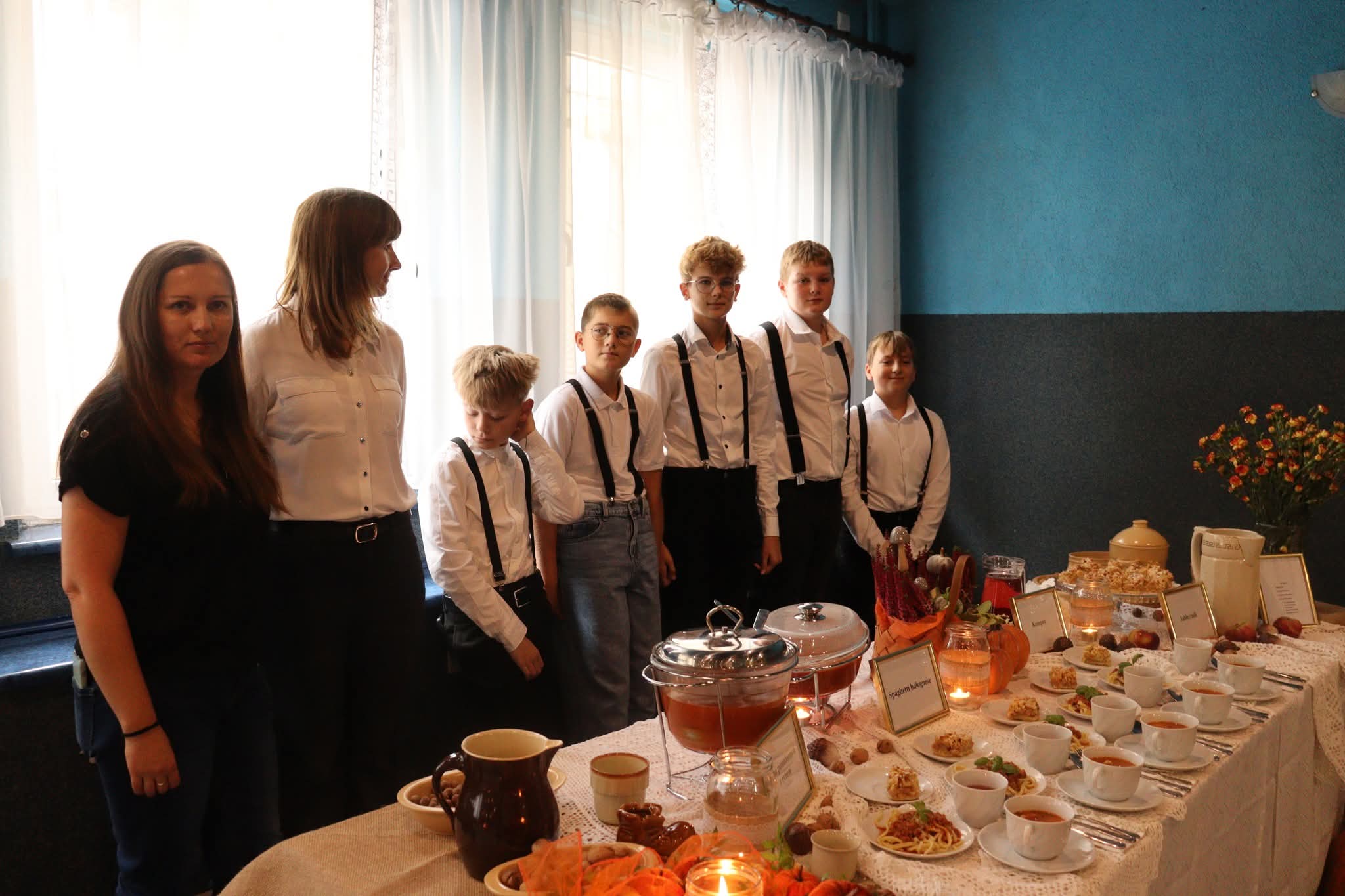 Grupa I, pod opieką pań Sylwii Goli, Beaty Misiek i Barbary Wiśniewskiej (uczestnicy: Blanka Kowalilak, Nikola Misiek, Filip Wiśniewski, Anna Gola), przygotowała tradycyjny rosół z lanymi kluskami, pieczeń z karkówki z ciemnym sosem i szarymi kluskami, surówkę z białej kapusty, kompot z dyni oraz sernik. Grupa II, której opiekunkami były panie Ivana Karliak i Olena Okhremchuk (uczestnicy: Artur Karliak, Andrej Okhremchuk, Dawid Usiak), zaserwowała rosół, kotlet schabowy z kością, pieczone ziemniaki, surówkę i deserki. Grupa III pod kierunkiem pań Karoliny Wodyńskiej, Urszuli Marczak i Katarzyny Nawrot (uczestnicy: Maja Marczak, Maja Wodyńska, Kamila Marczak, Dominika Wodyńska, Nadia Nawrot) zachwyciła jury rosołem, roladą z kluskami i surówką z czerwonej kapusty oraz pachnącą szarlotką. Grupa IV, pracująca pod opieką pań Weroniki Serafin, Katarzyny Kani i Hanny Rymus (uczestnicy: Lilianna Kania, Agata Stasiewska, Maja Czechlowska, Maria Serafin, Oliwia Rymus) przygotowała żurek, schab duszony z ziemniakami i surówką oraz kolorowe babeczki. Grupa V, prowadzona przez panie Emilię Rachulę i Ewelinę Klimecką (uczestnicy: Kacper Rachula, Konrad Klimecki, Jan Lipiński, Hubert Murawski, Stanisław Zimoch), postawiła na prostotę i smak – serwując zupę pomidorową z ryżem, makaron z sosem pomidorowym i jabłecznik. Natomiast Grupa VI, pod czujnym okiem pań Anny Tyry, Mazur i Marty Wojtkowskiej (uczestnicy: Milena Tyra, Marta Mazur, Lena Handrysik), przyrządziła zupę pomidorową z makaronem, kotlet „szarpany” z pieczonymi ziemniaczkami i surówką oraz aromatyczne ciasto ze śliwkami.