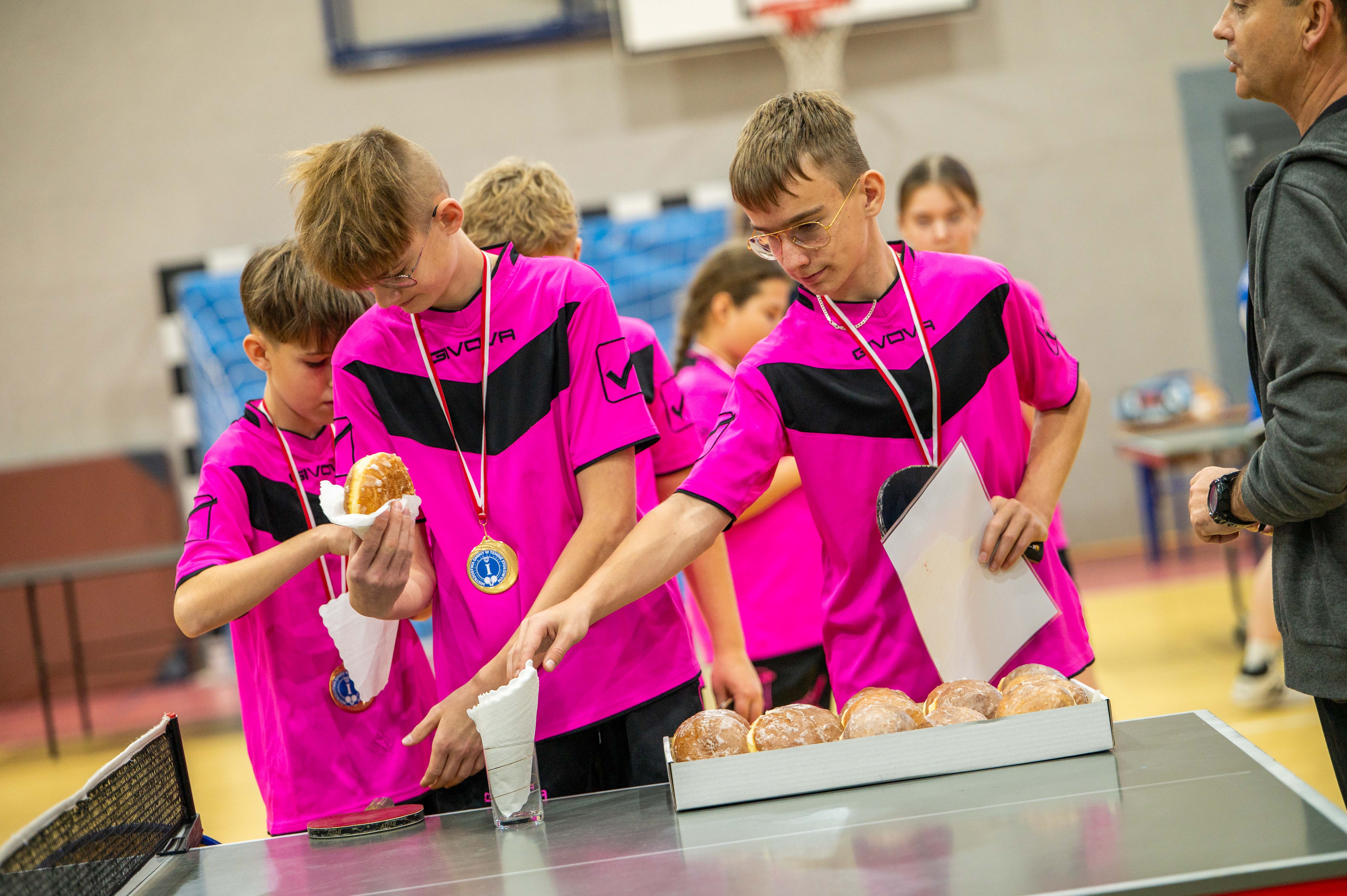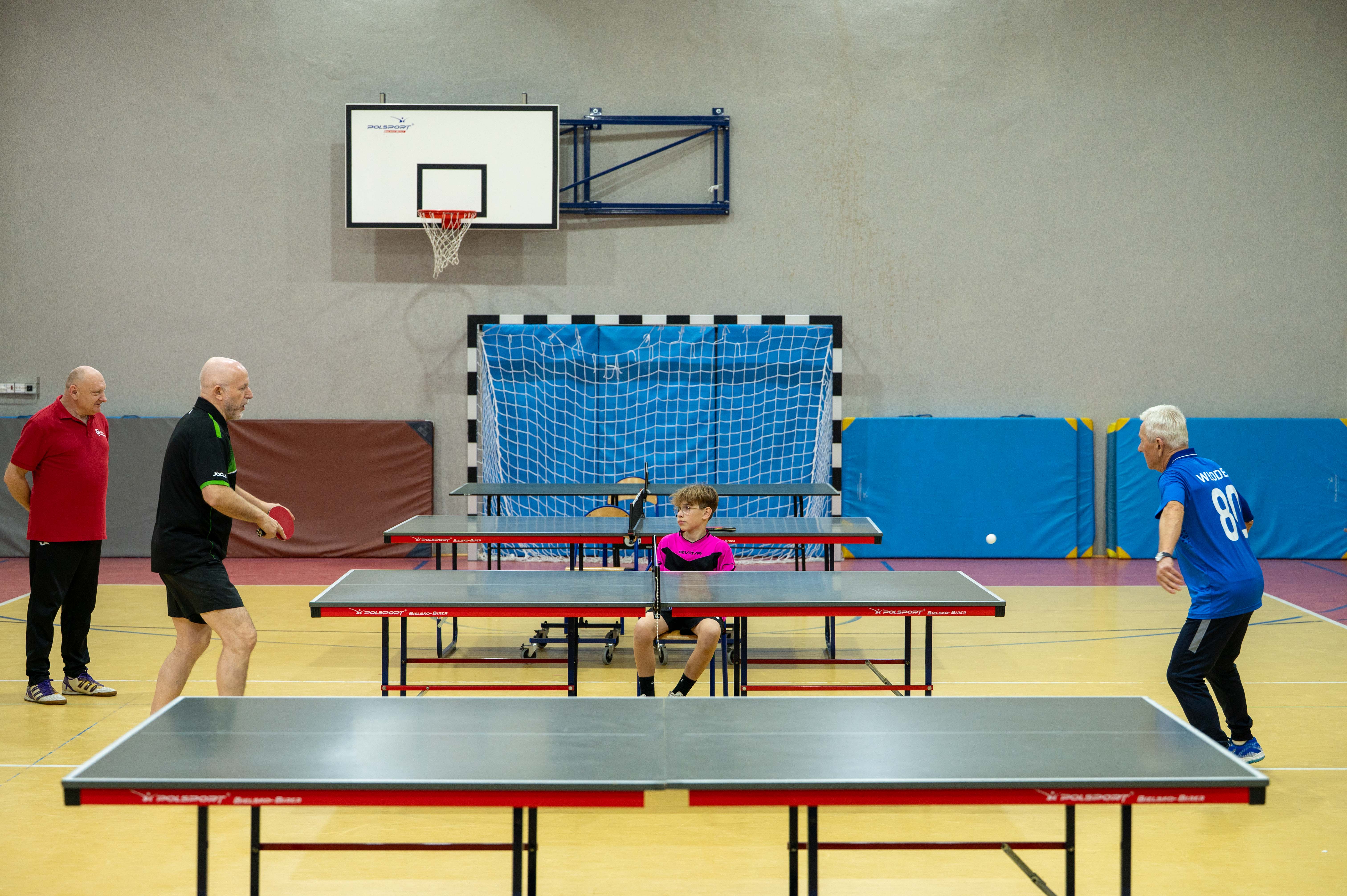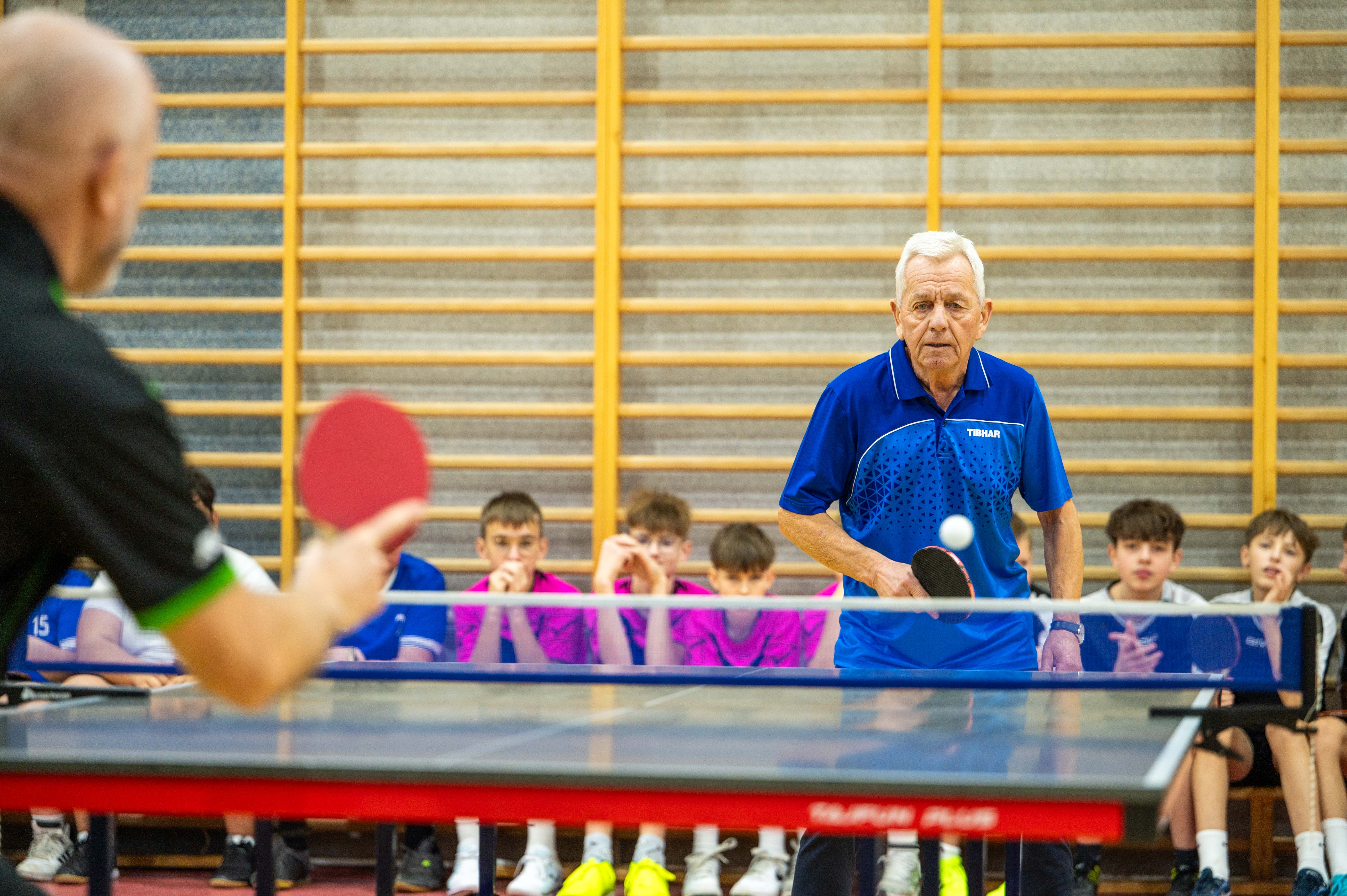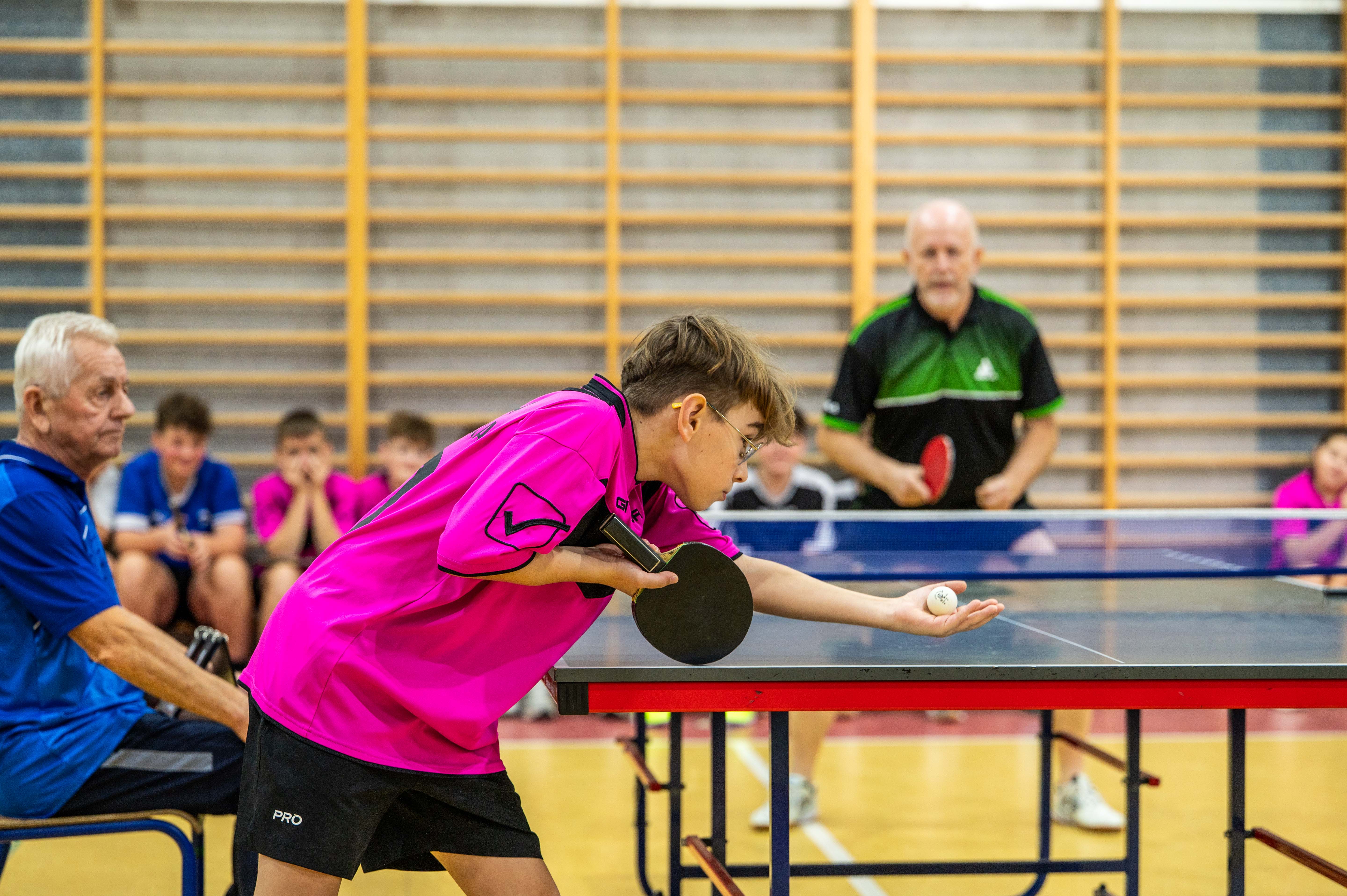 Regulamin zawodów animowanych przez Szkolny Związek Sportowy jest często uproszczeniem zasad rządzących grami profesjonalnymi. Dotyczy to również tenisa stołowego, albo …ping-ponga. Różnicę tę cierpliwie tłumaczył ekspert, gość specjalny naszego turnieju oraz sędzia główny w jednej osobie. - Ping-pong jest młodą dyscypliną sportu, która narodziła się na nowo zaledwie 14 lat temu w USA. Tam też, w 2011 roku zostały po raz pierwszy rozegrane Mistrzostwa Świata. W ping-pongu seta wygrywa osoba, która pierwsza zdobędzie 15 punktów. Przy stanie 14:14 wygra zawodnik który zdobędzie 15 punkt. Gra się do 2 wygranych setów. Turnieje rozgrywane są wyłącznie rakietkami oklejonymi papierem ściernym koloru niebieskiego lub szarego dostarczonymi przez organizatorów. Zawodnicy po zakończonym secie zmieniają strony stołu i wymieniają się rakietkami. Urozmaiceniem jest przepis, że raz w meczu można zmienić kolor piłki, co oznacza, że gra się tzw. „double point ball”. Może to zrobić serwujący, o ile nie zdobył w secie więcej niż 12 punktów. Jeżeli wygra tę piłkę, to dostaje 2 punkty, gdy przegra - przeciwnik otrzymuje jeden punkt. Cały mecz gra się pomarańczową piłką, a białą tylko „double point ball” – objaśniał Jan Kasendra. Lista triumfów Jana Kasendry jest iście bajkowa. - Moje największe sukcesy to: Mistrzostwo Polski Amatorów, kilka tytułów wicemistrza Polski Amatorów, kilka 3. miejsc w Mistrzostwach Polski Amatorów, 3. miejsce w kategorii open powyżej 50 lat z udziałem zawodowców. Natomiast wśród profesjonalistów najwyżej cenię sobie: brązowy medal w Mistrzostwach Polski Masters w grze podwójnej, 2 miejsce w Grand Prix Polski Masters w Międzyzdrojach, 2. Miejsce w Grand Prix Polski Masters w Węgierskiej Górce i kilka trzecich miejsc w cyklu rozgrywek Grand Prix Polski Masters. Z imprez o randze międzynarodowej najlepsze wyniki to: 9. miejsce w Mistrzostwach Europy w grze mieszanej, 17. miejsce w grze podwójnej w Mistrzostwach Europy w Sandefjord w Norwegii (w grupie pokonaliśmy Niemców, późniejszych wicemistrzów Europy).