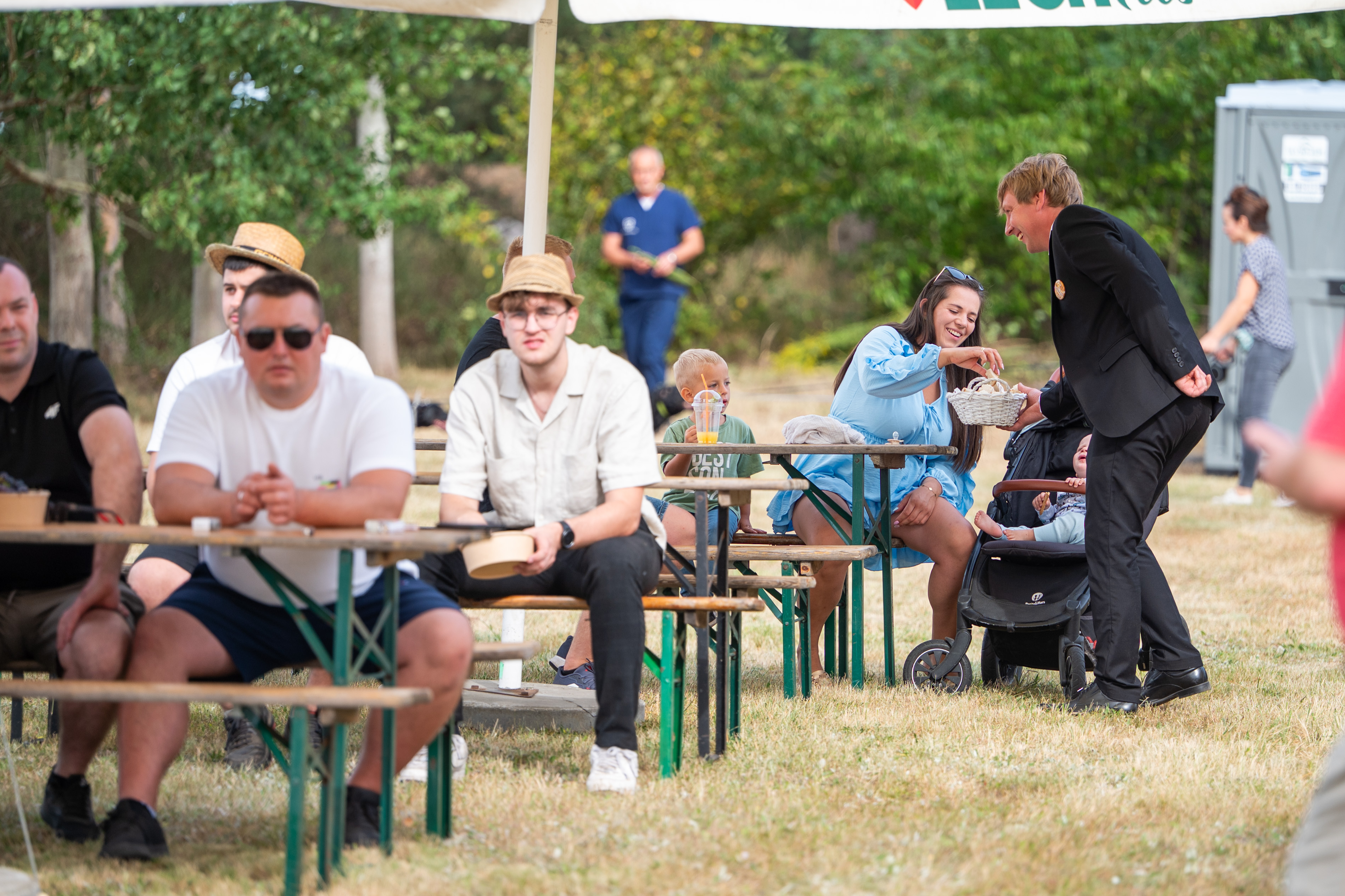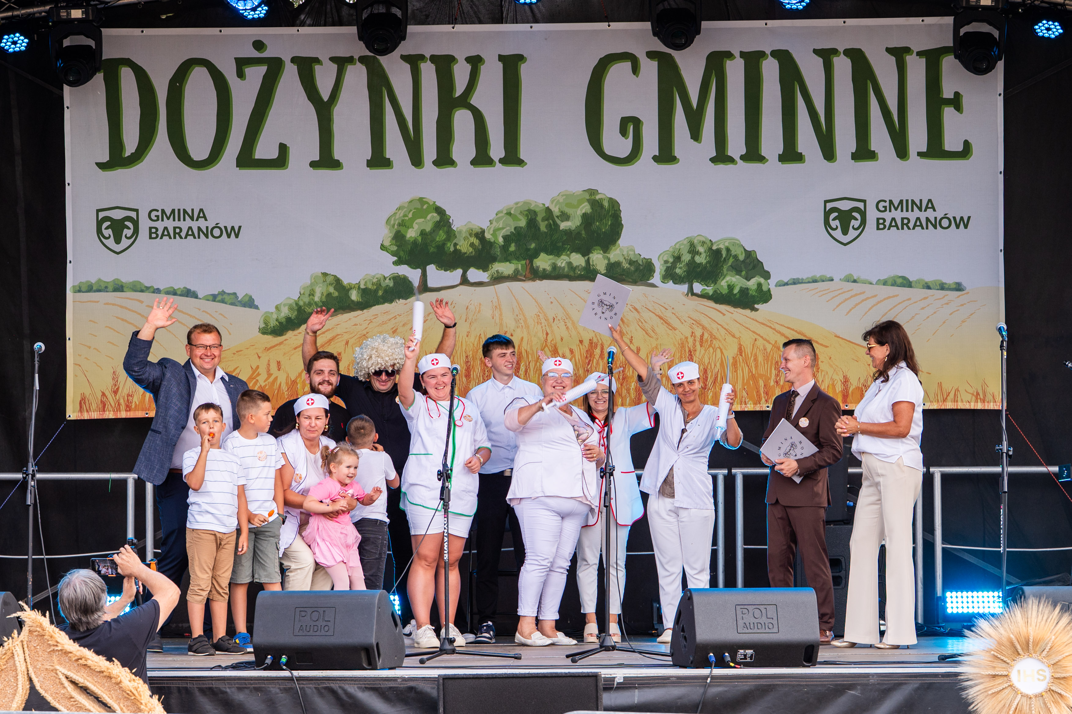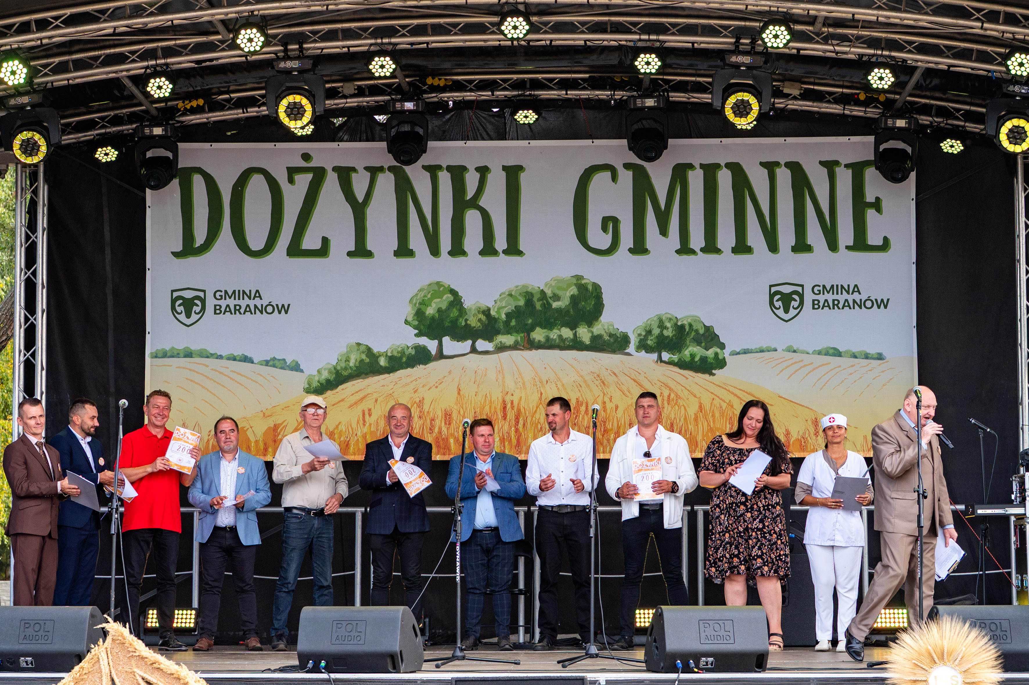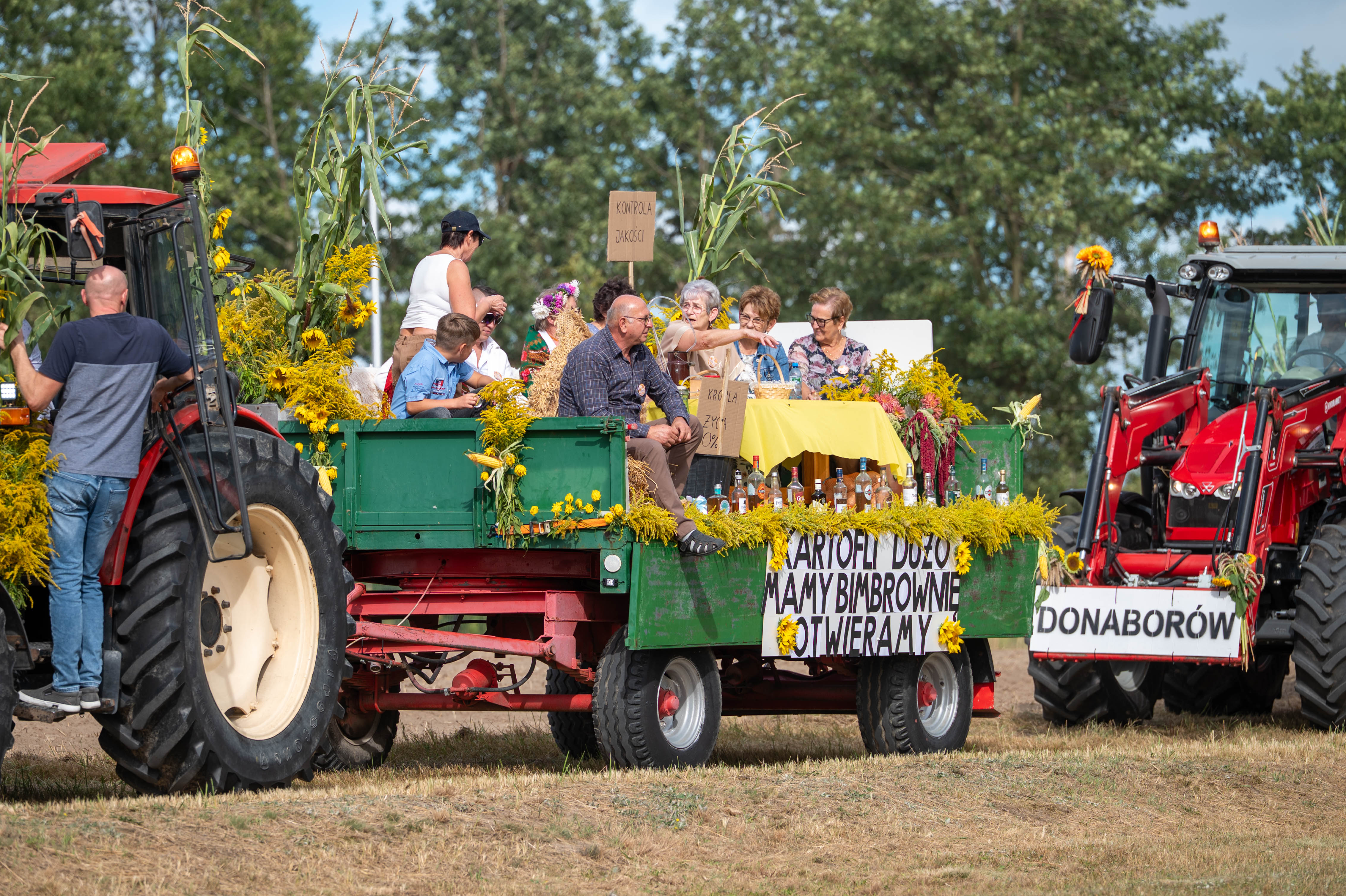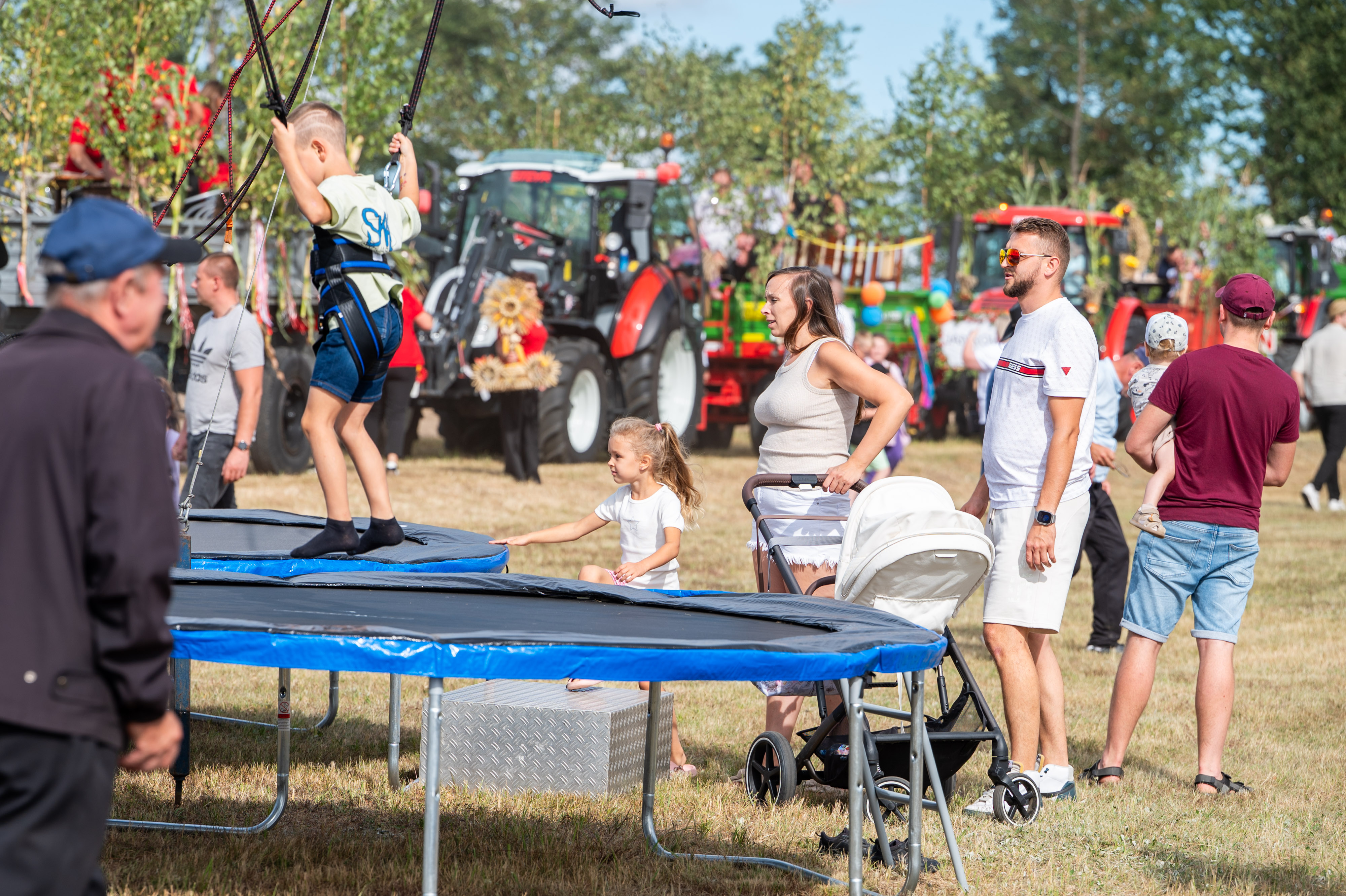 Na dożynki licznie przybyli rolnicy z całej Gminy. Komisja konkursowa rozstrzygnęła konkursy na pomysłowo przystrojoną zagrodę oraz na najładniej udekorowany wóz w korowodzie dożynkowym. W pierwszym konkursie zwyciężył Adam Pietrzak (Champion dożynek), a nagroda za najładniejszy wóz pojechała do Grębanina. I tym razem nie zabrakło atrakcji dla dzieci, a na wszystkich czekał smaczny dożynkowy posiłek. Uzupełnieniem festynu były stoiska tematyczne. Swoją ofertę przedstawił SBL oraz ZZO Olszowa. Dużym zainteresowanie cieszył się kącik adopcyjny …dla naszych czworonożnych przyjaciół (więcej o akcji tutaj). Muzyczną część sobotniego święta wypełnił koncert Mateusza Mijala, utrzymany w sentymentalnym nastroju oraz popisy wokalno-taneczne discopolowej Red Quinn, czyli Wiktorii. W deszczowym finale, przy muzyce serwowanej przez DJ Prezesa, najwytrwalsi uwijali się do białego rana, czyli …do upadłego.