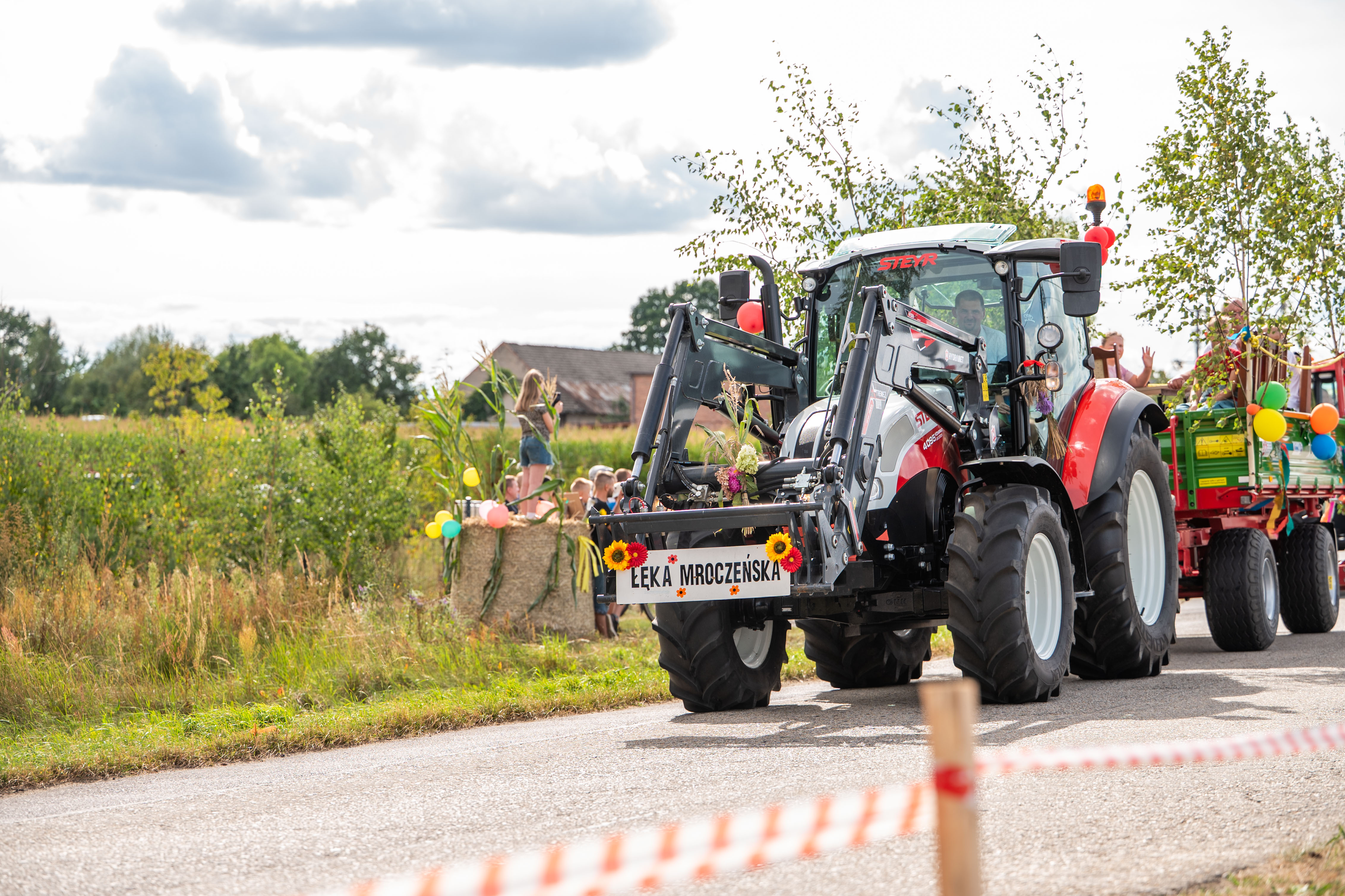 Po mszy św., odprawionej przez ks. Jerzego Kondala, barwny korowód ruszył z Mroczenia do Joanki, z Gośćmi ulokowanymi w pięknych bryczkach, poprzedzających maszyny naszych dziadków oraz nowoczesne Classy czy Fergusony. Delegacje złożyły pod sceną wieńce dożynkowe. Wszyscy zebrani minutą ciszy uczcili pamięć Jana Rabiegi, człowieka niezwykle zasłużonego dla naszej Małej Ojczyzny. Później starostwie dożynek – Tomasz Szlezynger i Dominika Nowak - złożyli dożynkowy bochen na ręce P. Wójt - Bogumiły Lewandowskiej-Siwek oraz przewodniczącego Rady - Ryszarda Stasiowskiego Następnie śledziliśmy z uwagą obrzęd dzielenia się chlebem przy akompaniamencie zespołu „Słupianie”. P. Wójt Bogumiła Lewandowska przekazała podziękowania za ogromne zaangażowanie w przygotowanie Gminnego Święta Plonów. - Życzę, żeby nigdy tego chleba nie zabrakło, a ja będę go zawsze dzieliła sprawiedliwie. Obiecuję – przekonywała.