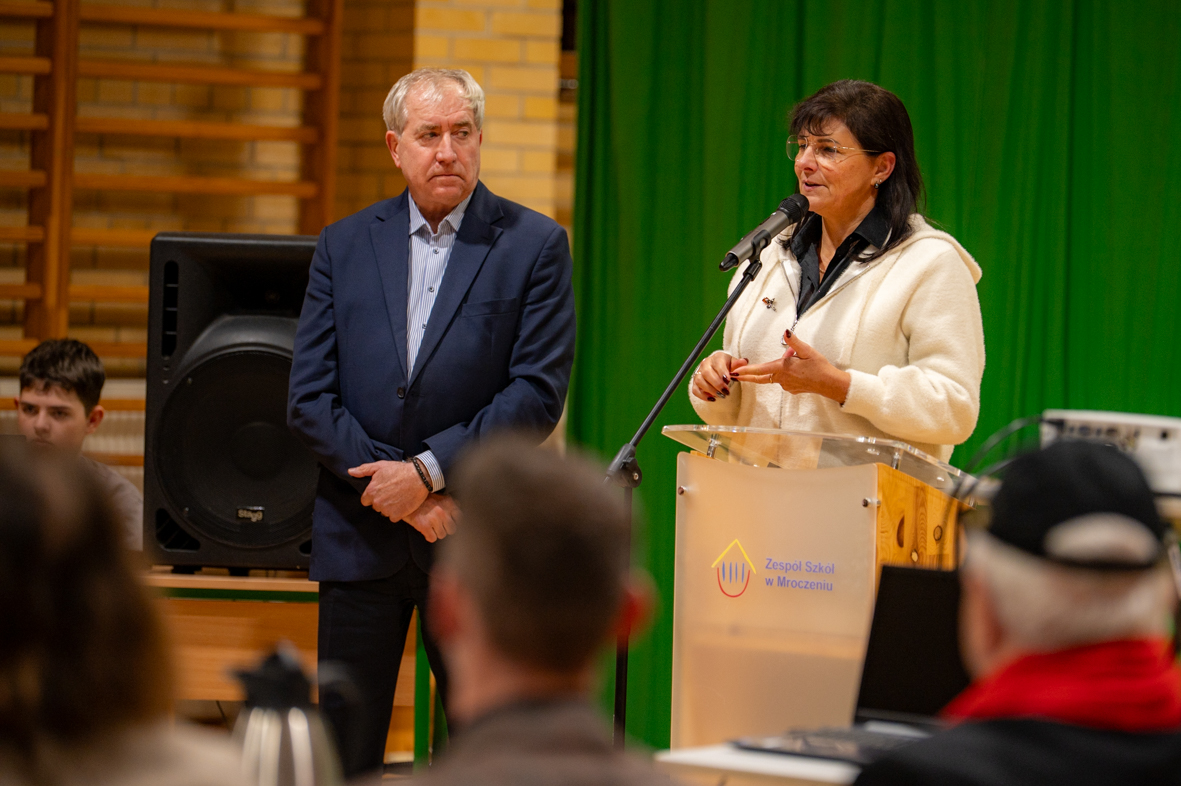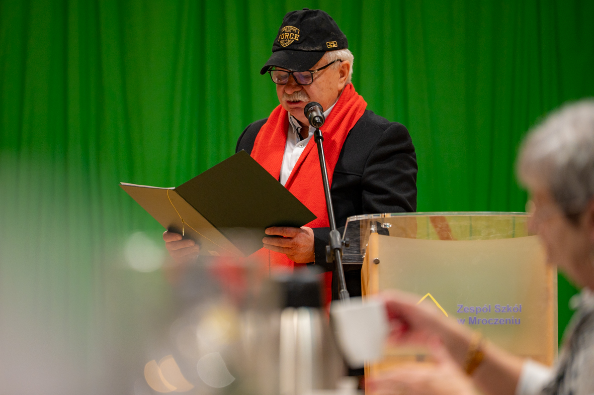 W przedświąteczny wieczór, 15 grudnia 2025, w sali gimnastycznej Szkoły Podstawowej w Mroczeniu odbyła się uroczystość z okazji 10-lecia Lokalnego Festiwalu Smaku, który od 2015 roku jest realizowany w szkole przy współpracy i ogromnym zaangażowaniu Koła Gospodyń Wiejskich w Mroczeniu. Pomysłodawcą Festiwalu jest dyrektor Andrzej Tyra - dyrektor miejscowego Zespołu Szkół, który zaproponowanym działaniem zjednoczył organizacje wiejskie, rodziców i przede wszystkim uczniów, którzy przygotowując różne potrawy, poznawali nie tylko tradycję i kulturę nieraz odległych regionów, ale także siebie i swoje możliwości. Wśród zaproszonych gości znaleźli się Pani Wójt Bogumiła Lewandowska-Siwek, skarbnik gminy Marzena Żłobińska, przewodniczący Rady Gminy Ryszard Stasiowski, przewodnicząca KGW Barbara Lipińska wraz z członkiniami koła, przedstawiciele OSP z Michałem Balcerem, członkowie jury, którzy przez lata oceniali potrawy uczniów, media lokalne, przedstawiciele ZSP w Kępnie, członkowie stowarzyszeń kulturalnych z terenu powiatu kępińskiego, przedstawiciele byłych i obecnej Rady Rodziców oraz uczestnicy Festiwalu.