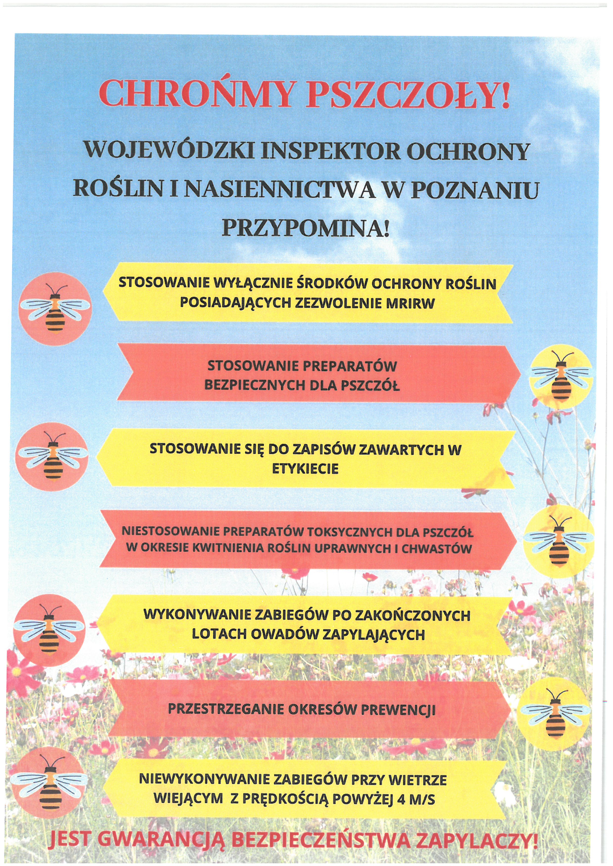 Informacje Wojewódzkiego Inspektoratu Ochrony Roślin i Nasiennictwa w Poznaniu dotyczące stosowania środków ochrony roślin zgodnie z przepisami, z uwzględnieniem bezpieczeństwa pszczół.