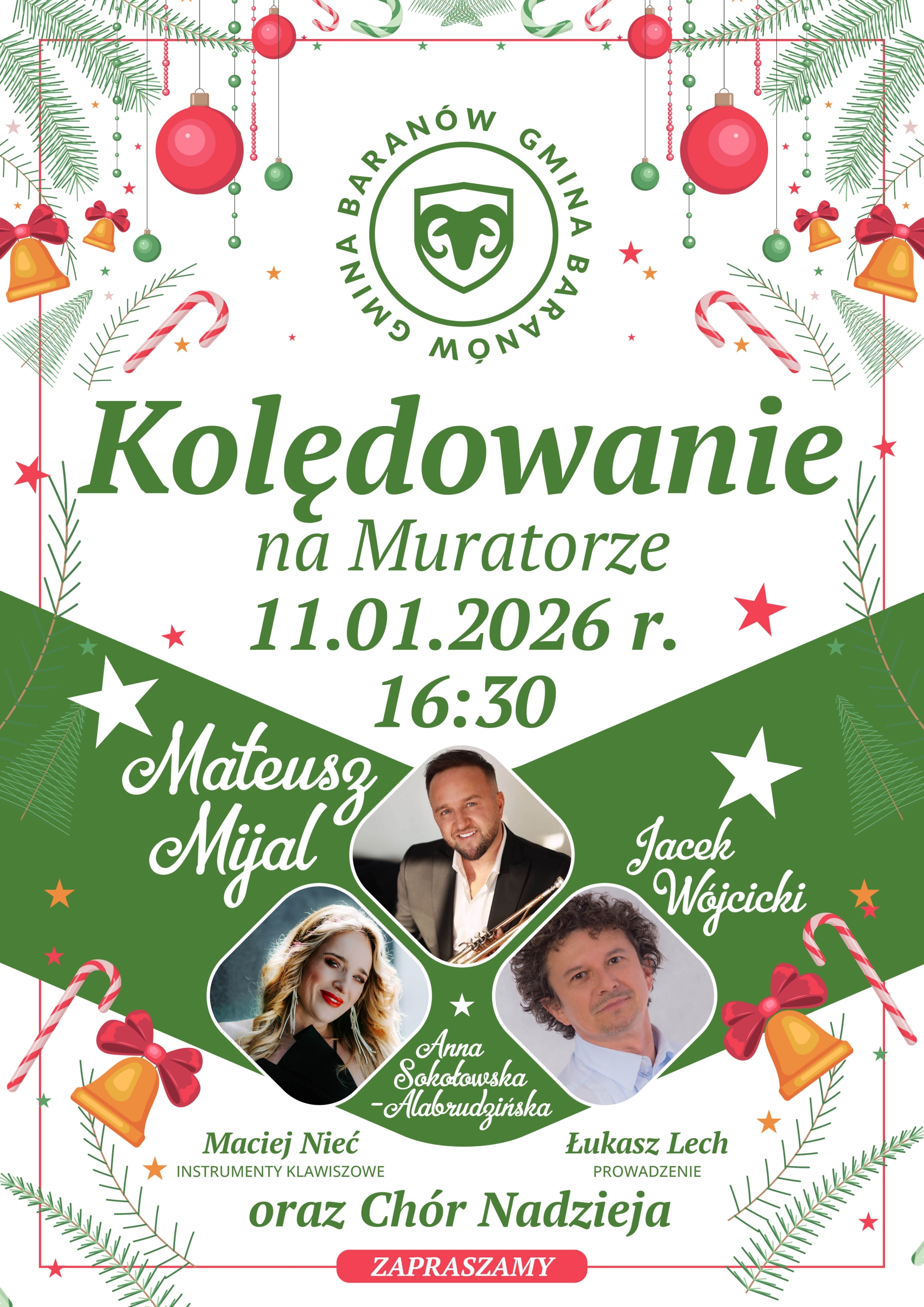 Zapraszamy 11 stycznia 2026 roku do Kościoła pw. Miłosierdzia Bożego na Osiedlu Murator w Baranowie na wspólne Kolędowanie!