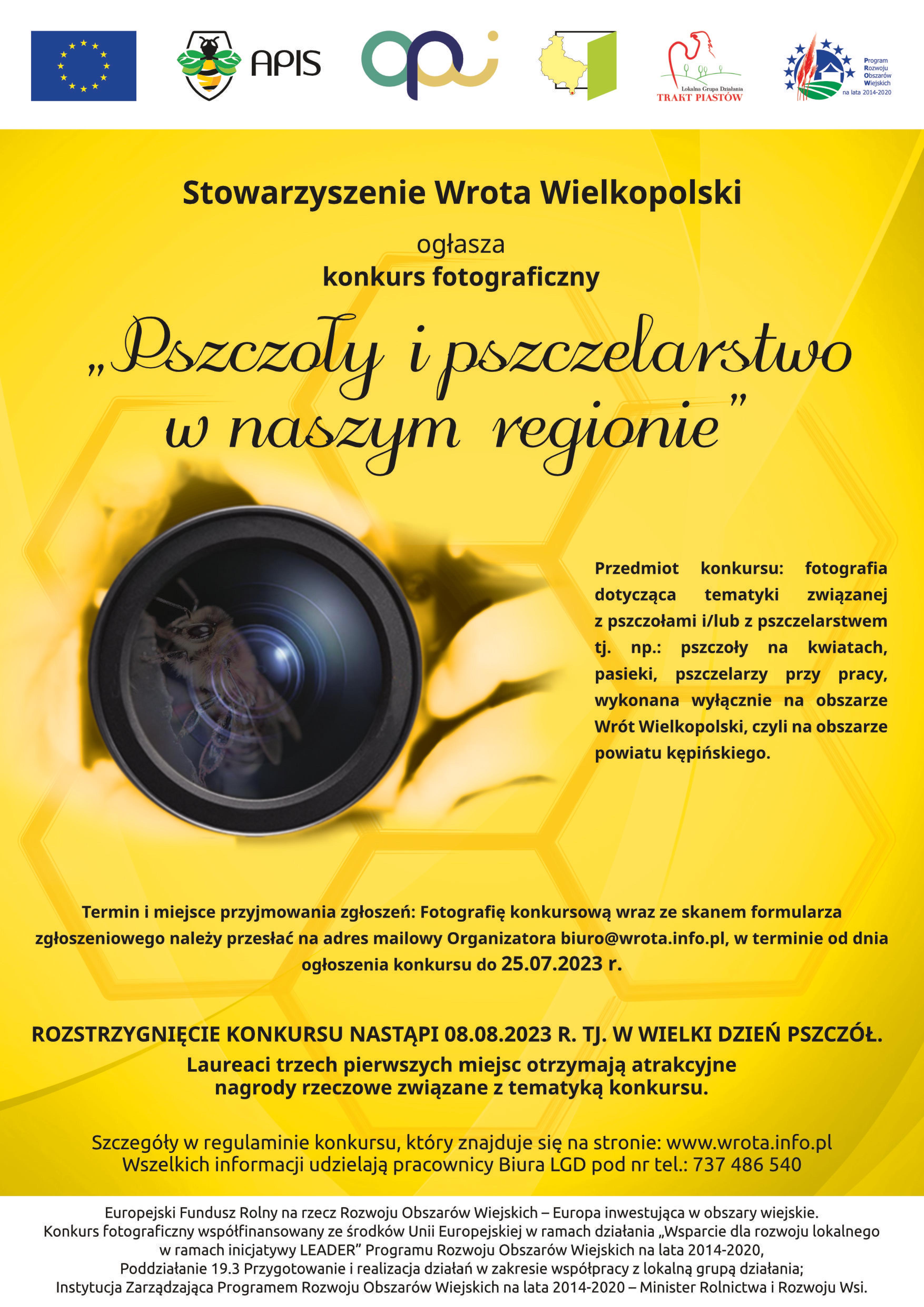 Stowarzyszenie WROTA WIELKOPOLSKI zachęcają do wzięcia udziału w Konkursie Fotograficznym pn. „Pszczoły i pszczelarstwo w naszym regionie”.