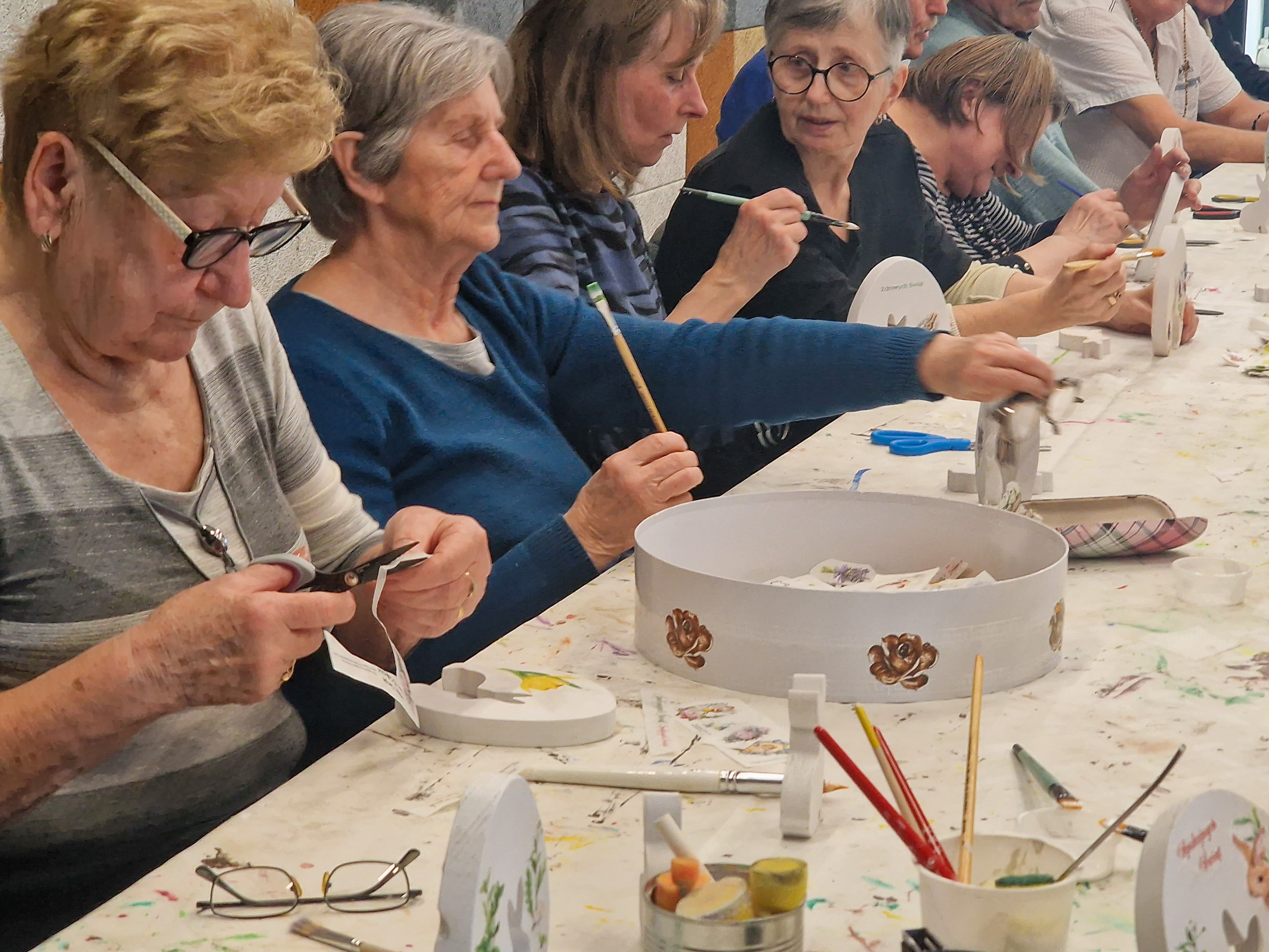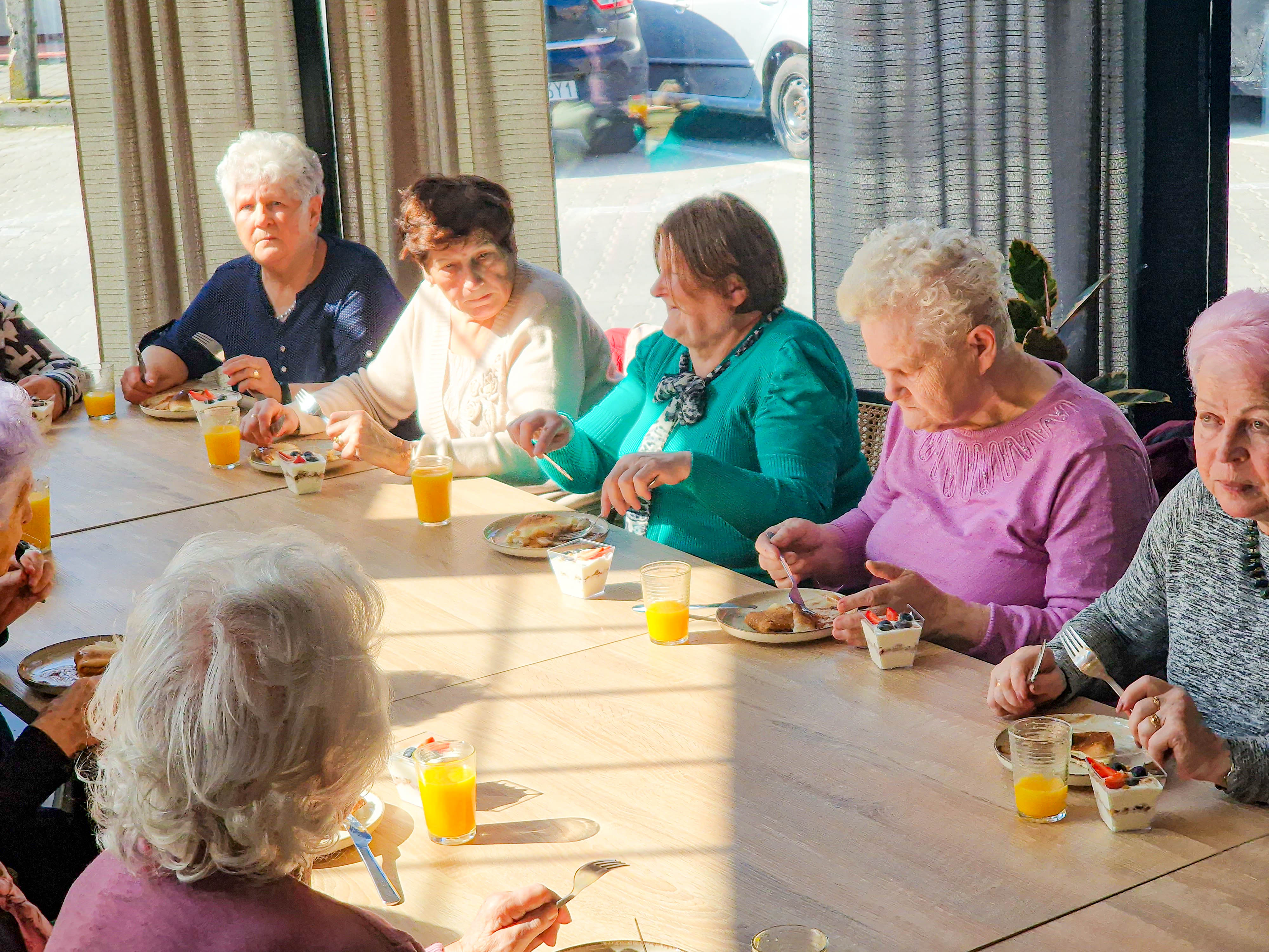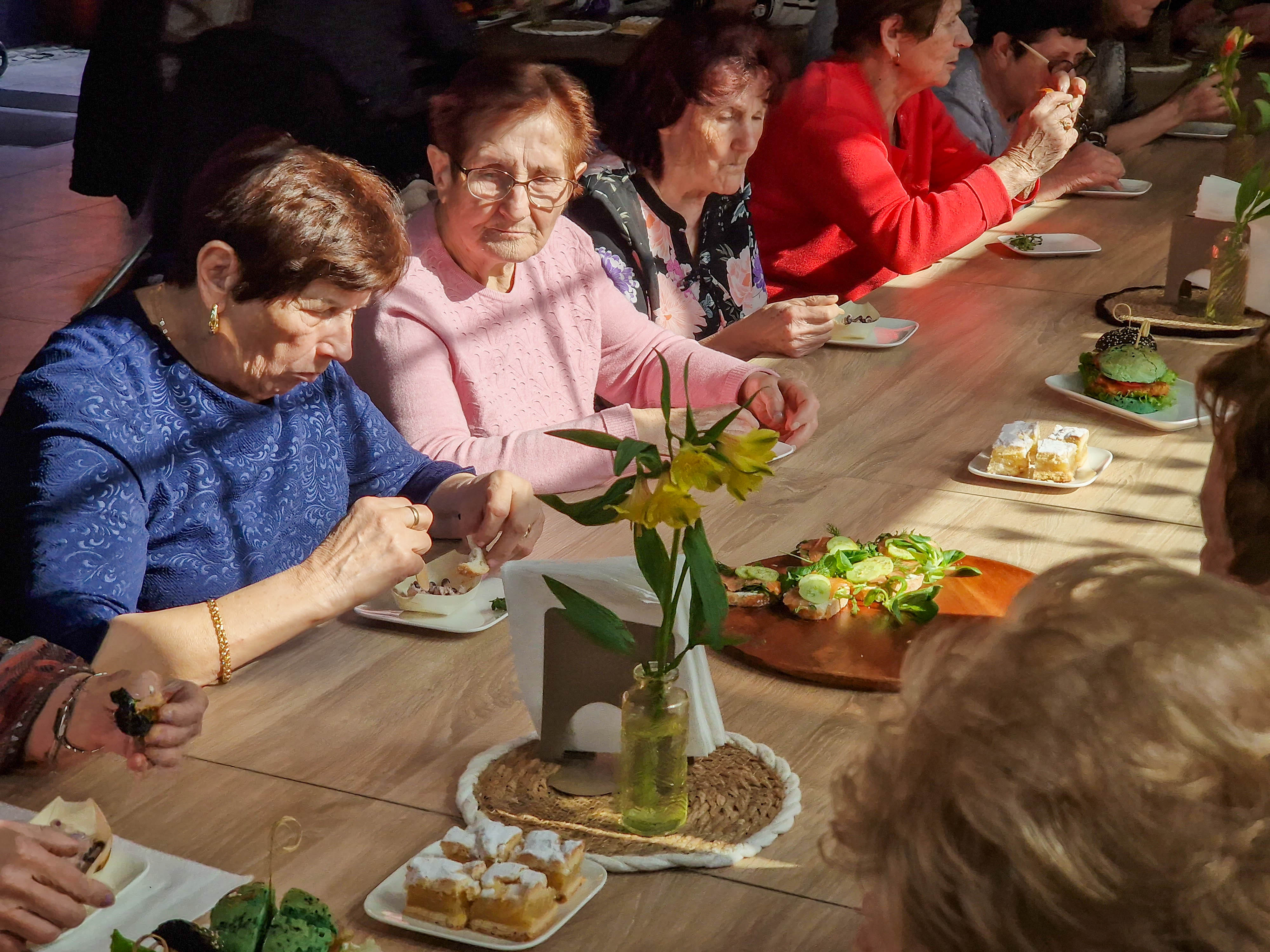 Odbyły się także kolejne warsztaty ceramiczne, których tematem było szkliwienie wypalonych naczyń. Po omówieniu przez prowadzącą procesu i technik szkliwienia (metoda nanoszenia szkliwa: zanurzanie oraz malowanie pędzlem) Seniorzy przystąpili do prac nad kolorystyką stworzonych przez siebie na poprzednich zajęciach aniołów oraz wazonów. Przygotowane tak prace zostały zabrane do pracowni na wypał końcowy. Przerwy pomiędzy warsztatami Seniorzy spędzali przy słodkim i owocowym poczęstunku we wspólnym gronie, który sprzyjał rozmowom i integracji grupy. Ponadto w ramach przerwy kawowej Seniorzy dwukrotnie wybrali się do pobliskiego Bistro na domowe wypieki, deserki, naleśniki, pyszną kawę i herbatę. W marcu Seniorzy uczestniczyli także w całodniowym wyjeździe do Muzeum Ceramiki w Bolesławcu. Wycieczka stanowiła uzupełnienie trwających warsztatów ceramicznych. Odwiedzając manufakturę w Bolesławcu Seniorzy zobaczyli z bliska, jak powstaje ceramika bolesławiecka oraz jak wygląda praca artystów i rzemieślników, którzy tworzą unikatowe wzory na ceramice. Dowiedzieli się także o tradycjach i technikach stosowanych przy wytwarzaniu ceramiki bolesławieckiej. Ponadto, uczestnicy projektu wzięli udział w warsztatach ceramicznych, podczas których samodzielnie ozdabiali wybrane przedmioty ceramiczne, tworząc osobistą pamiątkę pełną wspomnień.