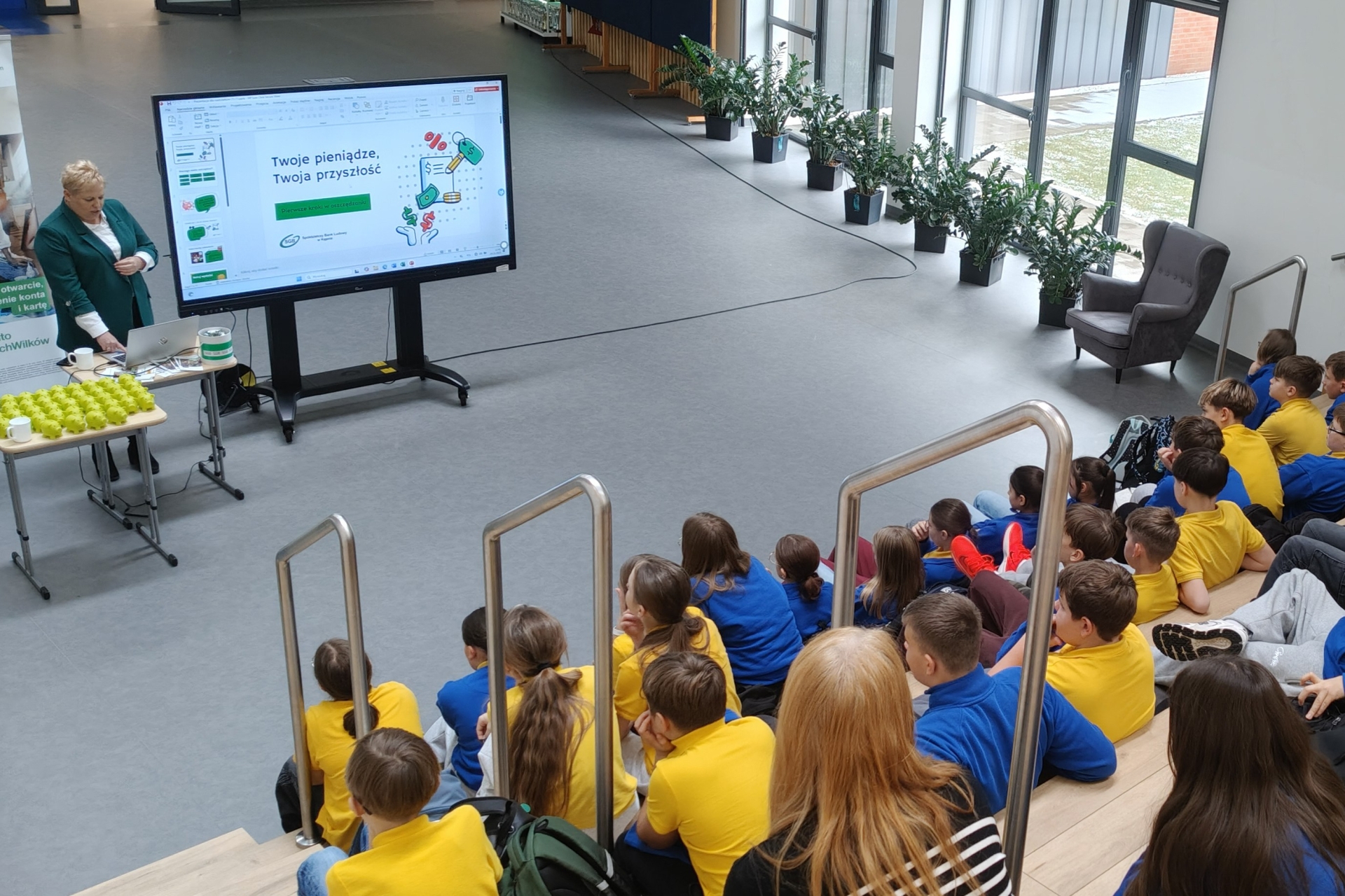- Oszczędzanie - na zajęciach przedstawiono zagadnienia związane z racjonalnym gospodarowaniem i wykorzystaniem posiadanych środków finansowych. Poznali pojęcia oraz różnicę pomiędzy oszczędzaniem i inwestowaniem, uświadamiając korzyści płynące z oszczędzania. Na podsumowanie zajęć dzieci otrzymały skarbonki.