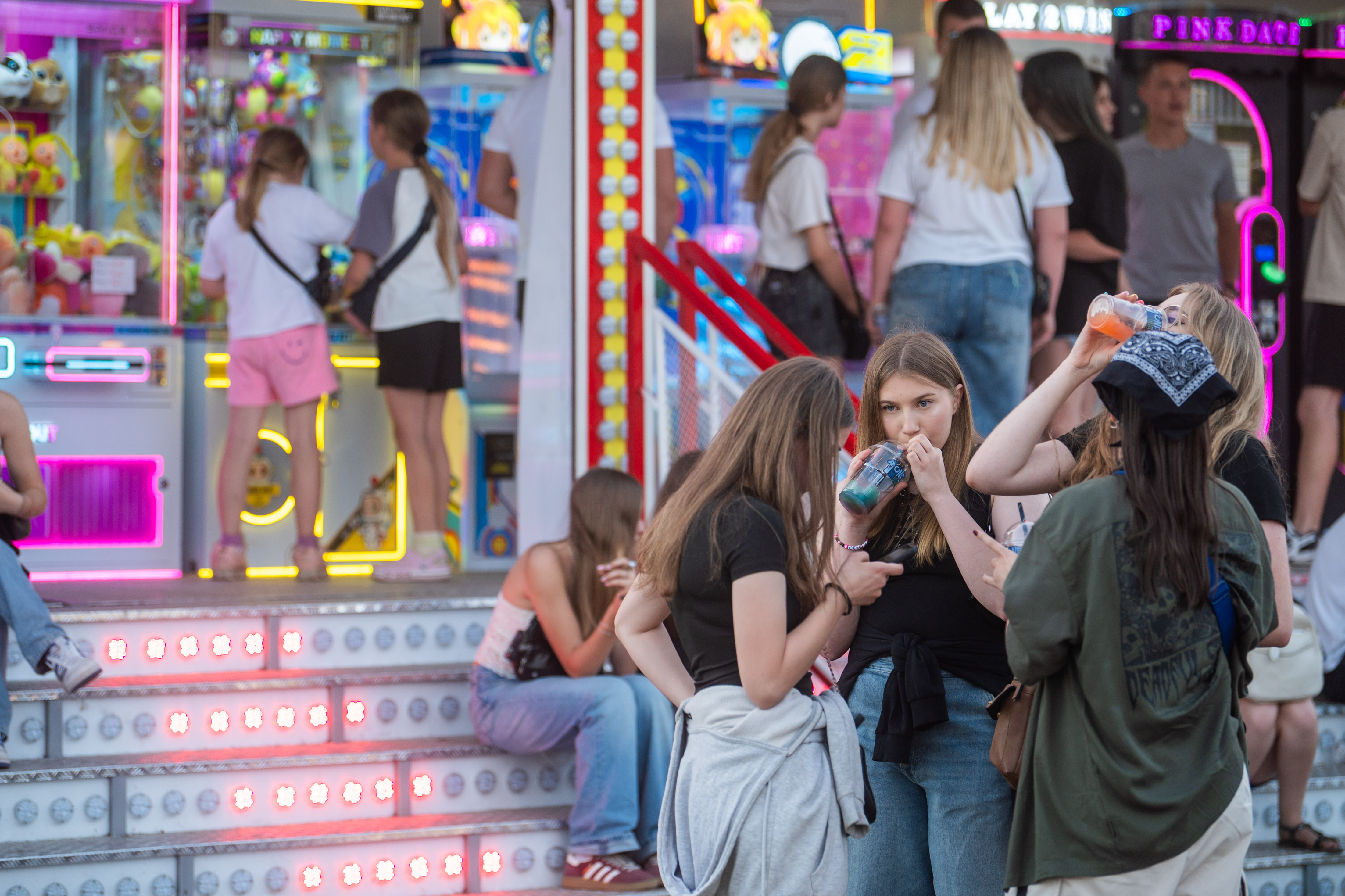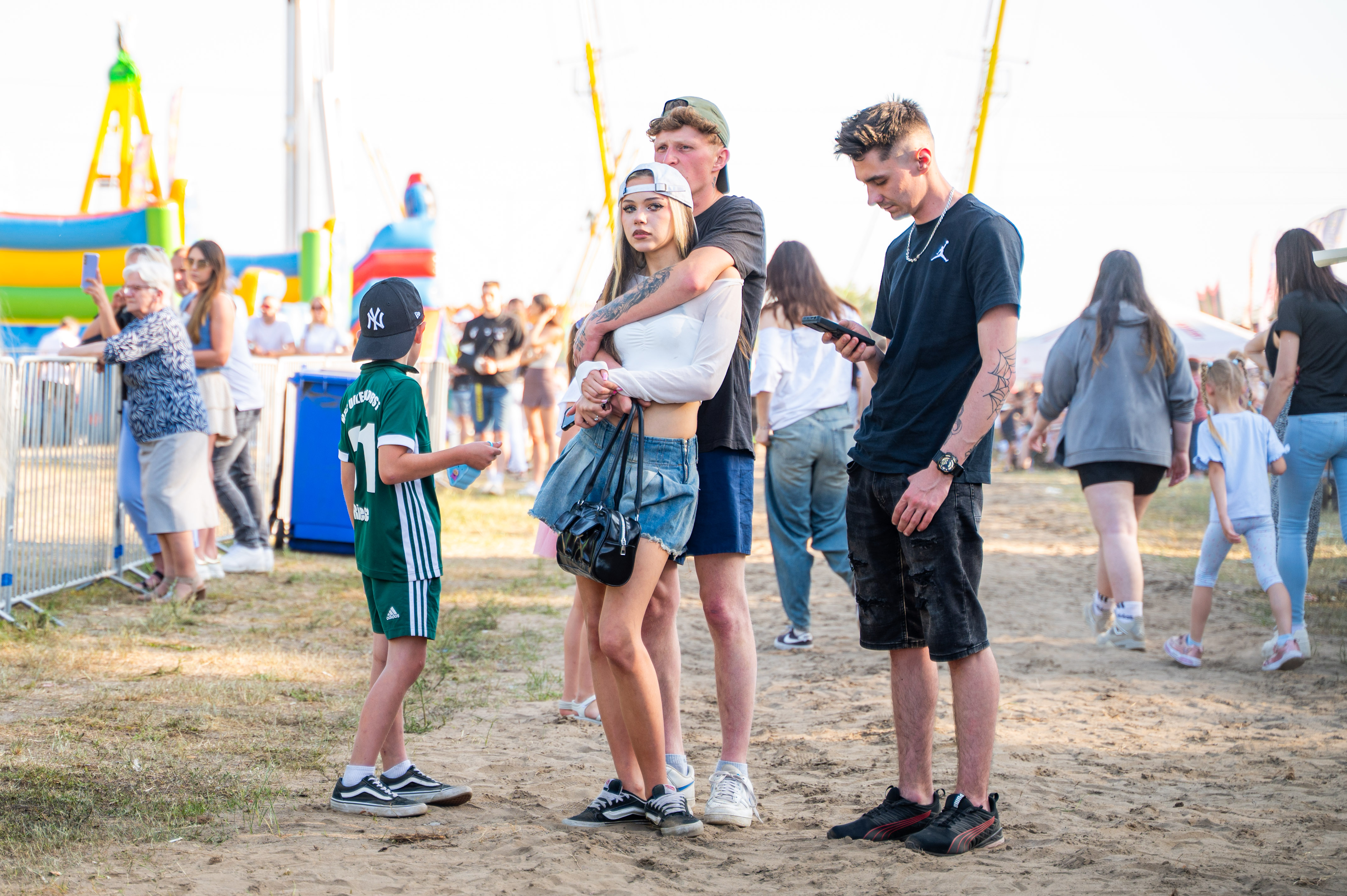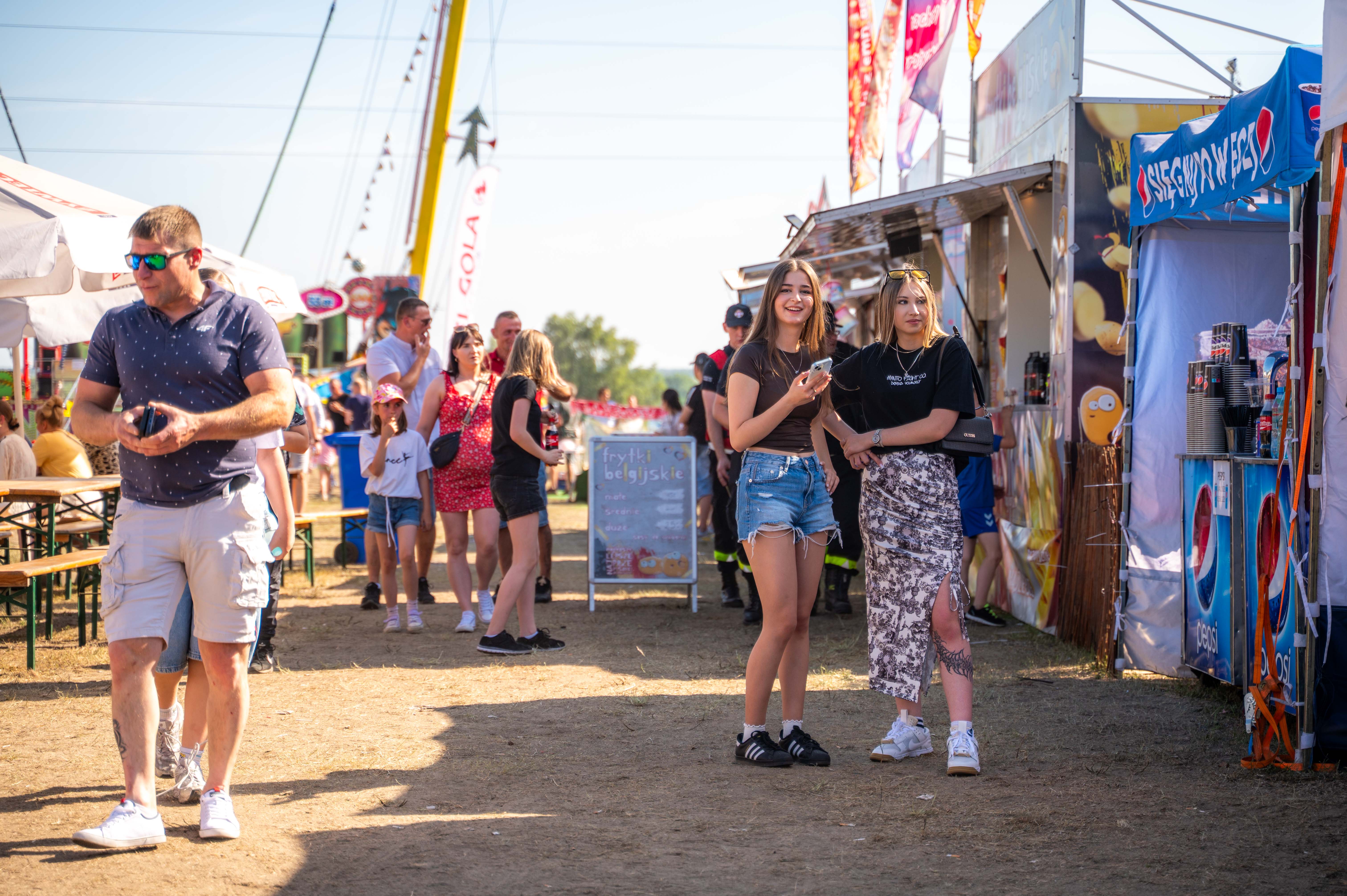 Naszą relację należy koniecznie uzupełnić o zaplecze artystycznych szaleństw. Znawcy malarstwa mówiliby pewnie o jakiejś Veducie, co oznacza panoramę, która często zawiera sztafaż, czyli małe postacie ludzkie, które dodają skali i ożywiają scenę. Tych, jak już zaznaczyliśmy, było w tym roku niczym mrówek w muratorskim lesie. Młodsi kołysali się na podniebnych karuzelach, starsi raczyli się smakowitościami serwowanymi w niezliczonych straganach, barach i jadłodajniach. Wszystko spowijał nieznośny pył, unoszący się znad świeżo pobudowanej przez Gminę drogi. W sukurs jednak umordowanym festynowiczom od czasu do czasu ruszali nasi dzielni strażacy, polewając wszystko i wszystkich. A na dokładkę nasi druhowie wpadli na pomysł, by najodważniejszym zaprezentować panoramę Dni Baranowa z wysokości …40-metrowej drabiny. Z propozycji od razu skorzystali nasi goście z zaprzyjaźnionej gminy Ihlow. Dodajmy od razu, iż jednak nie wszyscy i na szczęście - bez dodatkowych komplikacji.