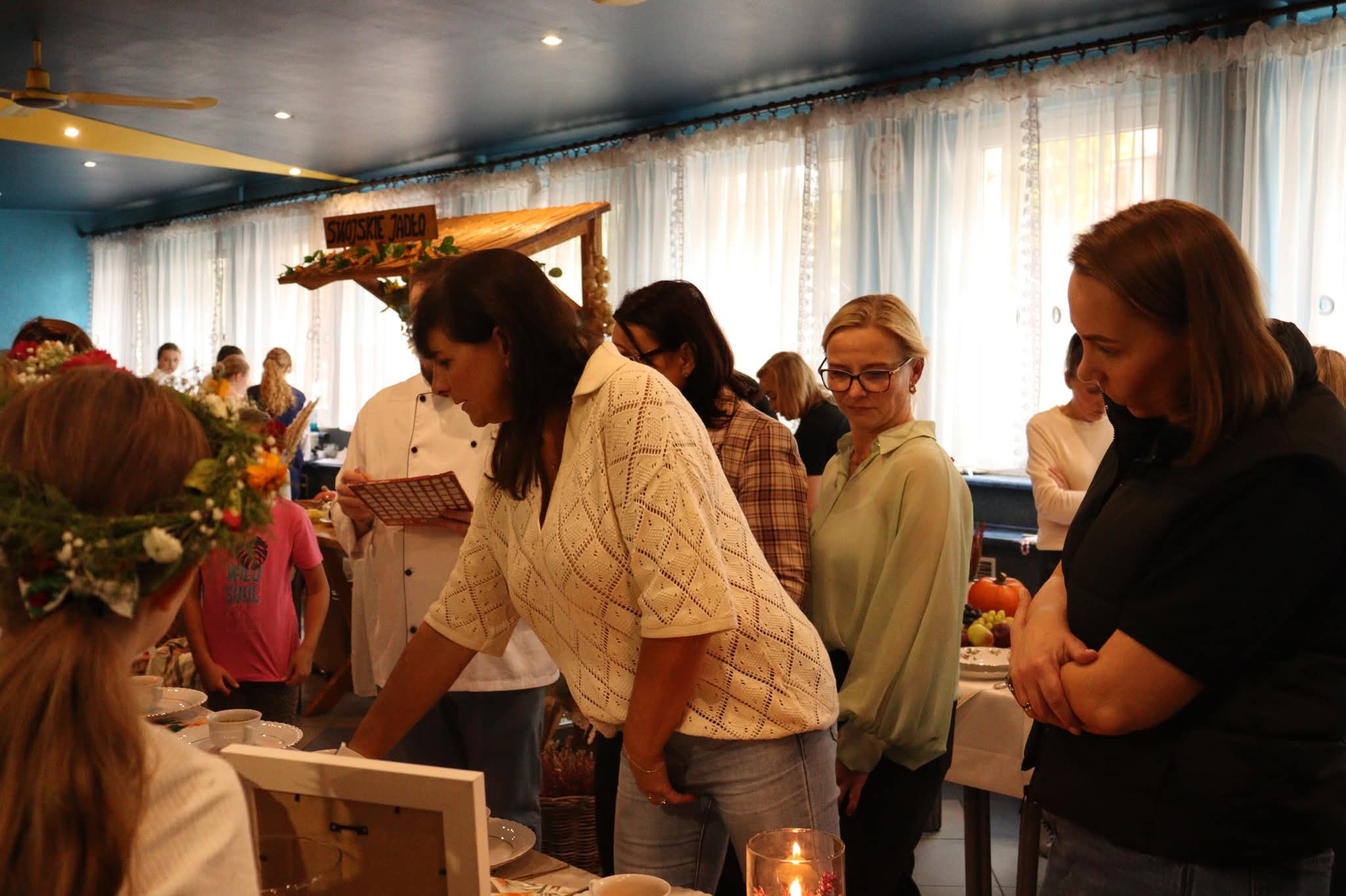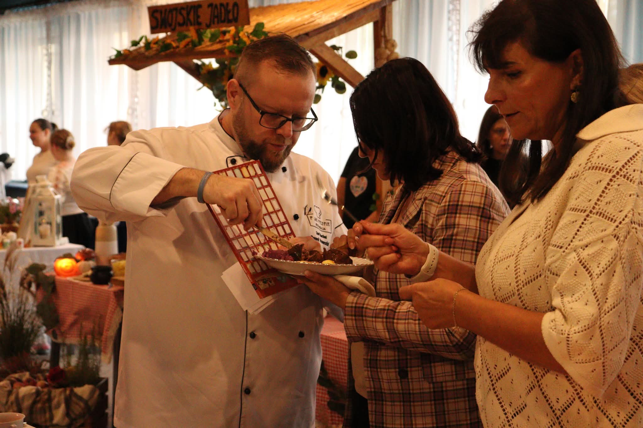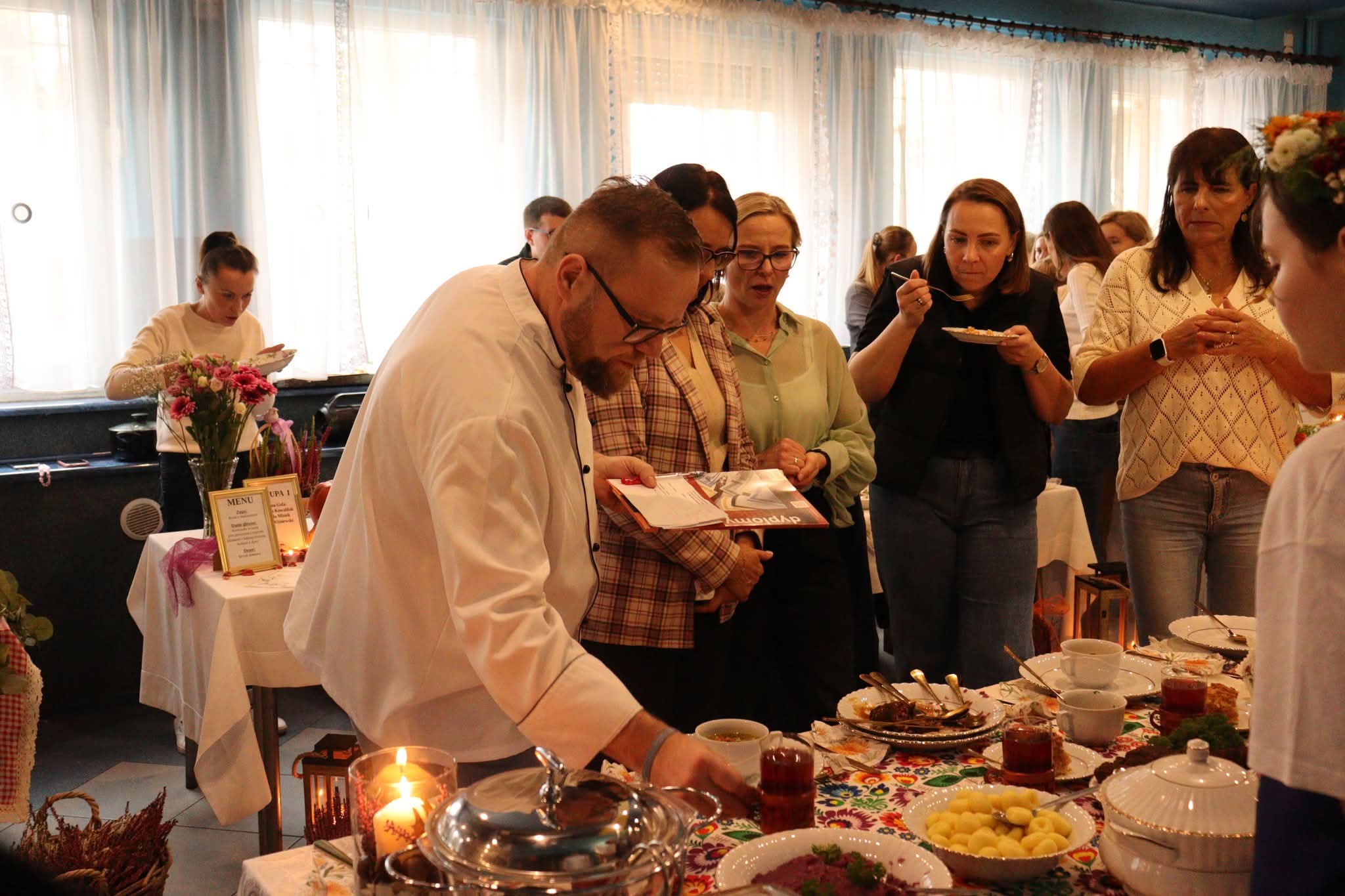 Na zakończenie nadszedł najbardziej oczekiwany moment – wspólna degustacja. Goście mogli skosztować przygotowanych potraw, delektując się smakiem domowych zup, pieczonych mięs i słodkich wypieków. W sali unosił się zapach tradycji, a rozmowom przy stole towarzyszył śmiech i radość ze wspólnego świętowania. Szczególnym wydarzeniem był również pokaz gotowania w wykonaniu pana Pawła Powroźnika.
