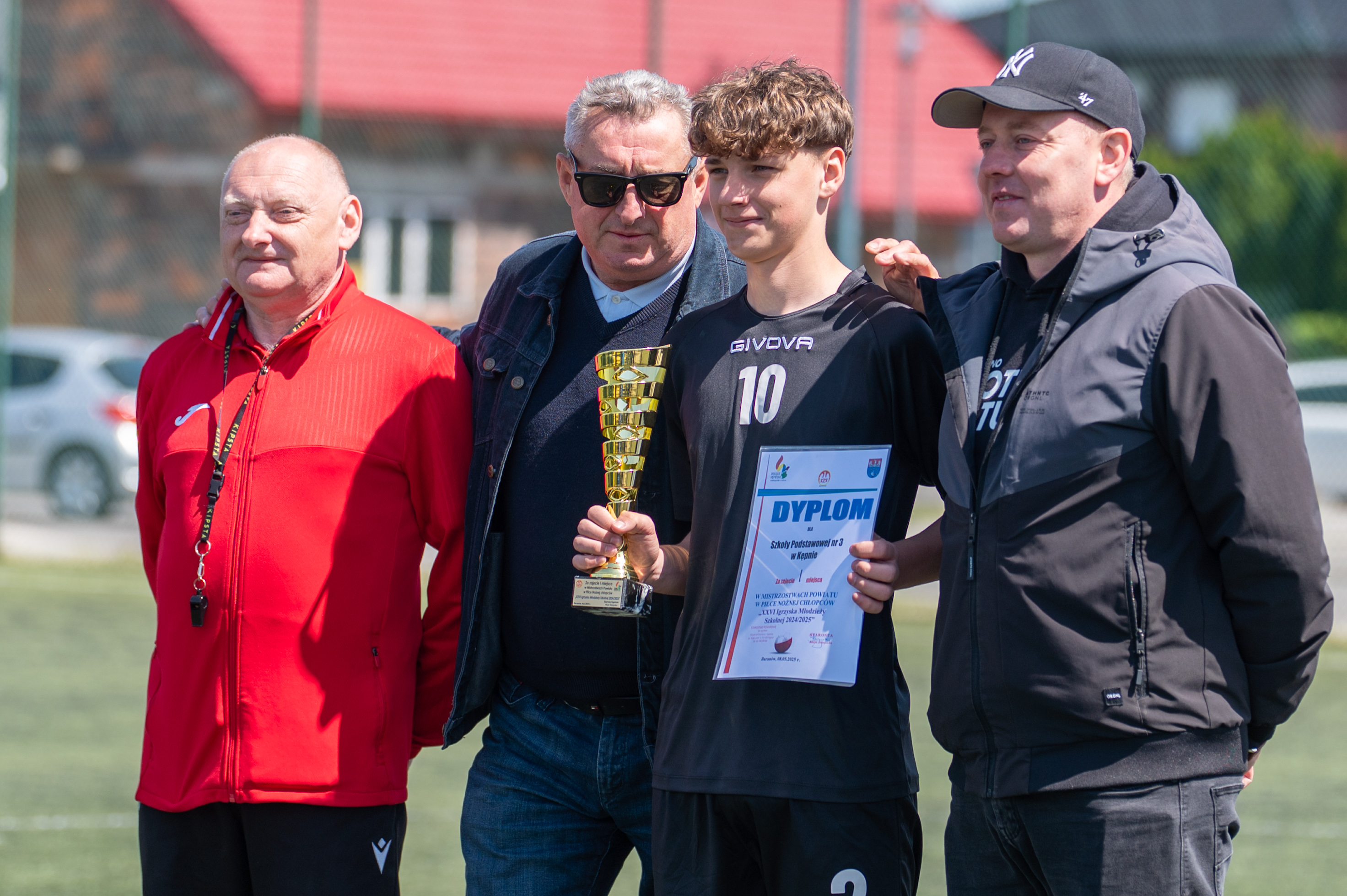 Losowanie sprawiło, że nasze drużyny trafiły do różnych grup. Podobno szczęście sprzyja lepszym, ale podobnież gospodarzom pomagają ściany. I cóż mają w takim mają powiedzieć piłkarze z Mroczenia? Zespół Jerzego Mosia w eliminacjach ani razu nie przegrał a i tak wypadł z rywalizacji o najcenniejsze trofea. Na pocieszenie wygrał w meczu o 5. miejsce z Opatowem. Szczęście nie uśmiechnęło się też do drużyny z Donaborowa. W pierwszej potyczce eliminacyjnej drużyna Urszuli Kurek co prawda była bliska odprawienia z kwitkiem późniejszych mistrzów z kępińskiej 3. Ostatecznie jednak Donaborów uległ Kępnu 2:3. W półfinale nie sprostał kolejnej ekipie kępińskiej. Z podium zepchnął go Trębaczów, wygrywając 1:0.w meczu o 3. miejsce. W wielkim finale SP 3 Kępno wygrała z SP 1. Najlepszym zawodnikiem turnieju został Jakub Marciniak z SP 1 Kępno, Najlepszym strzelcem – Mikołaj Stach z „3”, a Najlepszym Bramkarzem - Adam Lenort z „3”. (ems)