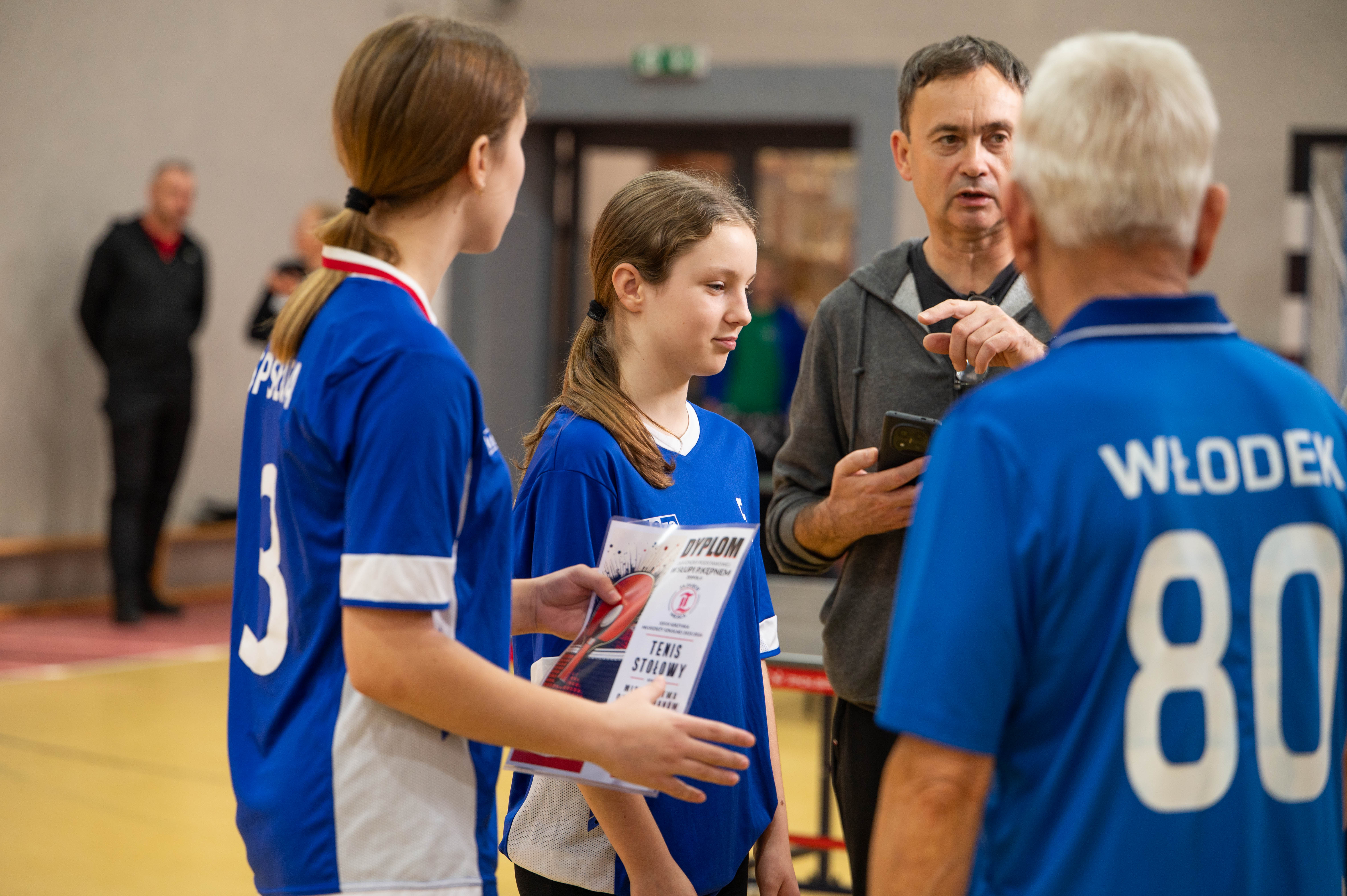 Regulamin zawodów animowanych przez Szkolny Związek Sportowy jest często uproszczeniem zasad rządzących grami profesjonalnymi. Dotyczy to również tenisa stołowego, albo …ping-ponga. Różnicę tę cierpliwie tłumaczył ekspert, gość specjalny naszego turnieju oraz sędzia główny w jednej osobie. - Ping-pong jest młodą dyscypliną sportu, która narodziła się na nowo zaledwie 14 lat temu w USA. Tam też, w 2011 roku zostały po raz pierwszy rozegrane Mistrzostwa Świata. W ping-pongu seta wygrywa osoba, która pierwsza zdobędzie 15 punktów. Przy stanie 14:14 wygra zawodnik który zdobędzie 15 punkt. Gra się do 2 wygranych setów. Turnieje rozgrywane są wyłącznie rakietkami oklejonymi papierem ściernym koloru niebieskiego lub szarego dostarczonymi przez organizatorów. Zawodnicy po zakończonym secie zmieniają strony stołu i wymieniają się rakietkami. Urozmaiceniem jest przepis, że raz w meczu można zmienić kolor piłki, co oznacza, że gra się tzw. „double point ball”. Może to zrobić serwujący, o ile nie zdobył w secie więcej niż 12 punktów. Jeżeli wygra tę piłkę, to dostaje 2 punkty, gdy przegra - przeciwnik otrzymuje jeden punkt. Cały mecz gra się pomarańczową piłką, a białą tylko „double point ball” – objaśniał Jan Kasendra. Lista triumfów Jana Kasendry jest iście bajkowa. - Moje największe sukcesy to: Mistrzostwo Polski Amatorów, kilka tytułów wicemistrza Polski Amatorów, kilka 3. miejsc w Mistrzostwach Polski Amatorów, 3. miejsce w kategorii open powyżej 50 lat z udziałem zawodowców. Natomiast wśród profesjonalistów najwyżej cenię sobie: brązowy medal w Mistrzostwach Polski Masters w grze podwójnej, 2 miejsce w Grand Prix Polski Masters w Międzyzdrojach, 2. Miejsce w Grand Prix Polski Masters w Węgierskiej Górce i kilka trzecich miejsc w cyklu rozgrywek Grand Prix Polski Masters. Z imprez o randze międzynarodowej najlepsze wyniki to: 9. miejsce w Mistrzostwach Europy w grze mieszanej, 17. miejsce w grze podwójnej w Mistrzostwach Europy w Sandefjord w Norwegii (w grupie pokonaliśmy Niemców, późniejszych wicemistrzów Europy).