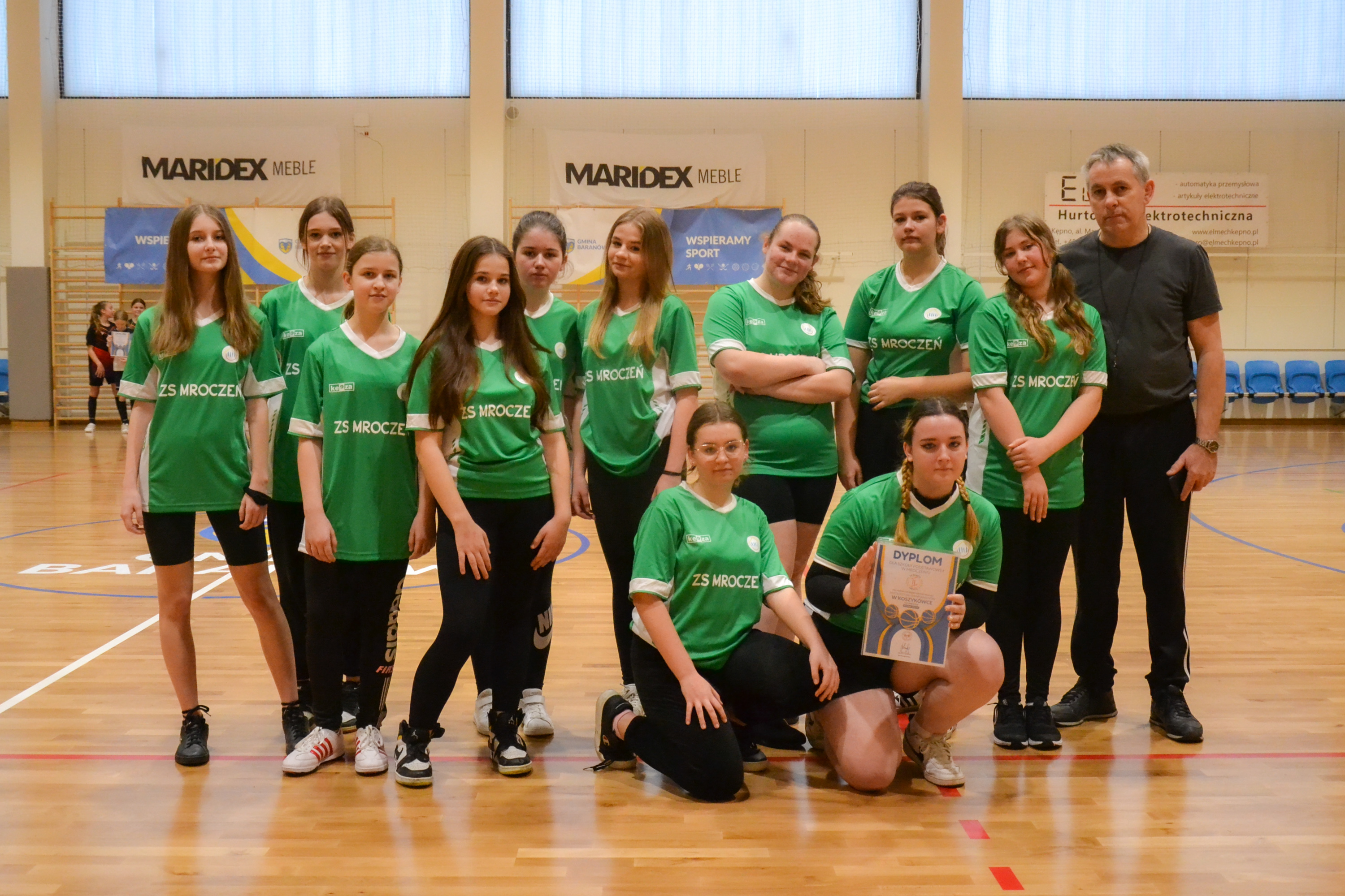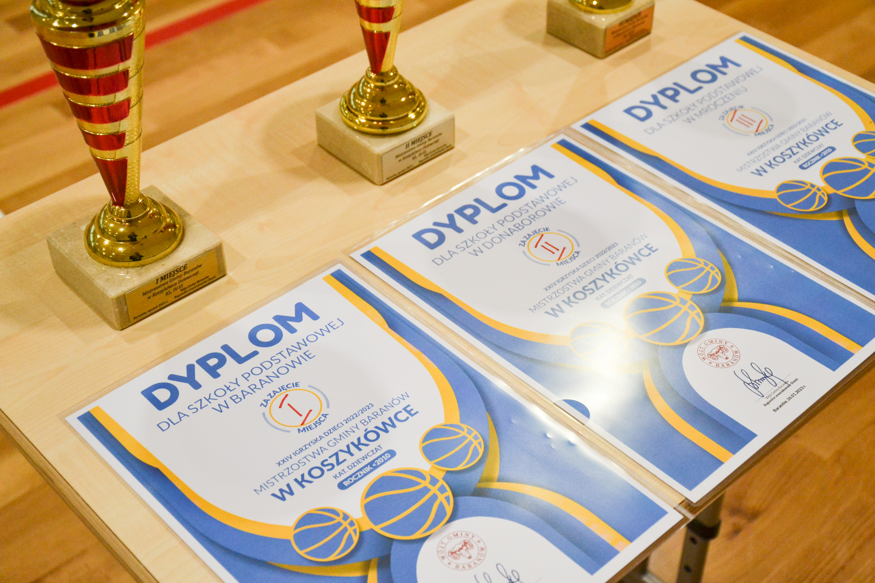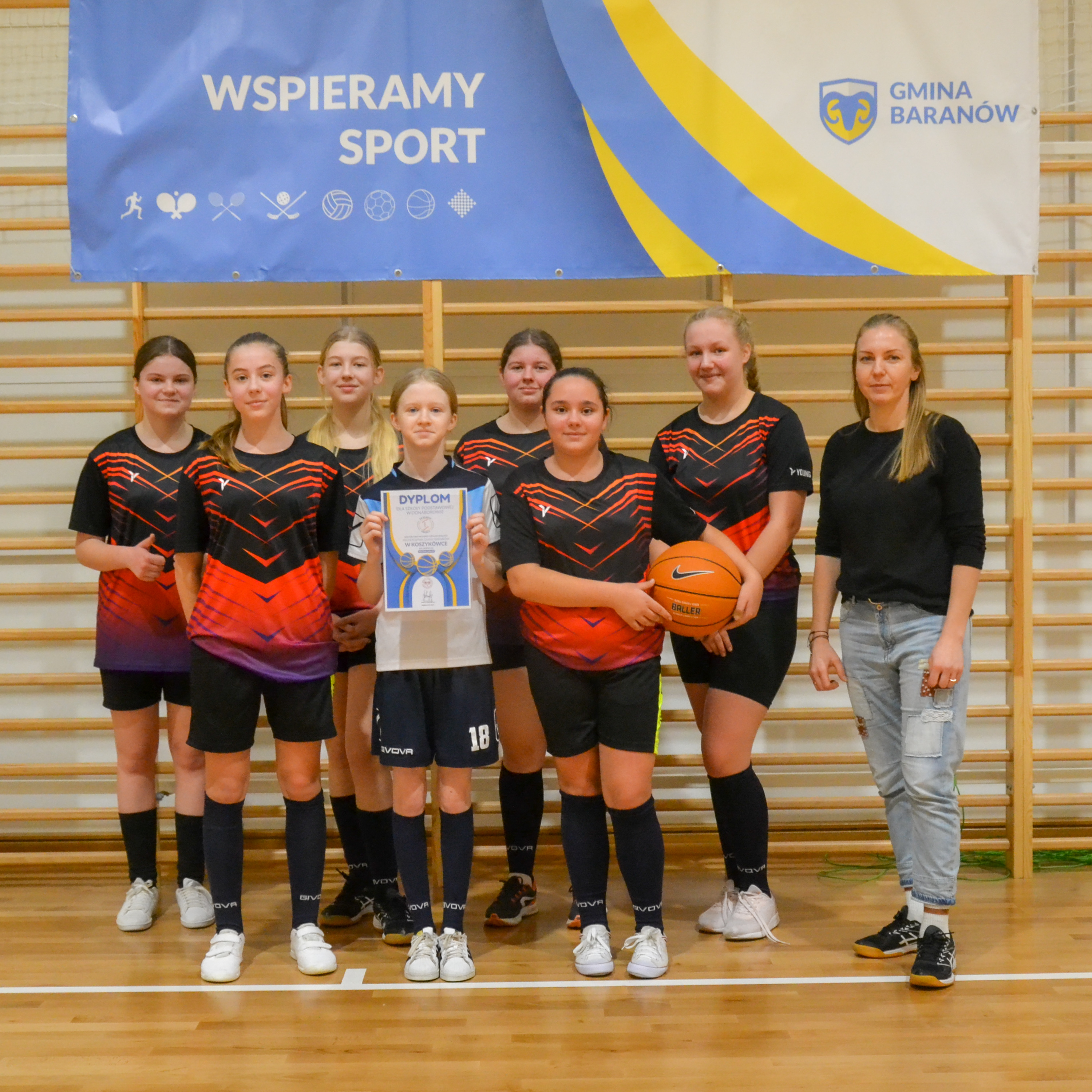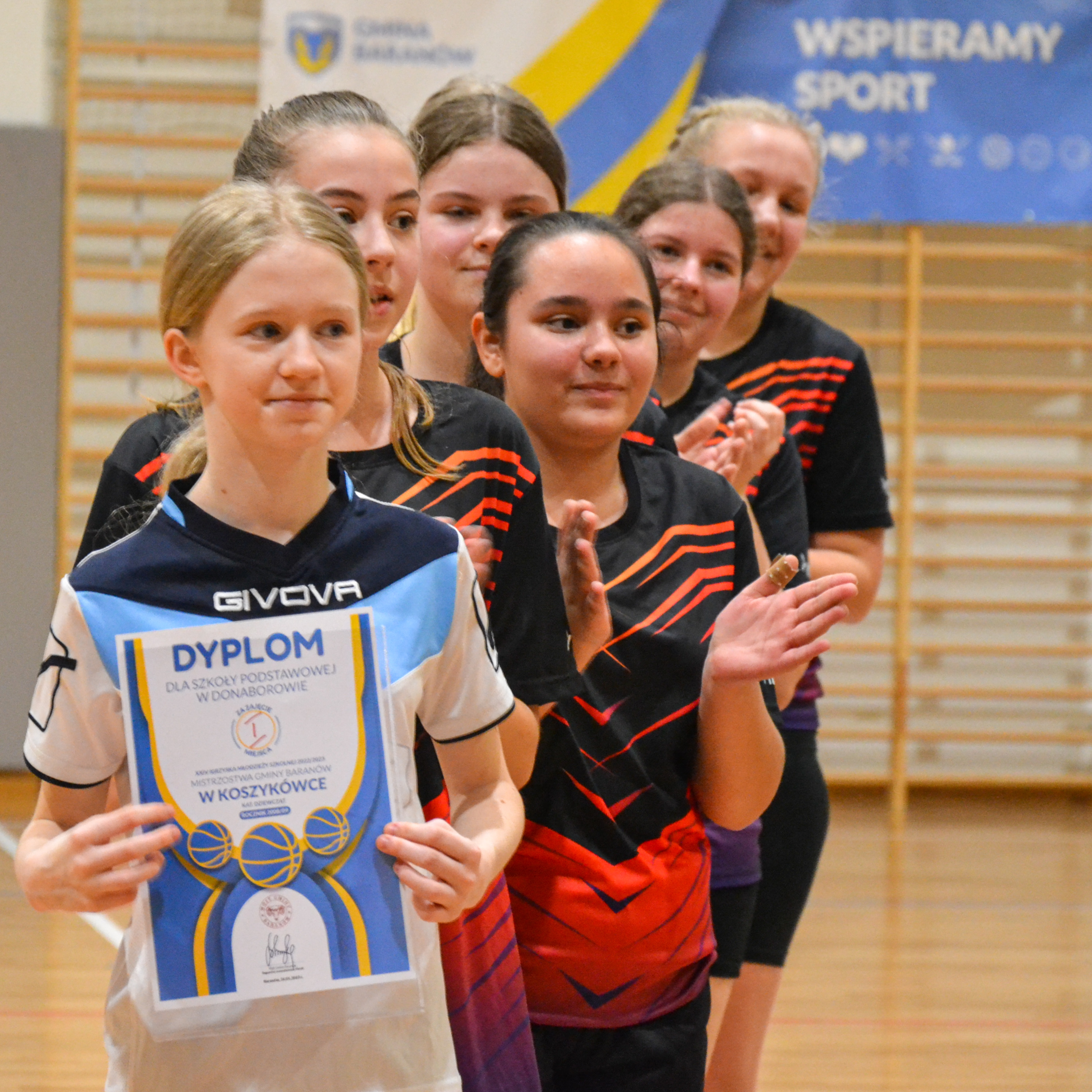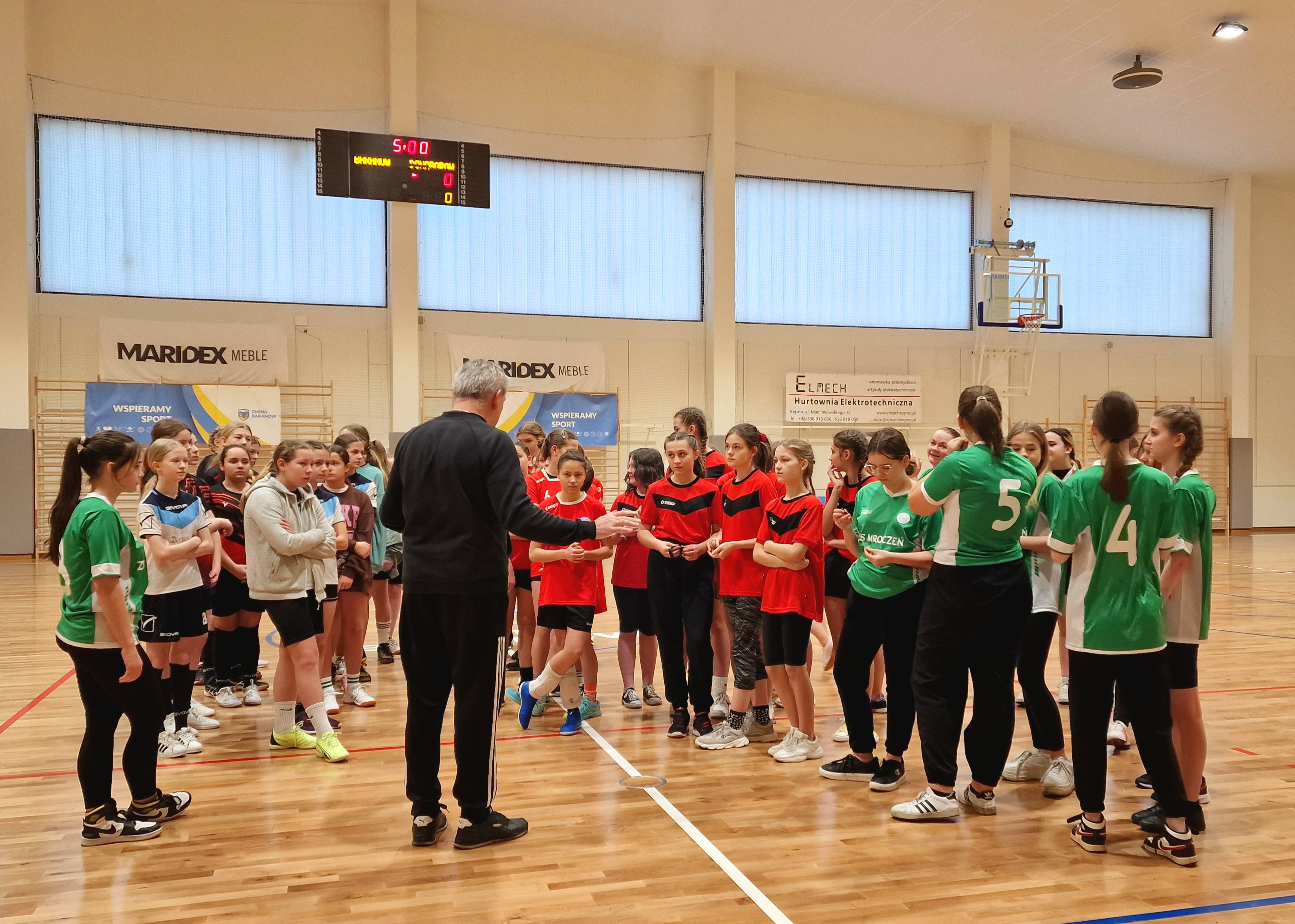 Wciąż testujemy możliwości nowej hali sportowej w Baranowie. Pełnowymiarowa płyta boiska, skomplikowane sędziowanie oraz sportowa elektronika, w postaci świetlnych tablic, daje uczestnikom zmagań w siatkówce czy koszykówce namiastkę udziału w wielkim widowisku, takim, które dziecko widziało dotąd tylko w telewizji. Dołóżmy do tego falujące emocjami trybuny, zapał i zawziętość sportsmenek i już czujemy klimat pierwszych Mistrzostw Gminy w Koszykówce Dziewcząt Młodszych (2010) i Starszych (2008). W pierwszym meczu turnieju dziewcząt młodszych, z Donaborowem, decydujący punkt baranowianki rzuciły tuż przed ostatnią syreną i to po dwóch dogrywkach! W drugim meczu turnieju donaborowianki przechyliły szalę zwycięstwa dopiero w czwartej kwarcie, przedłużając tym samym nadzieje na zwycięstwo w zawodach. W decydującym starciu baranowianki, podopieczne Joanny Durlej, po zaciętym boju pokonały Mroczeń. Wśród starszych dziewcząt rozegrano tylko jeden mecz, w którym Donaborów wygrał z Mroczeniem. Najlepsze teamy reprezentować będą naszą Gminę w zawodach powiatowych.