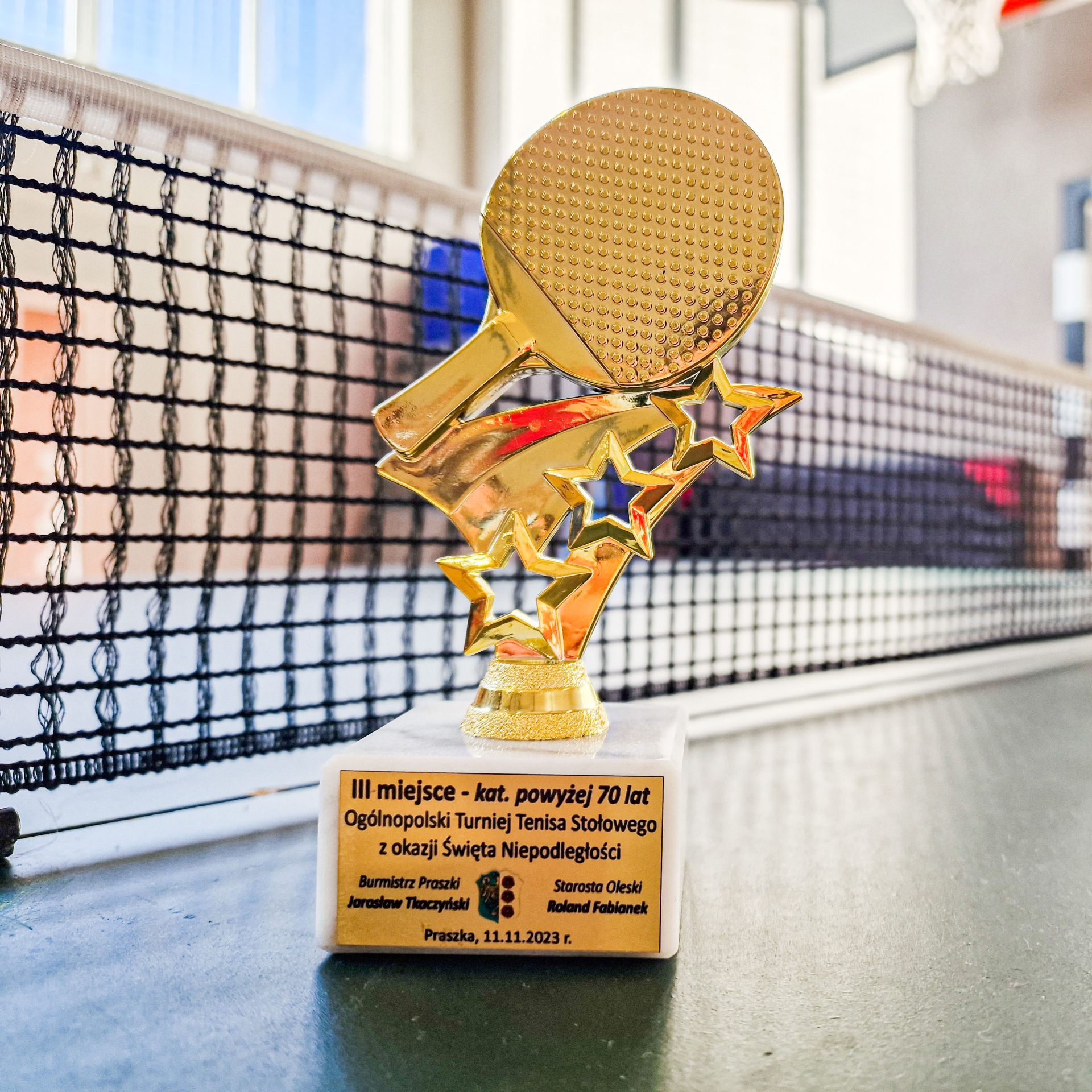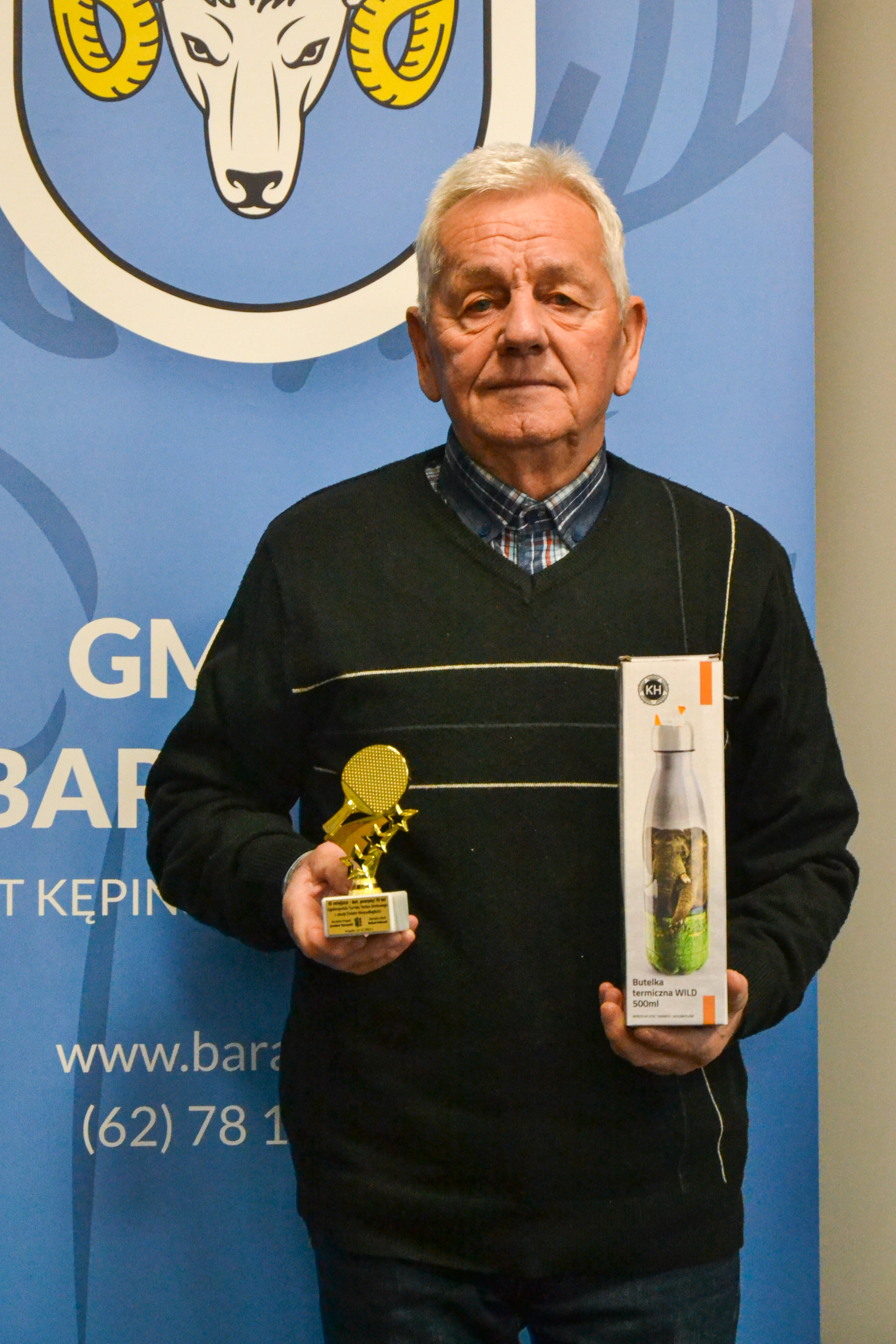 Świąteczny turniej w Praszce stanowił dla Pana Władka doskonały poligon przygotowawczy, bowiem wystartował w najstarszej kategorii wiekowej (powyżej 70 lat), w której wywalczył przecież złoty medal Mistrzostw Polski. Tym razem trafił do bardzo trudnej grupy, w której zajął 2. miejsce, tuż za Kazimierzem Więckowskim, późniejszym triumfatorem całych zawodów. W meczu o trzecie miejsce nie dał szans rywalowi. – Szkoda, że nie mogłem zagrać w turnieju open, obowiązki rodzinne okazały się jednak ważniejsze niż ping pong – żali się z uśmiechem. Przypomnijmy, że w ubiegłorocznych Mistrzostwach Polski Pan Władek wygrał wszystkie sześć meczów, w tym z poprzednim mistrzem. A w finale przegrywał przecież już 0:2. -Wydawało się, że nic mi nie pomoże, ale jakoś zebrałem dodatkowe siły i pokonałem go 3:2 – przypomina z dumą. Dorobek sportowy Pana Władka prezentuje się imponująco. dwukrotny Mistrz Powiatu Sołtysów i Rad Sołeckich, trzykrotny Mistrz Gminy Baranów (w tym w kat. open!), złoty medalista Mistrzostw Kępna, Mistrzostw Oleśnicy i Mistrzostw Byczyny. Lista byłaby dłuższa, gdybyśmy odnotowywali miejsca drugie, trzecie czy czwarte. A pierwsze tytuły, zdobywał jako nastolatek. O tym wszystkim Pan Władek opowiadał z dumą najmłodszym miłośnikom tenisa stołowego w trakcie Mistrzostw Gminy Dziewcząt i Chłopców, które odbyły się 14 listopada w Słupi. W tych zawodach pełnił rolę sędziego głównego. W meczach z najmłodszymi adeptami ping ponga Pan Władek ani razu nie dał się pokonać. Życzymy mu więc siły i entuzjazmu, by jego trofea lśniły wciąż nowym złotem.