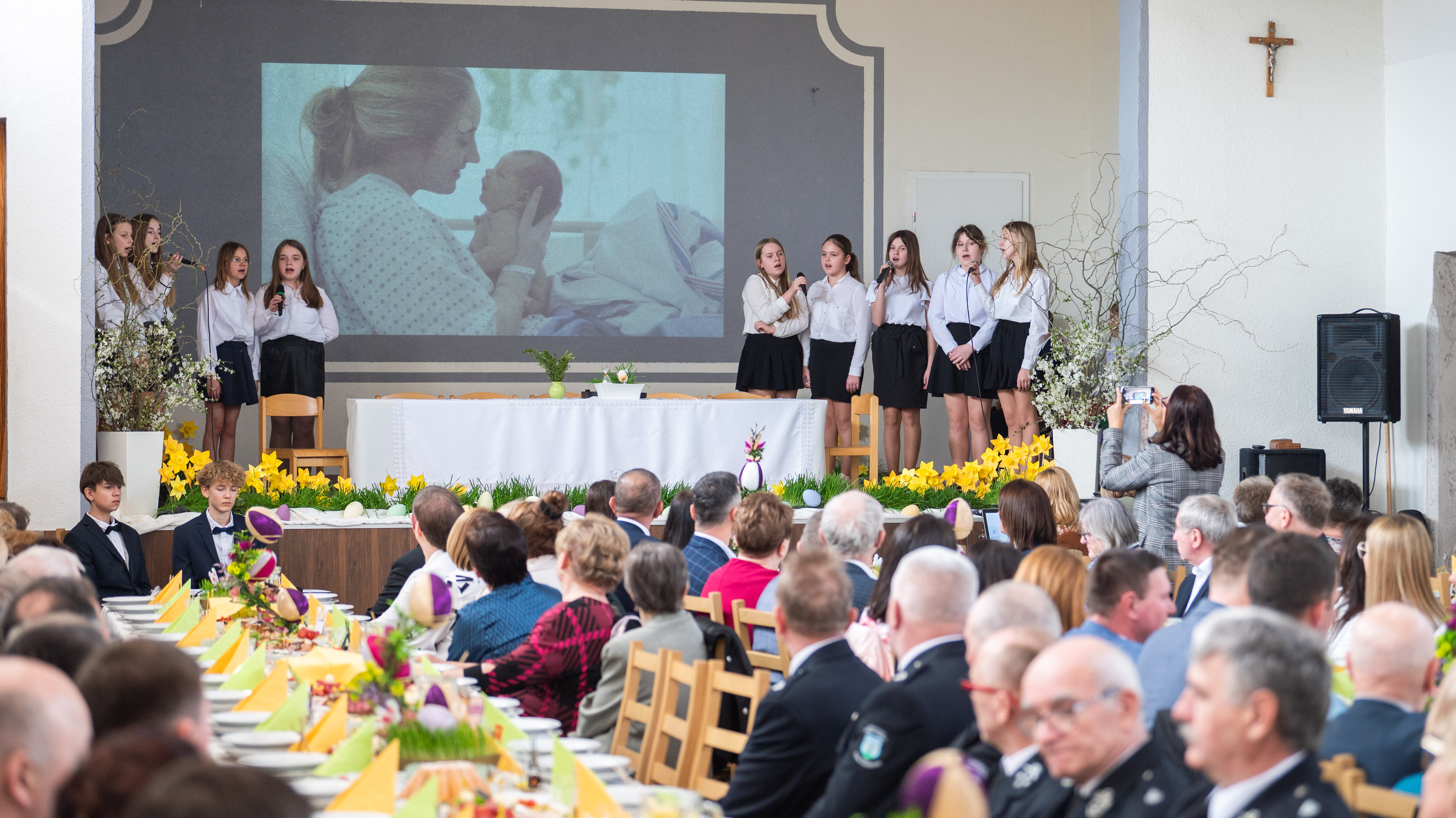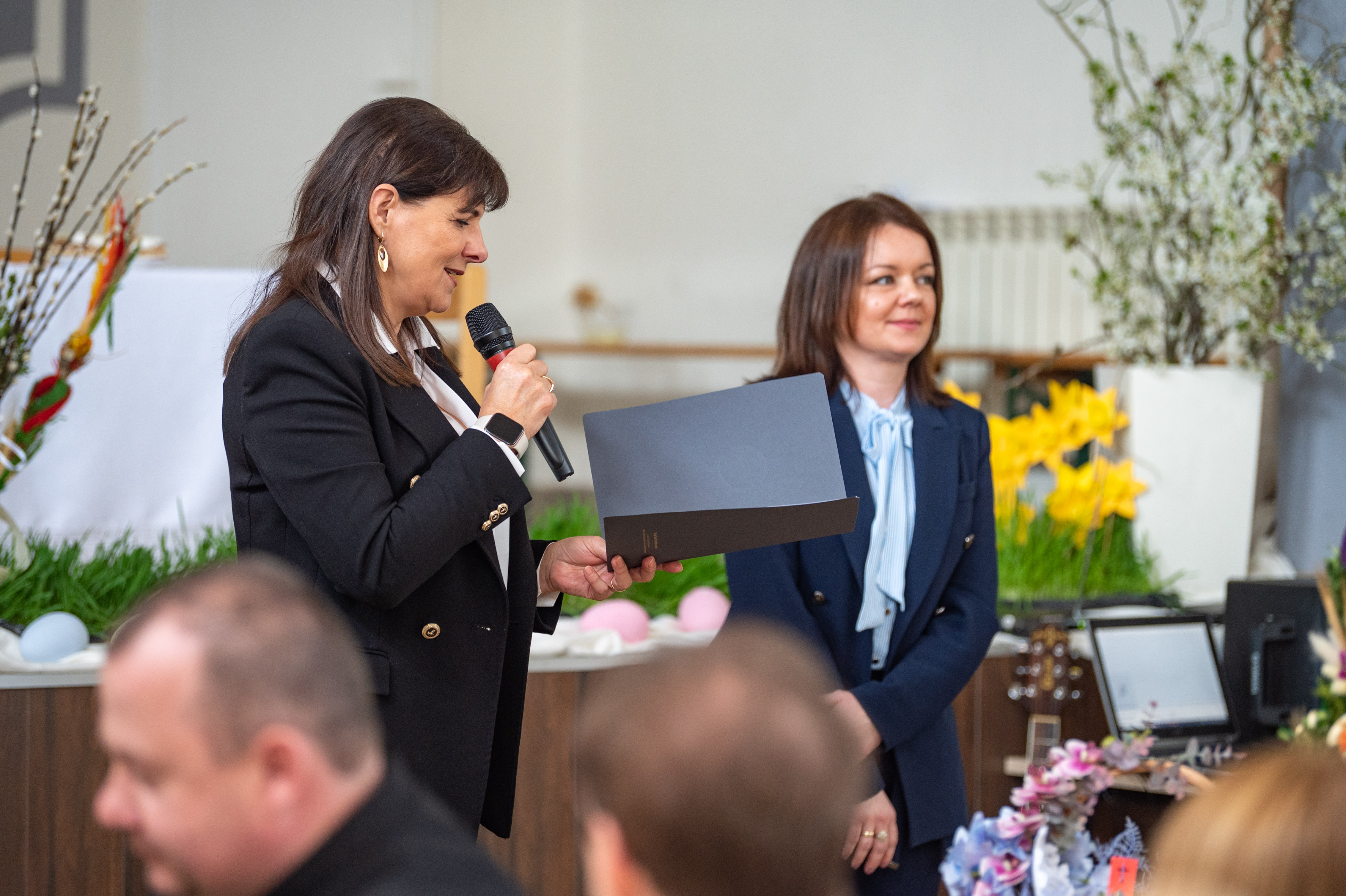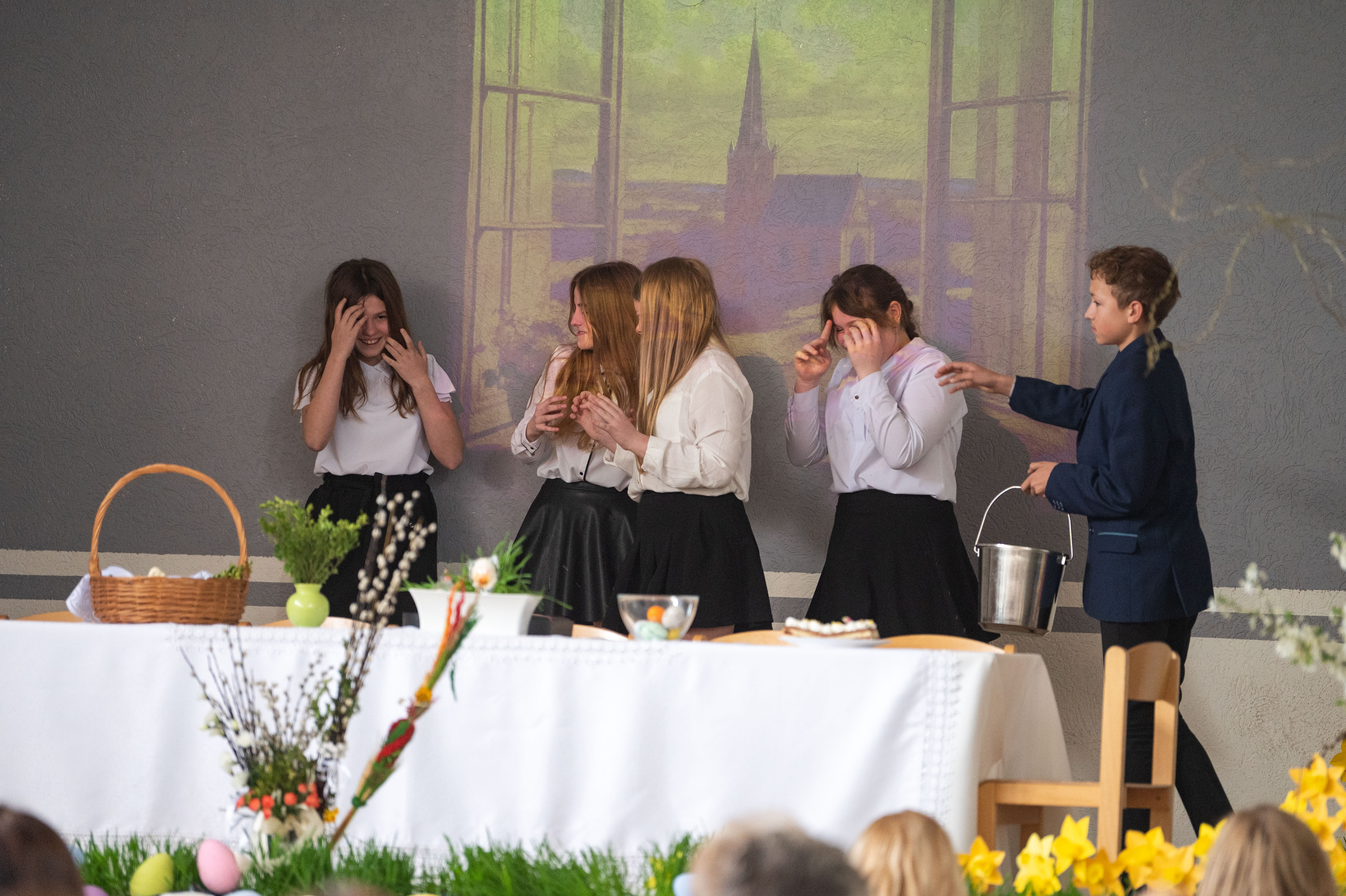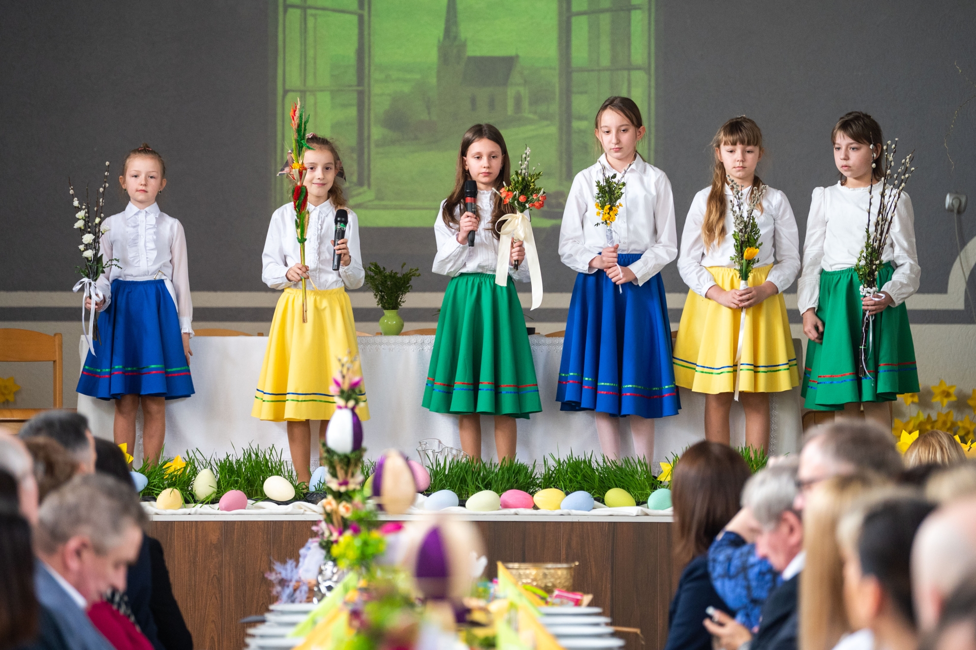 Niedziela wielkanocna, upamiętniająca Zmartwychwstanie Pańskie, to najważniejsze święto chrześcijańskie. Tego dnia o poranku zasiadamy w rodzinnym gronie przy stole, by wspólnie podzielić się Dobrą Nowiną. W tym roku symboliczny gminny stół przygotowano w Słupi. Życzenia złożyła p. Wójt Bogumiła Lewandowska-Siwek przewodniczący Rady Gminy – Marian Kremer oraz przewodnicząca miejscowego KGW – Daria Lewicka. Zaproszenie do wspólnego świętowania przyjęli znamienici goście: radni, sołtysi, druhowie OSP, dyrektorzy szkół, przedstawiciele organizacji pozarządowych, koła gospodyń wiejskich, emeryci i renciści, lokalni przedsiębiorcy, media. Zwyczaje i tradycje wielkanocne przybliżyli nam mali artyści ze szkoły w Słupi. Błogosławieństwa udzielił ks. proboszcz Jacek Andrzejczak.
