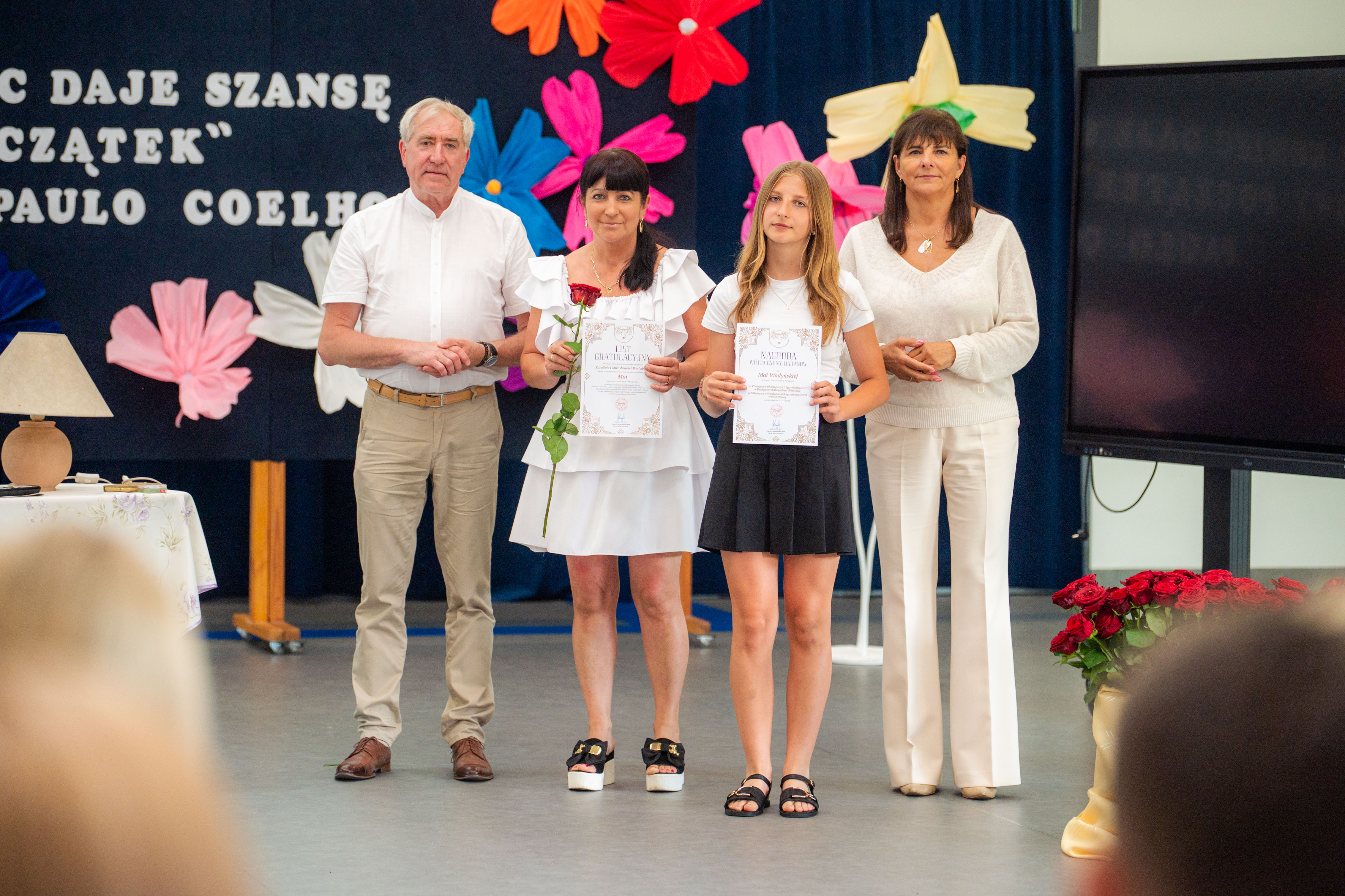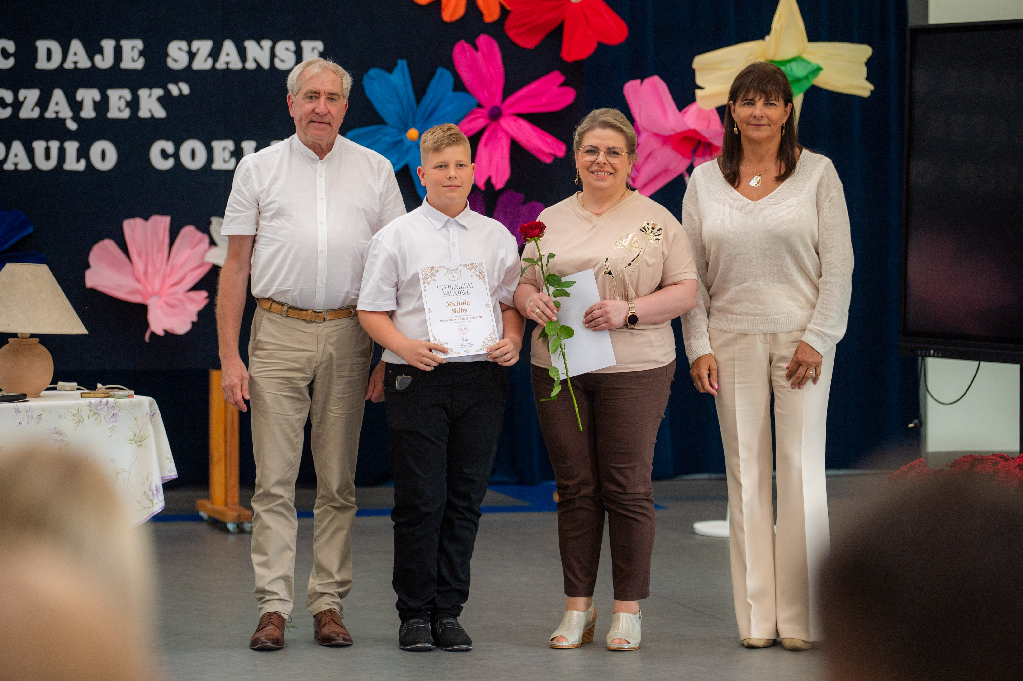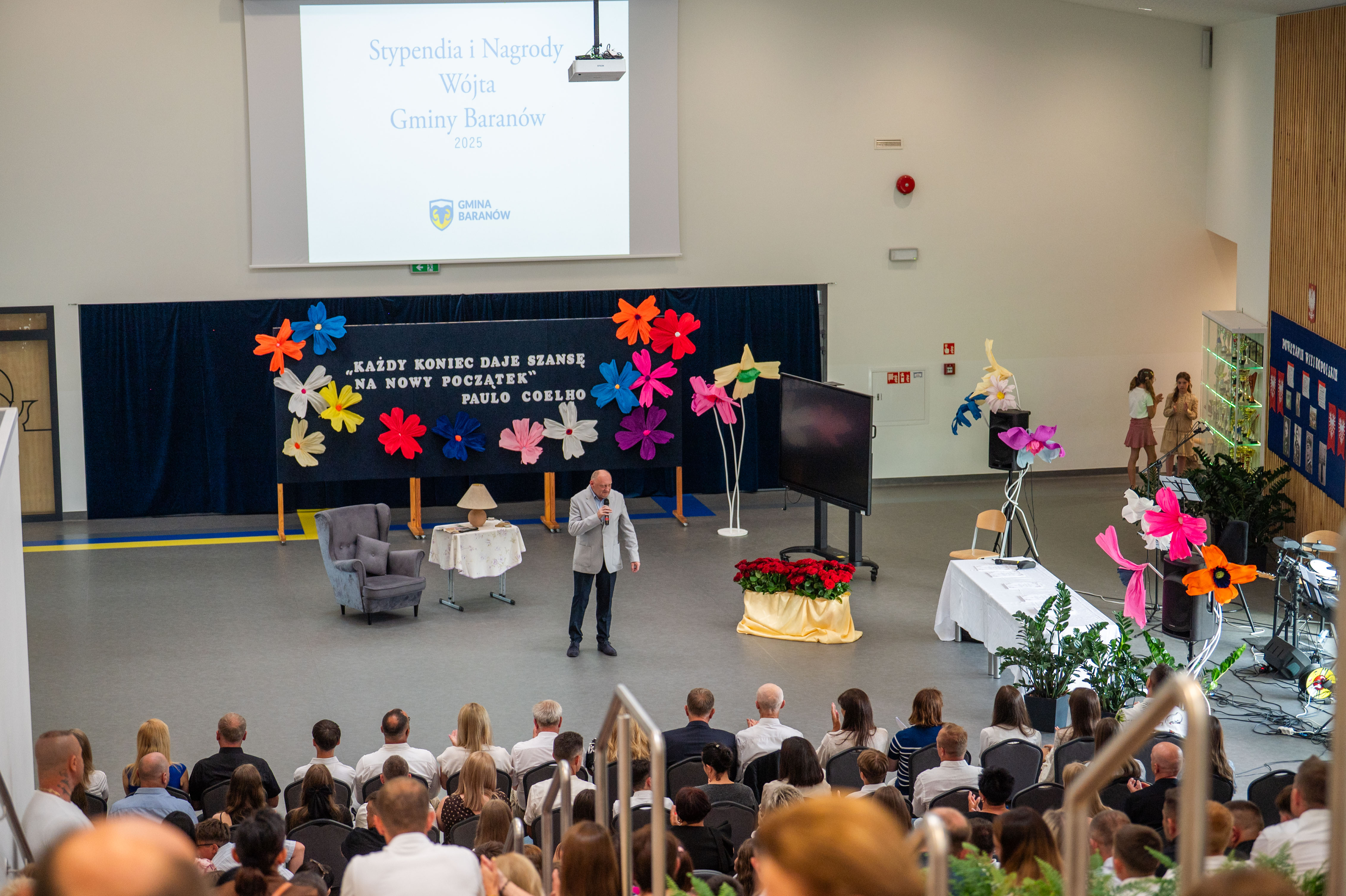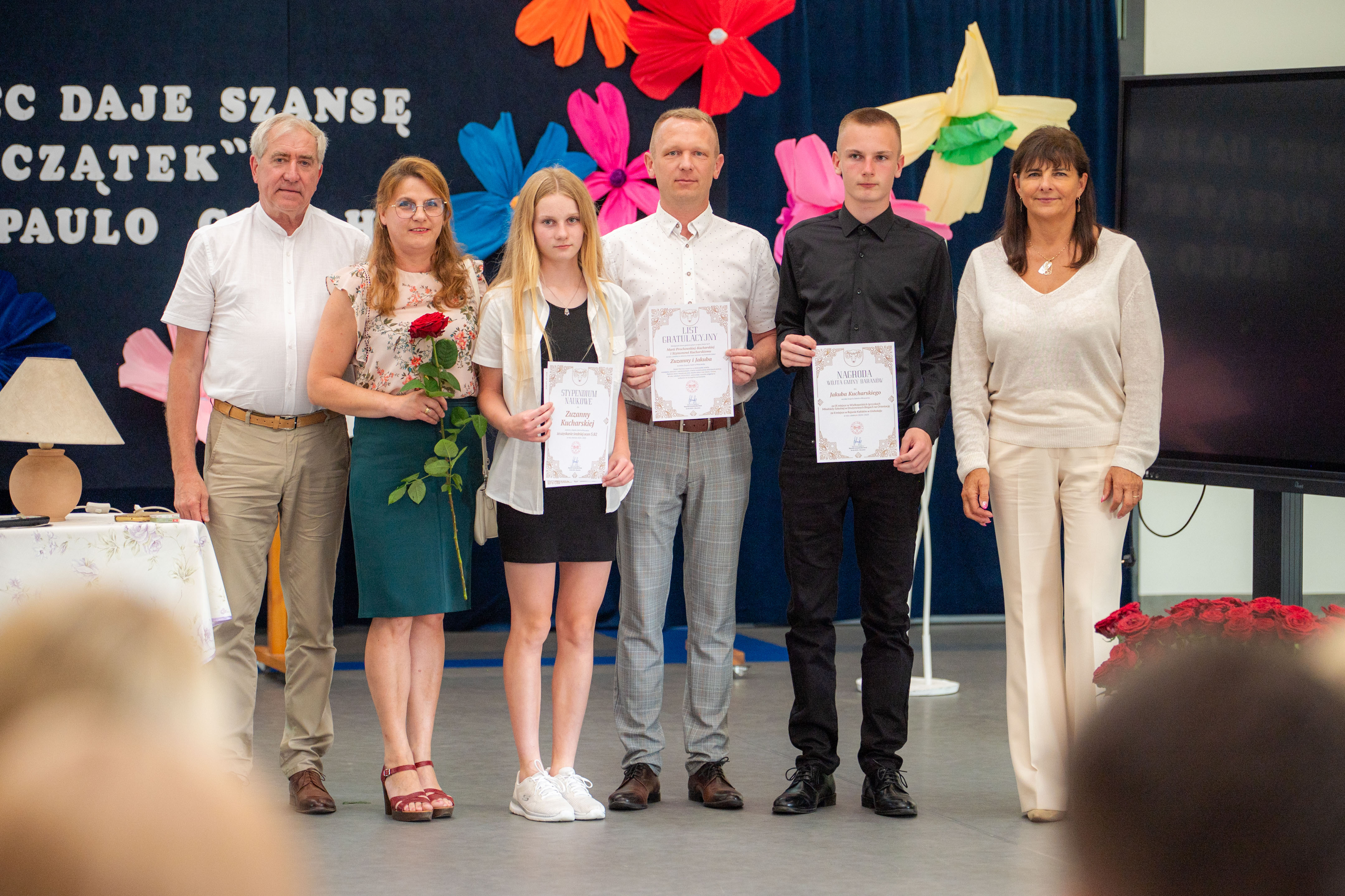W tym roku nagrodzono 137 osób. Każdy z laureatów, w asyście dumnych rodziców, odebrał list gratulacyjny z rąk p. Wójt. Tegorocznej Gali patronował Paulo Coelho. Stąd pomysł, by pamiątkowe zdjęcie wykonać na tle cytatu z jednego z dzieł poczytnego Brazylijczyka. „Każdy koniec daje szansę na nowy początek”.
