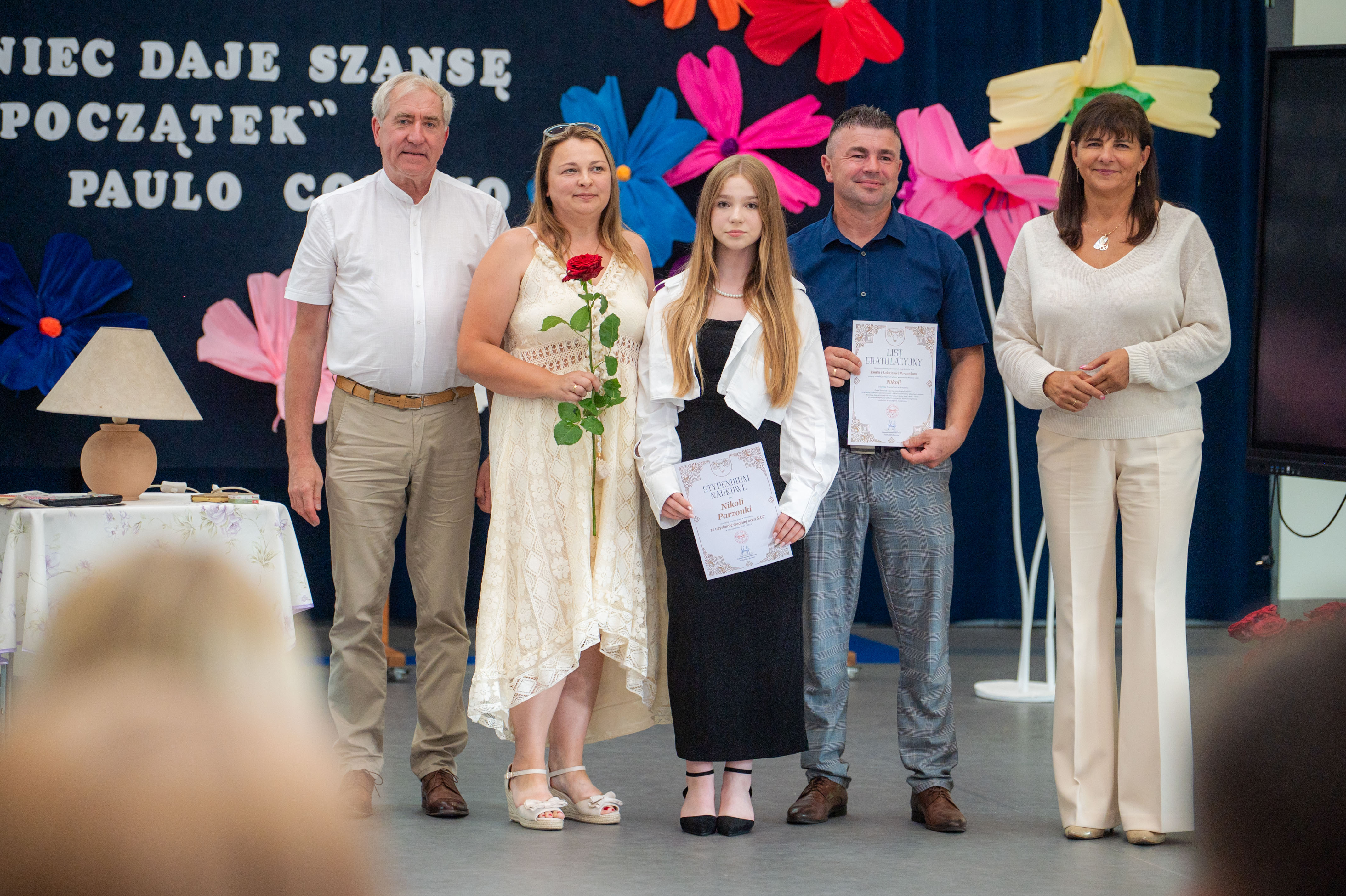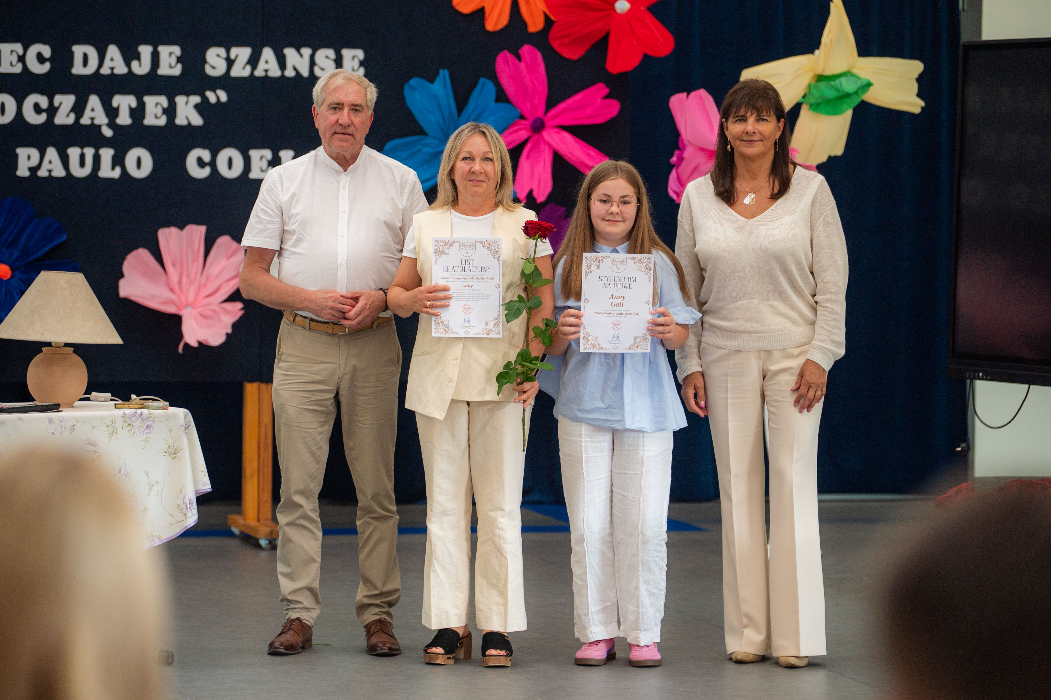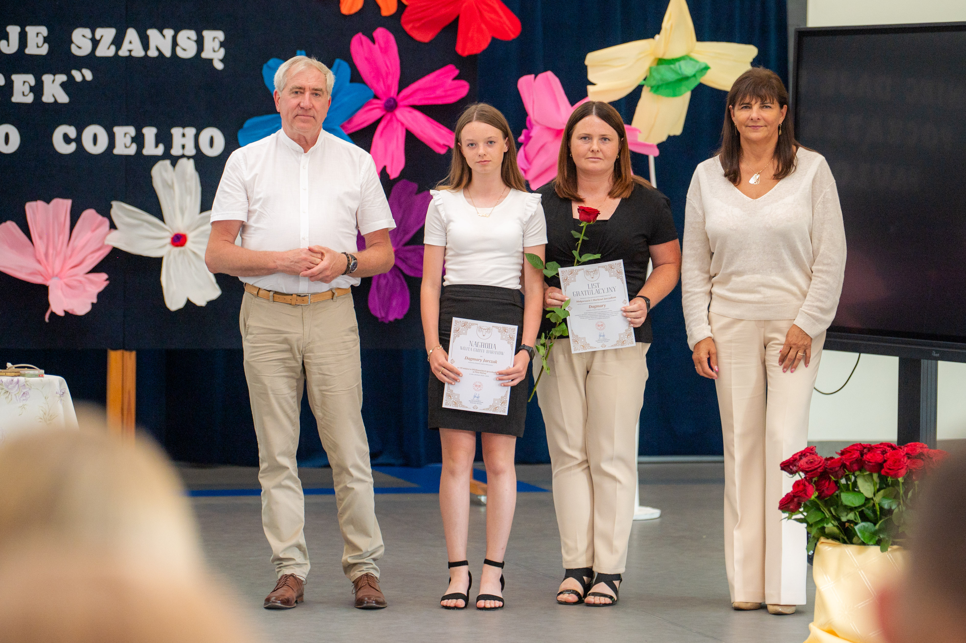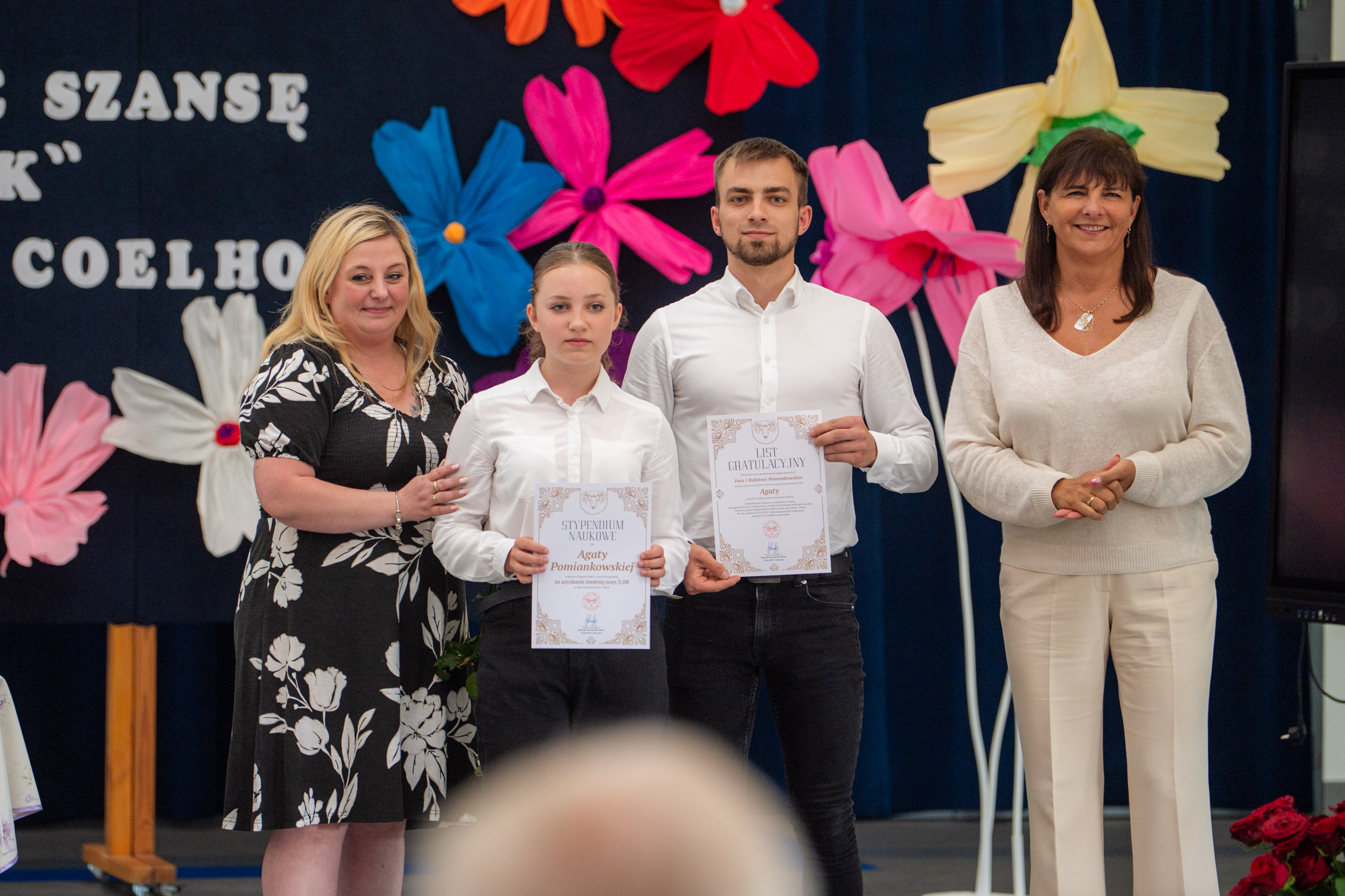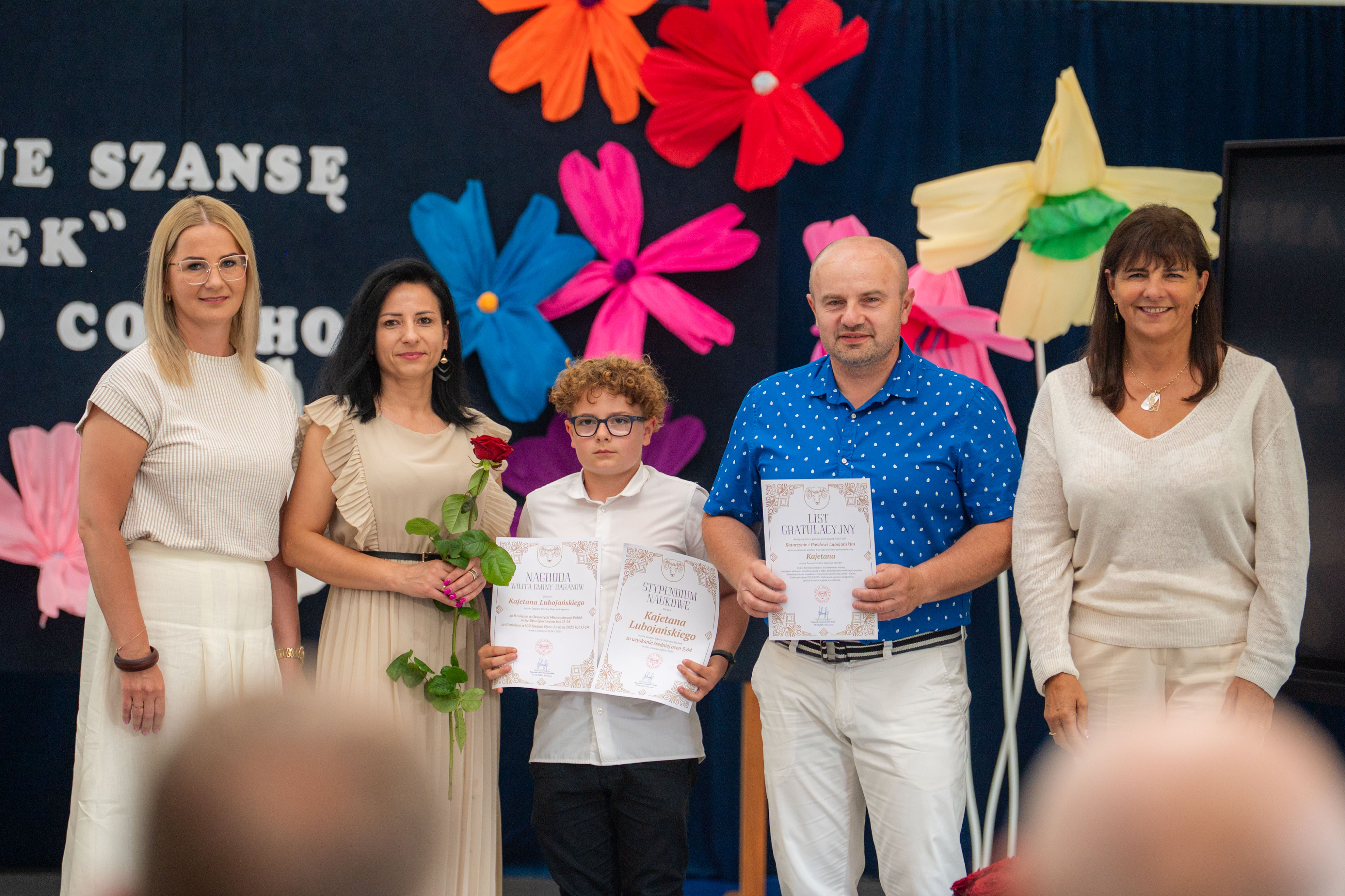 W tym roku nagrodzono 137 osób. Każdy z laureatów, w asyście dumnych rodziców, odebrał list gratulacyjny z rąk p. Wójt. Tegorocznej Gali patronował Paulo Coelho. Stąd pomysł, by pamiątkowe zdjęcie wykonać na tle cytatu z jednego z dzieł poczytnego Brazylijczyka. „Każdy koniec daje szansę na nowy początek”.