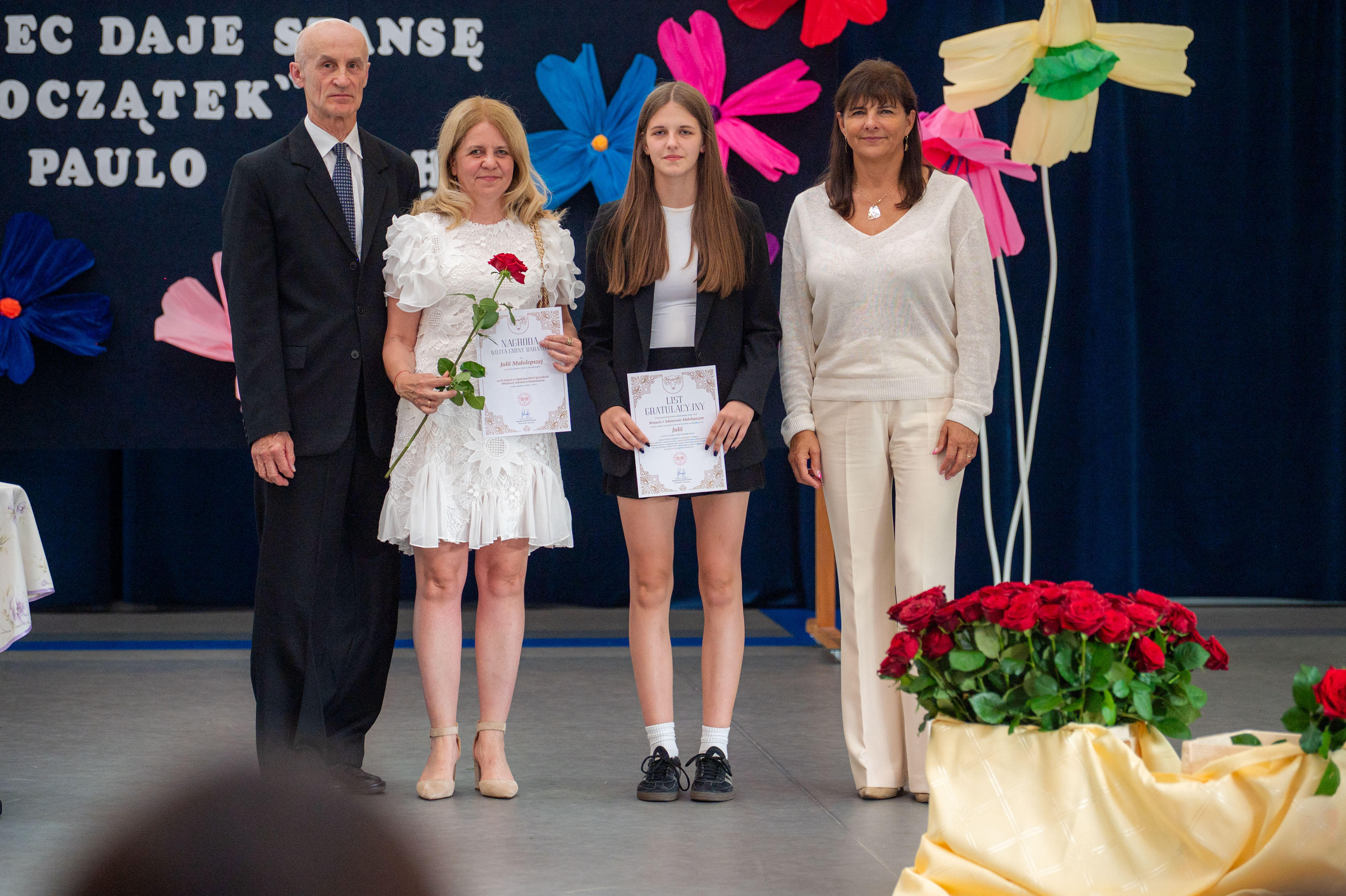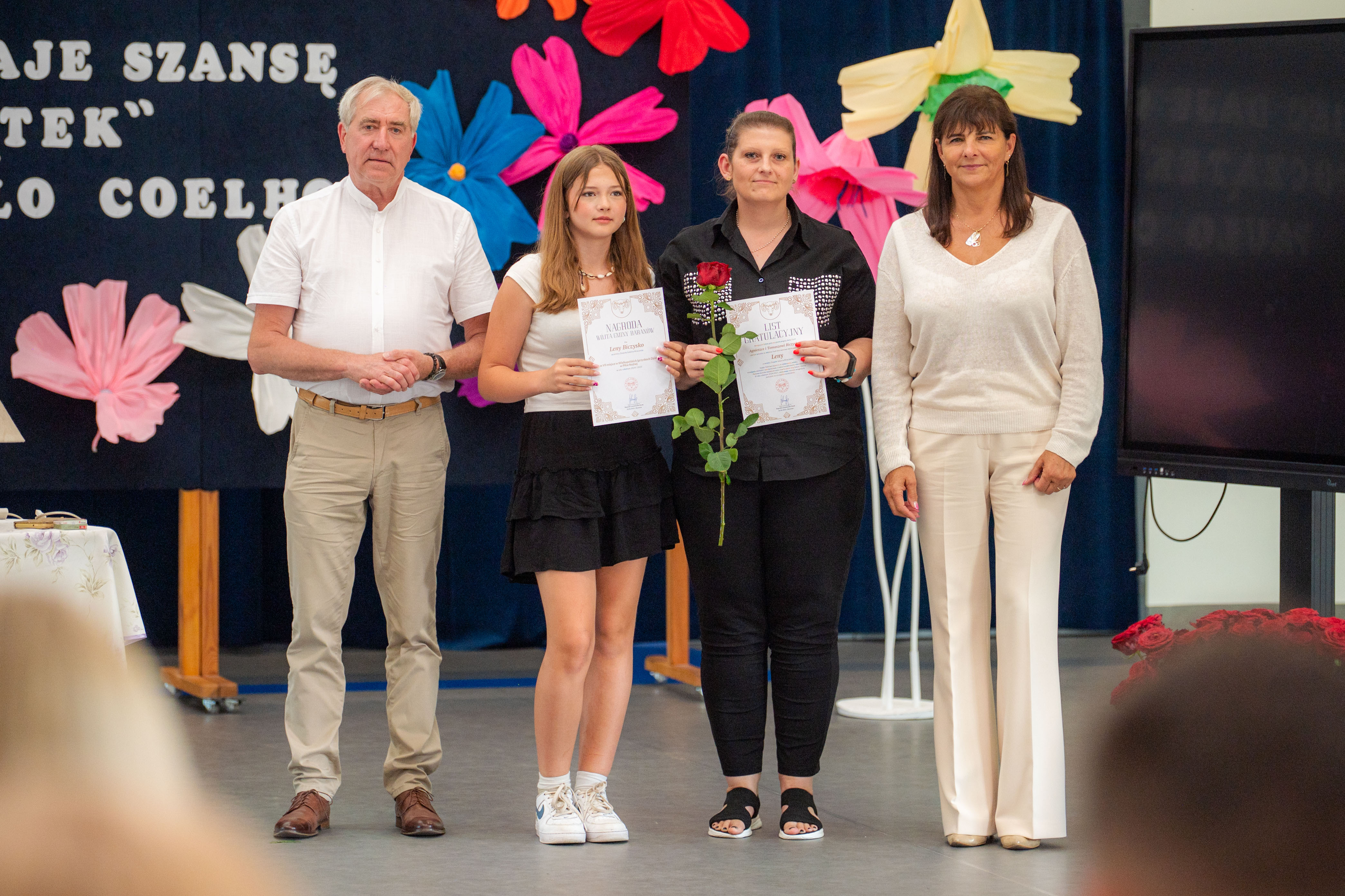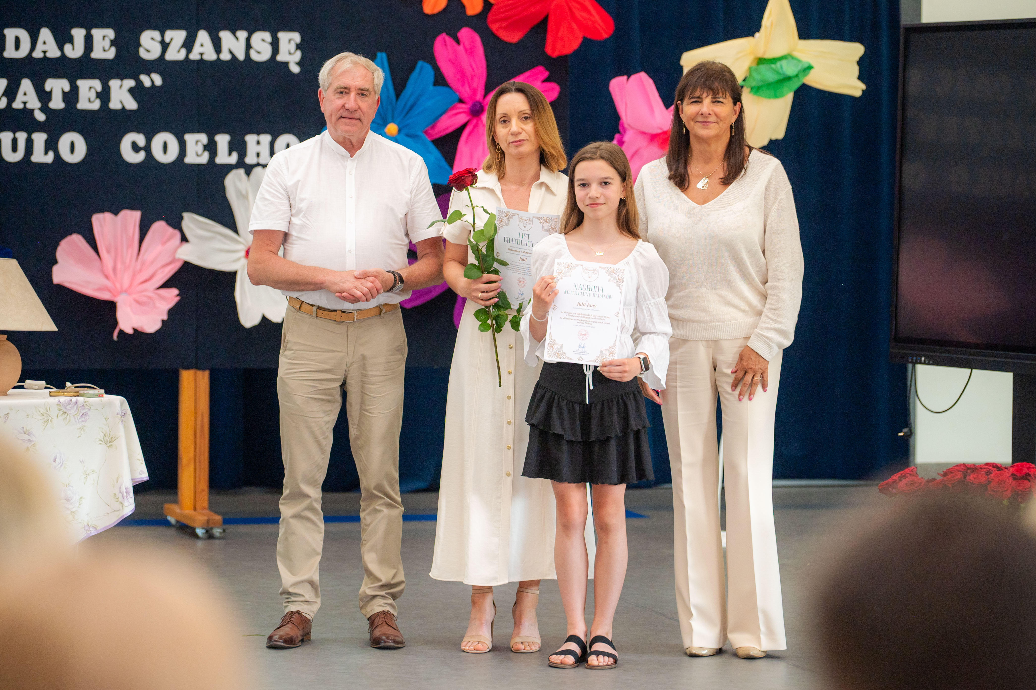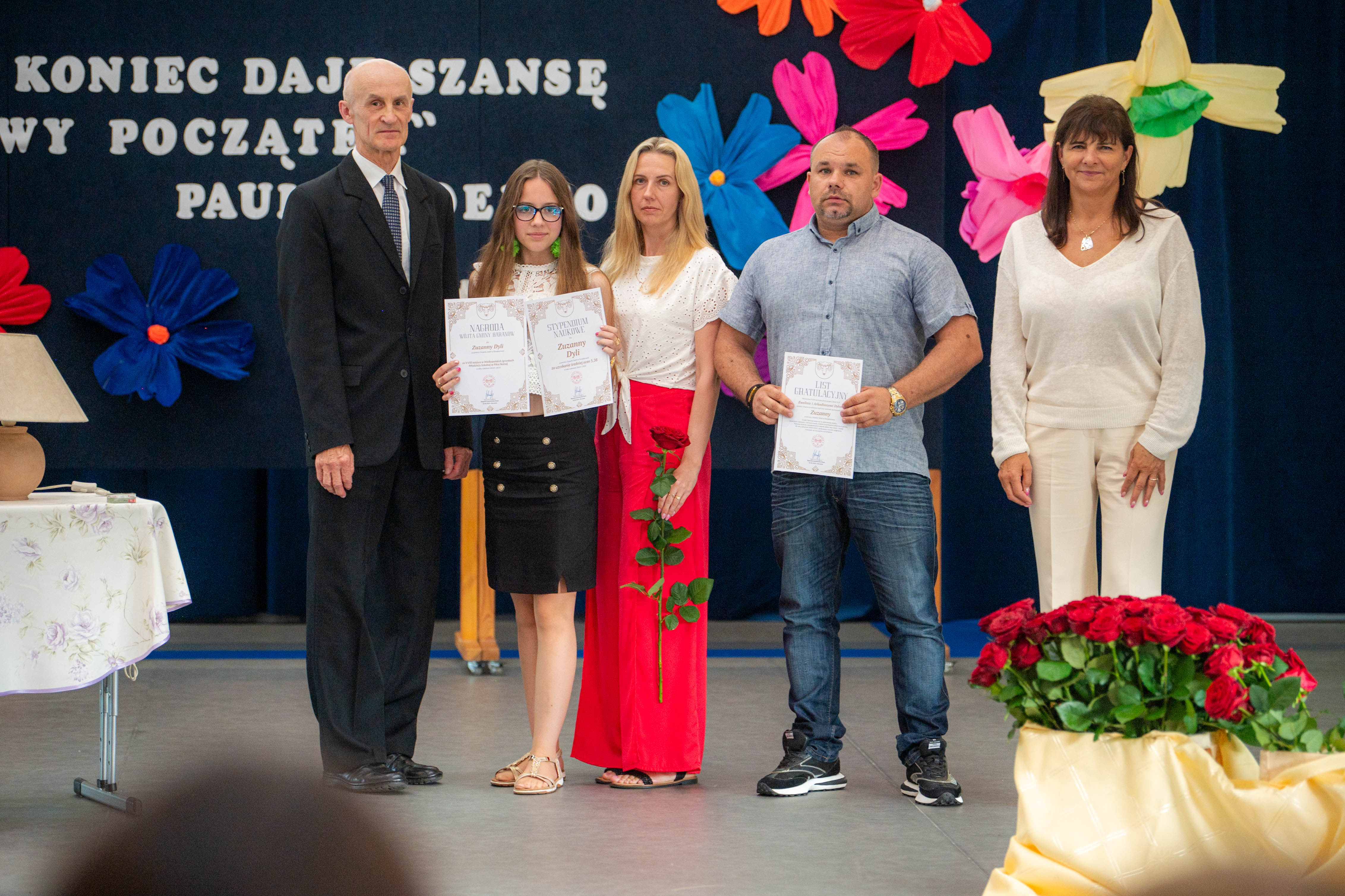 W tym roku nagrodzono 137 osób. Każdy z laureatów, w asyście dumnych rodziców, odebrał list gratulacyjny z rąk p. Wójt. Tegorocznej Gali patronował Paulo Coelho. Stąd pomysł, by pamiątkowe zdjęcie wykonać na tle cytatu z jednego z dzieł poczytnego Brazylijczyka. „Każdy koniec daje szansę na nowy początek”.