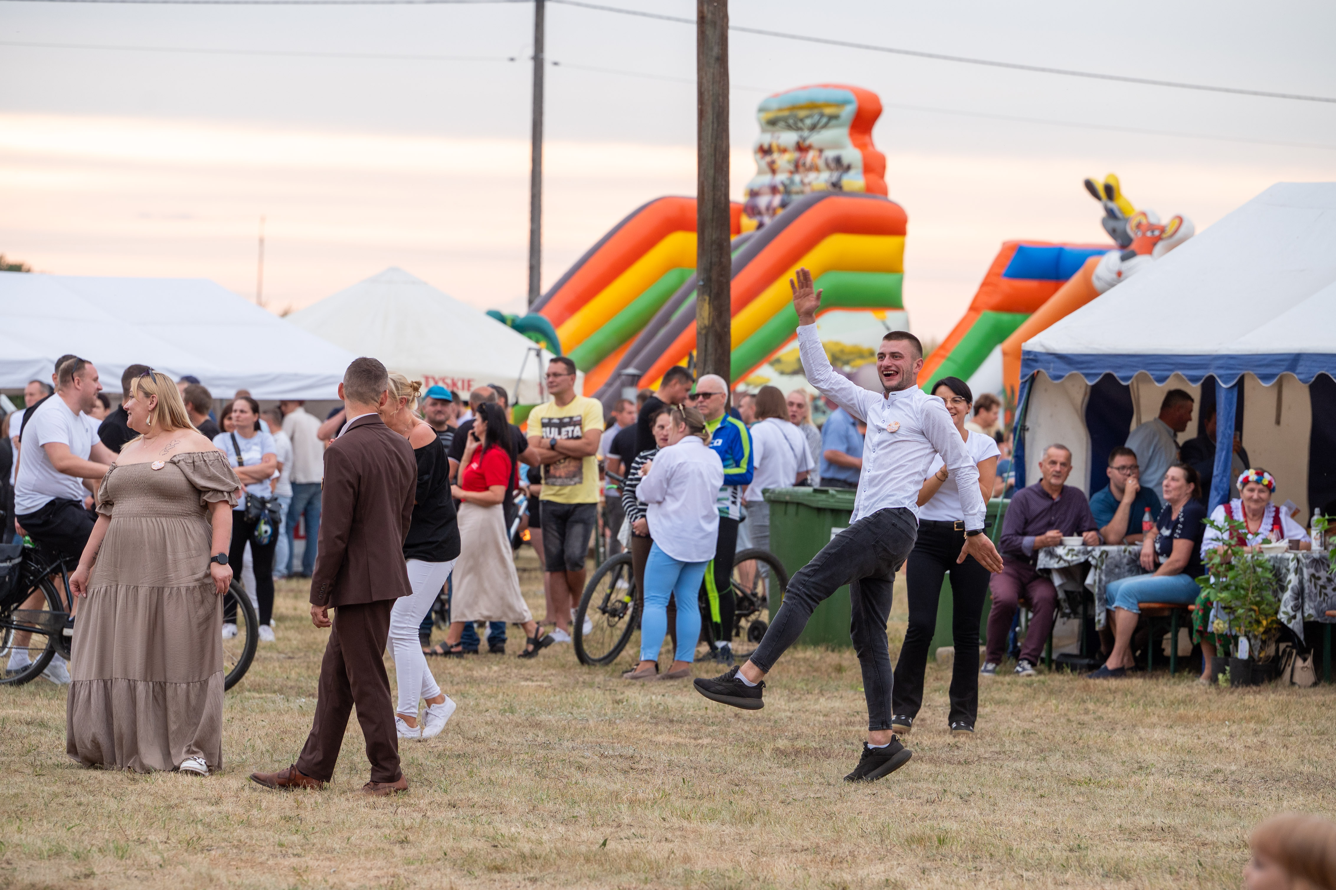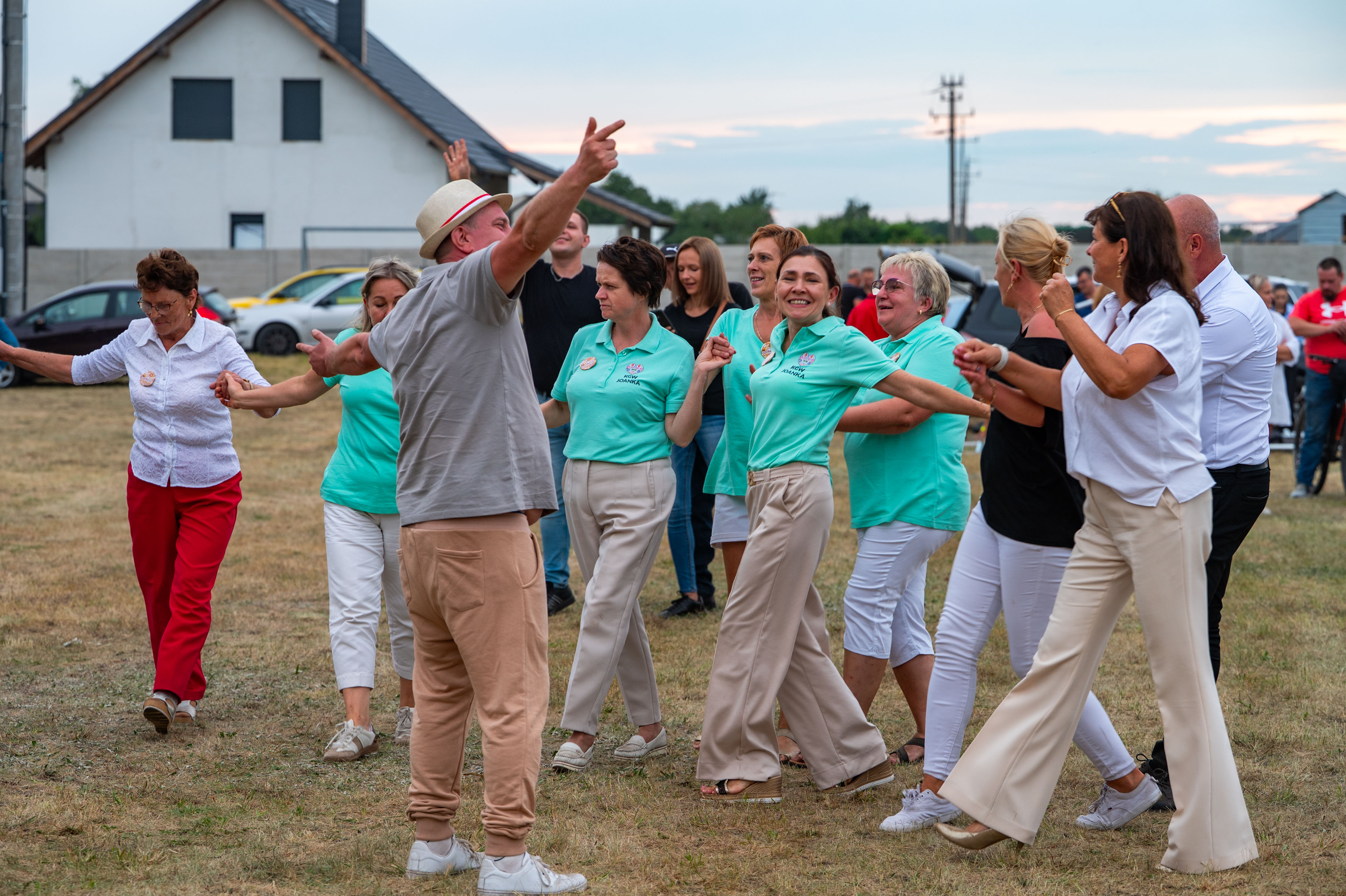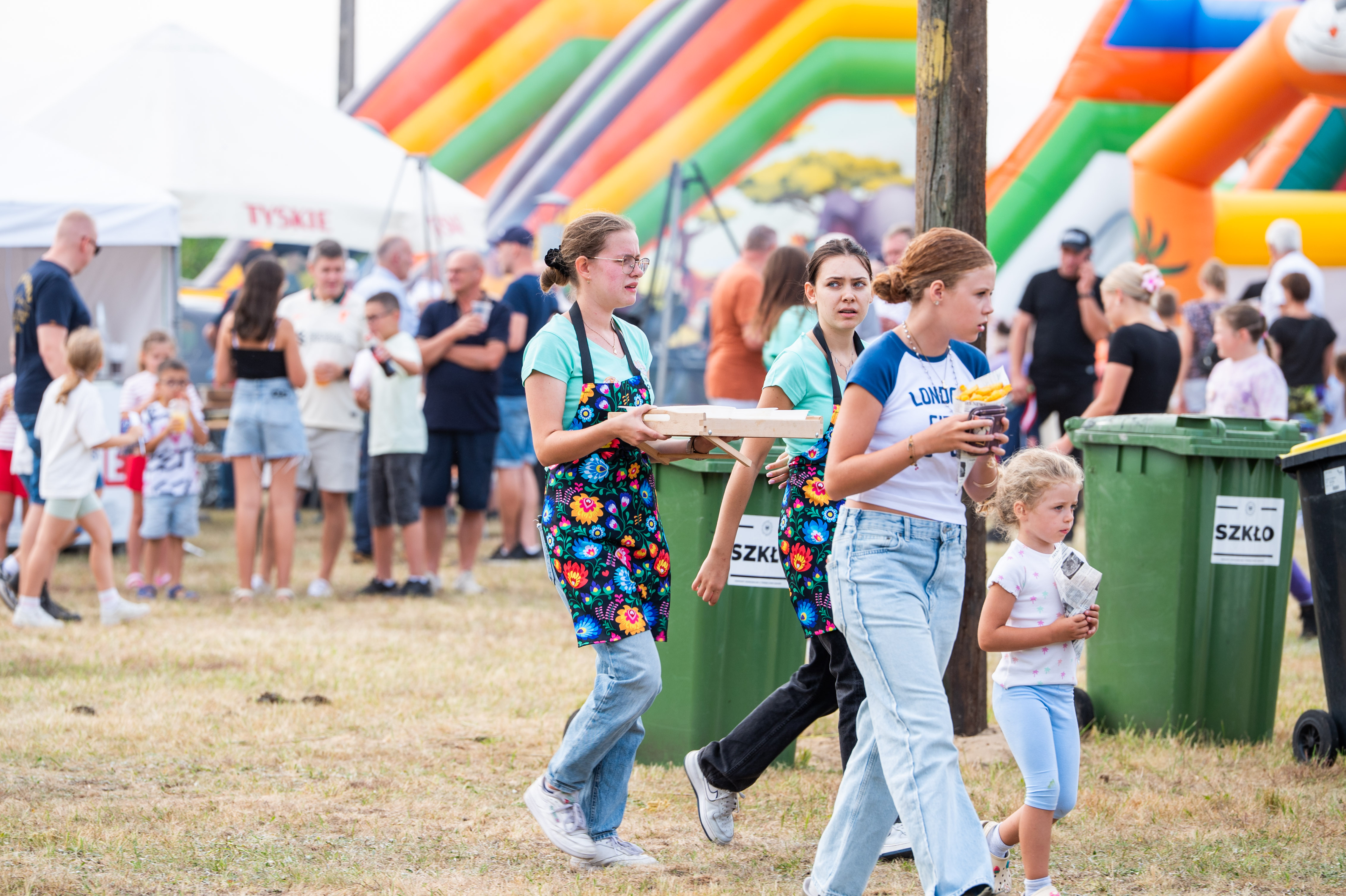 Na dożynki licznie przybyli rolnicy z całej Gminy. Komisja konkursowa rozstrzygnęła konkursy na pomysłowo przystrojoną zagrodę oraz na najładniej udekorowany wóz w korowodzie dożynkowym. W pierwszym konkursie zwyciężył Adam Pietrzak (Champion dożynek), a nagroda za najładniejszy wóz pojechała do Grębanina. I tym razem nie zabrakło atrakcji dla dzieci, a na wszystkich czekał smaczny dożynkowy posiłek. Uzupełnieniem festynu były stoiska tematyczne. Swoją ofertę przedstawił SBL oraz ZZO Olszowa. Dużym zainteresowanie cieszył się kącik adopcyjny …dla naszych czworonożnych przyjaciół (więcej o akcji tutaj). Muzyczną część sobotniego święta wypełnił koncert Mateusza Mijala, utrzymany w sentymentalnym nastroju oraz popisy wokalno-taneczne discopolowej Red Quinn, czyli Wiktorii. W deszczowym finale, przy muzyce serwowanej przez DJ Prezesa, najwytrwalsi uwijali się do białego rana, czyli …do upadłego.