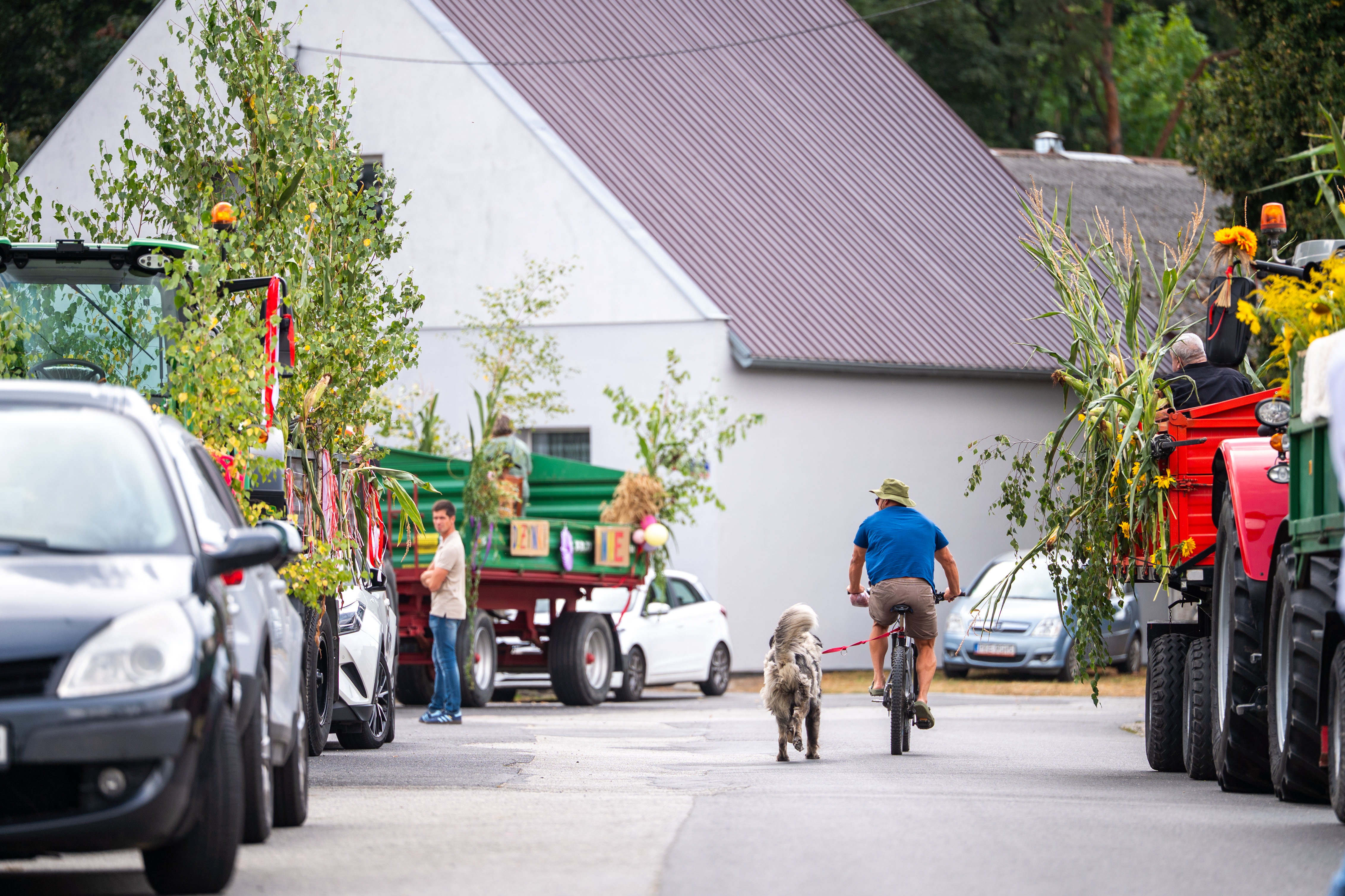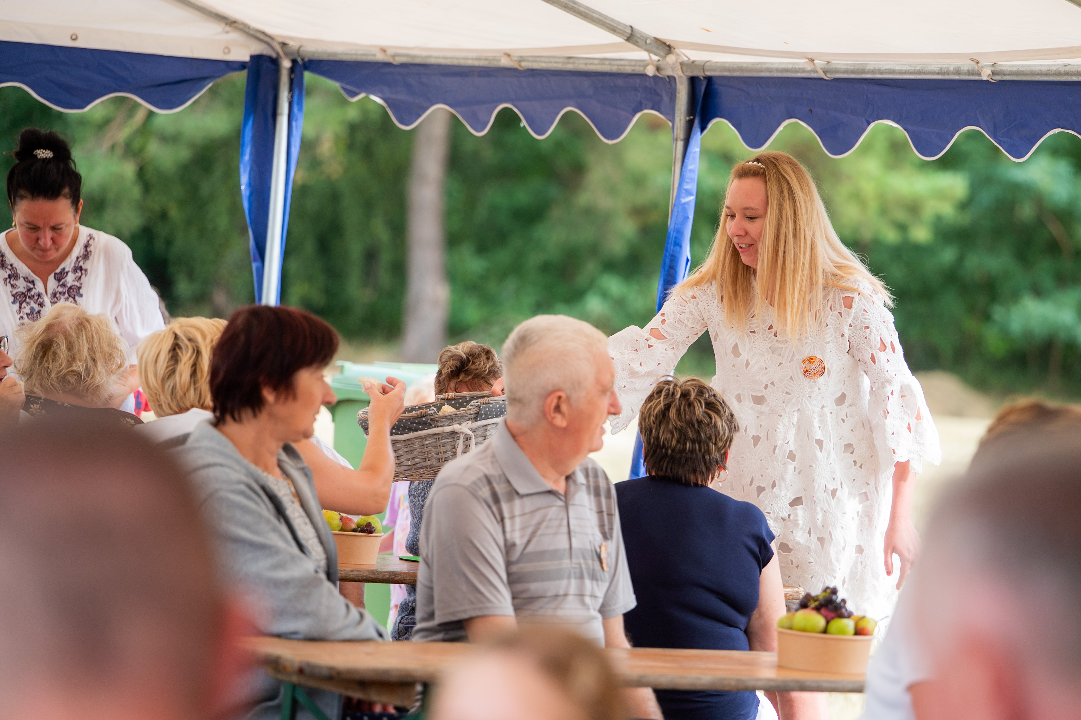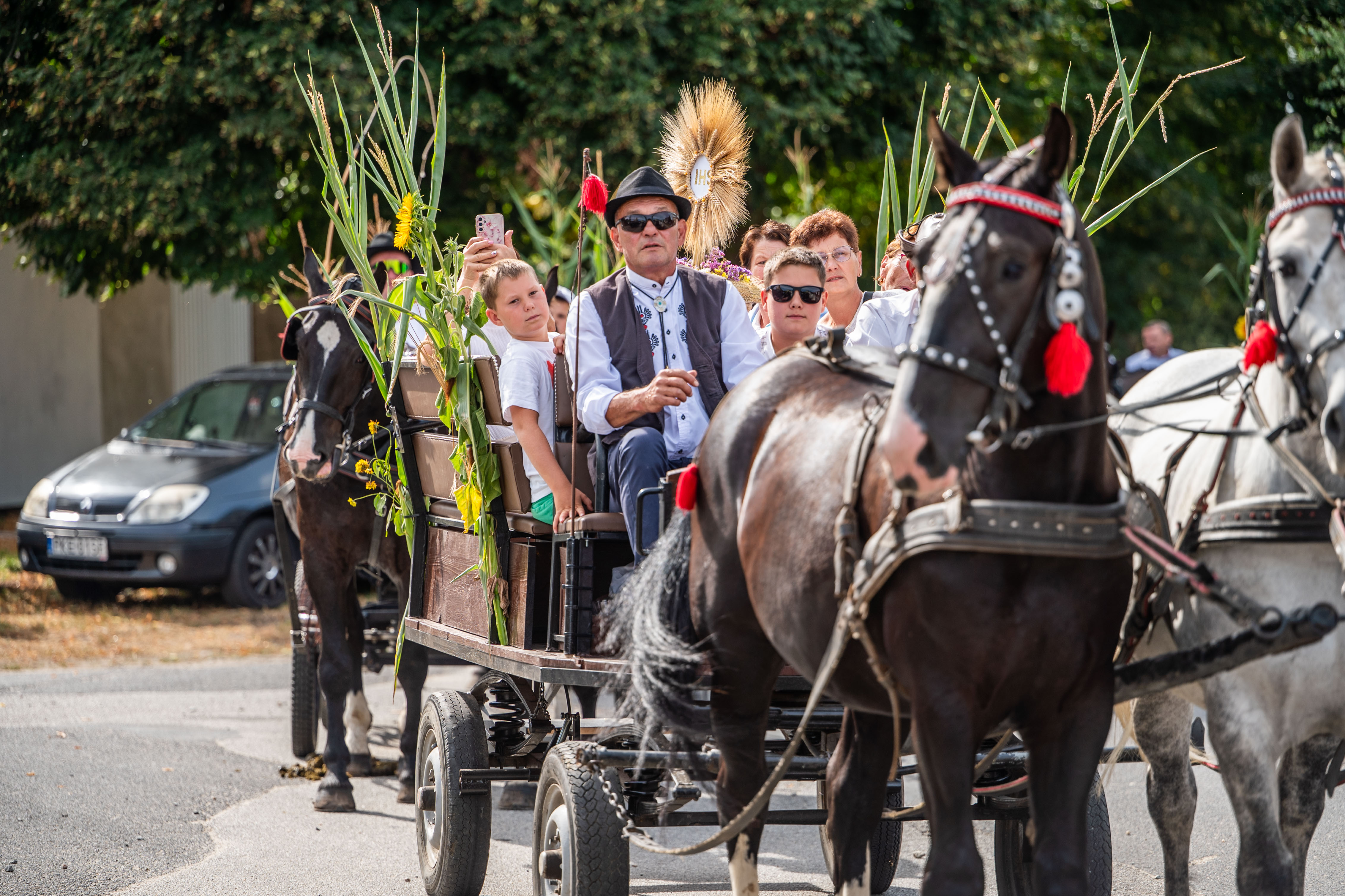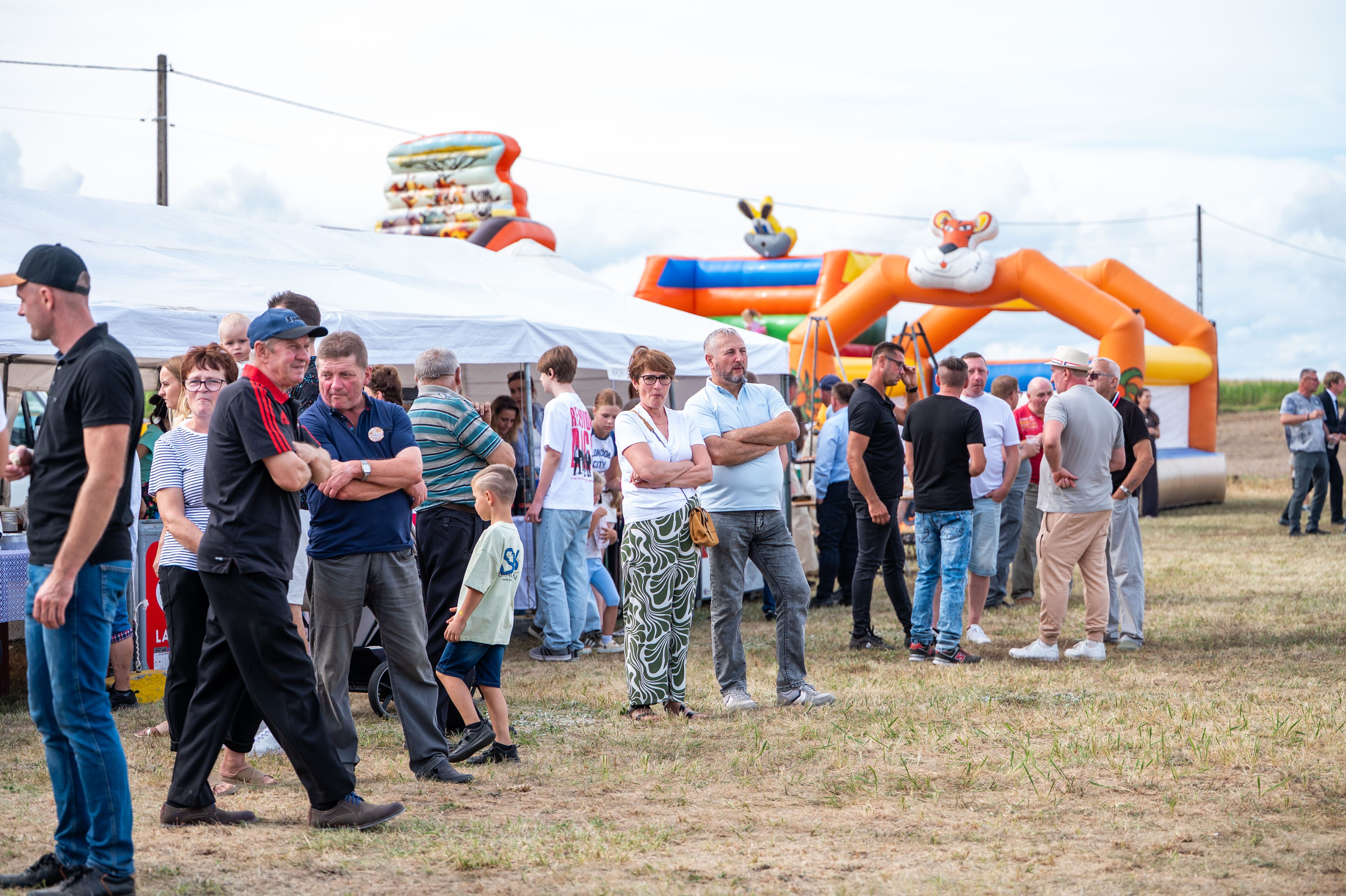 Na dożynki licznie przybyli rolnicy z całej Gminy. Komisja konkursowa rozstrzygnęła konkursy na pomysłowo przystrojoną zagrodę oraz na najładniej udekorowany wóz w korowodzie dożynkowym. W pierwszym konkursie zwyciężył Adam Pietrzak (Champion dożynek), a nagroda za najładniejszy wóz pojechała do Grębanina. I tym razem nie zabrakło atrakcji dla dzieci, a na wszystkich czekał smaczny dożynkowy posiłek. Uzupełnieniem festynu były stoiska tematyczne. Swoją ofertę przedstawił SBL oraz ZZO Olszowa. Dużym zainteresowanie cieszył się kącik adopcyjny …dla naszych czworonożnych przyjaciół (więcej o akcji tutaj). Muzyczną część sobotniego święta wypełnił koncert Mateusza Mijala, utrzymany w sentymentalnym nastroju oraz popisy wokalno-taneczne discopolowej Red Quinn, czyli Wiktorii. W deszczowym finale, przy muzyce serwowanej przez DJ Prezesa, najwytrwalsi uwijali się do białego rana, czyli …do upadłego.