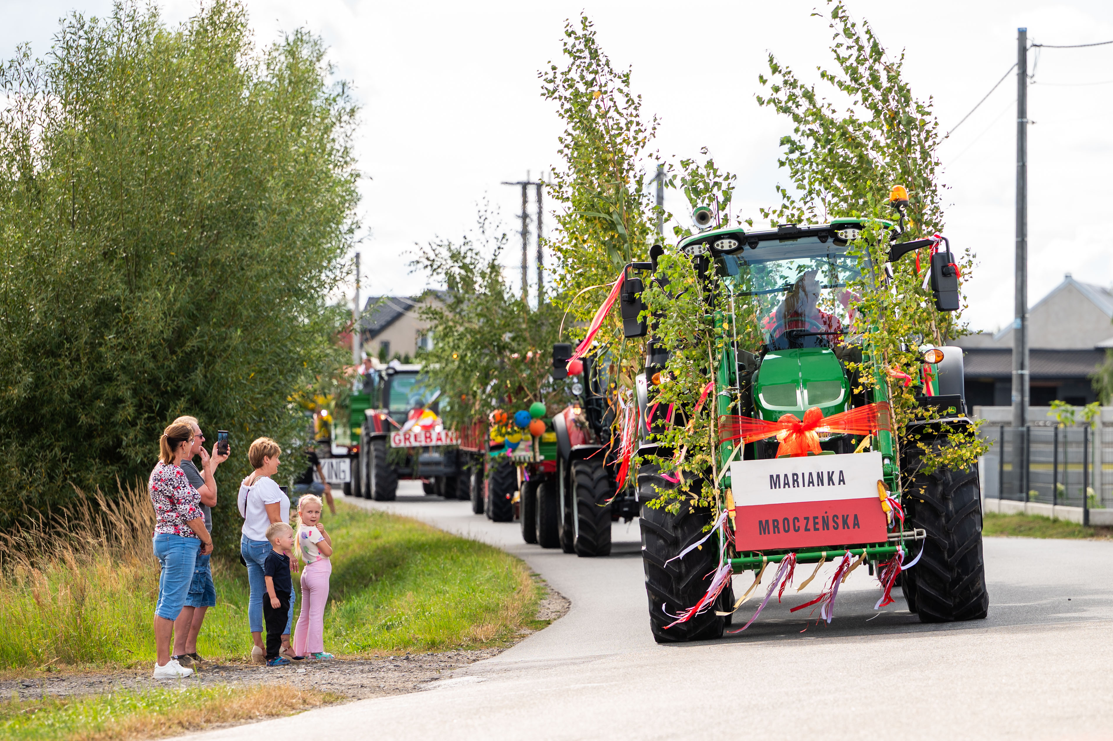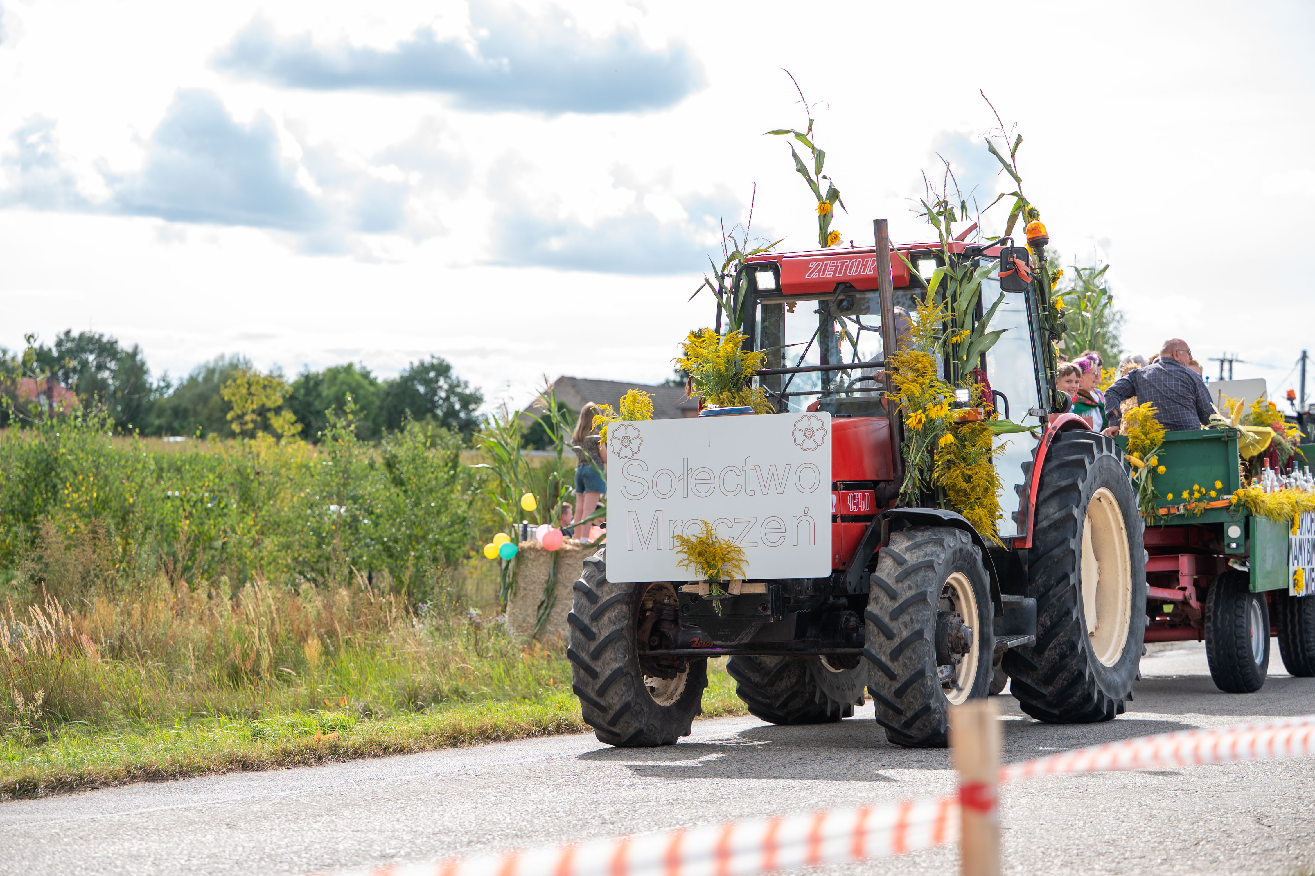 Po mszy św., odprawionej przez ks. Jerzego Kondala, barwny korowód ruszył z Mroczenia do Joanki, z Gośćmi ulokowanymi w pięknych bryczkach, poprzedzających maszyny naszych dziadków oraz nowoczesne Classy czy Fergusony. Delegacje złożyły pod sceną wieńce dożynkowe. Wszyscy zebrani minutą ciszy uczcili pamięć Jana Rabiegi, człowieka niezwykle zasłużonego dla naszej Małej Ojczyzny. Później starostwie dożynek – Tomasz Szlezynger i Dominika Nowak - złożyli dożynkowy bochen na ręce P. Wójt - Bogumiły Lewandowskiej-Siwek oraz przewodniczącego Rady - Ryszarda Stasiowskiego Następnie śledziliśmy z uwagą obrzęd dzielenia się chlebem przy akompaniamencie zespołu „Słupianie”. P. Wójt Bogumiła Lewandowska przekazała podziękowania za ogromne zaangażowanie w przygotowanie Gminnego Święta Plonów. - Życzę, żeby nigdy tego chleba nie zabrakło, a ja będę go zawsze dzieliła sprawiedliwie. Obiecuję – przekonywała.