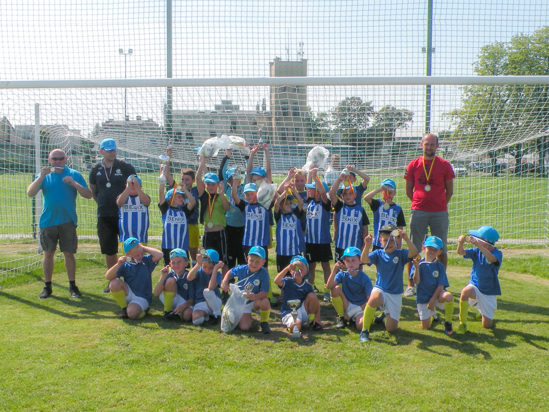 Lubimy jeździć na turnieje do Koźmina, gdyż te zawody stoją zawsze na wysokim poziomie sportowym i wyróżniają się doskonałą organizacją. Poza tym, tak po prostu, gospodarze są niezwykle sympatyczni. Inny ważny powód skłaniający nas do wyjazdu w to miejsce jest zaiste i prozaiczny, i dramatyczny. Od dwóch lat nasi najmłodsi piłkarze trenują tylko na sztucznej trawie, a w Koźminie gra się na prawdziwej murawie. Tym razem zabraliśmy nasze najmłodsze grupy: Orliki młodsze, żaki i skrzaty. Wszyscy włożyli w walkę na boisku ogromne serce, co zaowocowało dwoma pucharami. Ogromny pech dopadł nasze Orliki. Nie dość, że wakacje zatrzymały kliku zawodników, to jeszcze dwie kontuzje zdekompletowały zespół. Starszym kolegom ruszyli więc na pomoc młodsi. Wielkie brawa! Nagrody indywidualne wywalczyli: Filip Pałka (2009), Gracjan Rachel (2011) i Michał Skiba (2014) – najmłodszy zawodnik i… najszczęśliwszy debiutant. Zarząd „Pioniera” Baranów dziękuje p. Wójt za pomoc w organizacji wyjazdu na turniej.