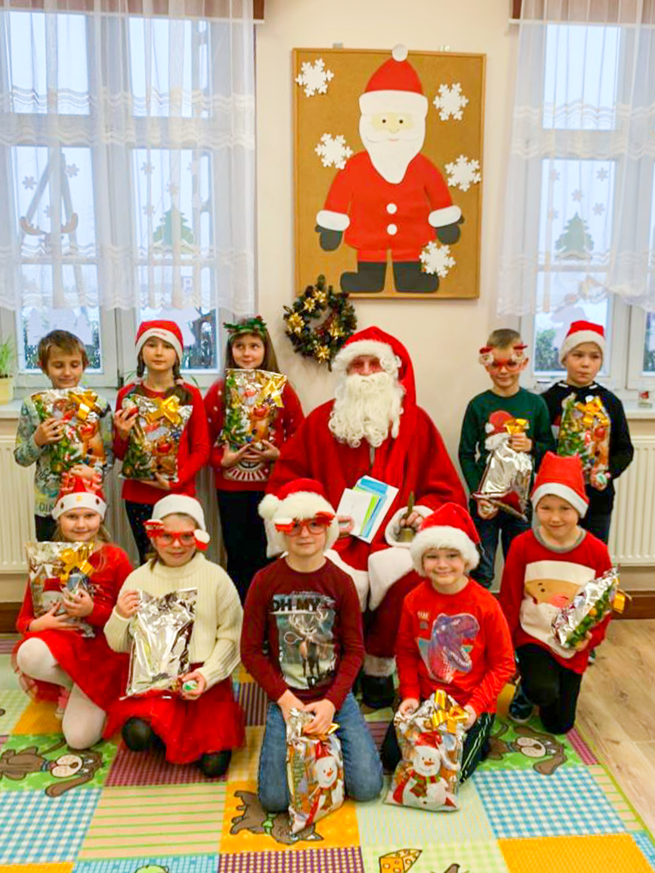 Skąd wzięła się tradycja? Na początku, dzieci piszą list do świętego Mikołaja, wskazując mu, jaki prezent chciałyby dostać. To sposób, by najmłodsi wierzyli w niego jak najdłużej. W Mroczeniu list do św. Mikołaja napisały …panie z Koła Gospodyń Wiejskich, które w imieniu dzieci poprosiły, by przyjechał troszkę wcześniej. Znakomity Gość nie zawiódł i zjawił się już 5 grudnia. W przeddzień swoich imienin. Zabawy było co niemiara w otoczeniu naszej dzielnych śnieżynek, elfów. słodyczy i czapek mikołajowych. Atrybutami Św. Mikołaja są: siwa broda, pastorał, mitra oraz długa, czerwona szata biskupia. To dzieci wiedziały doskonale. Wszyscy milusińscy, którzy przyszli na spotkanie ze św. Mikołajem do mroczeńskiego Domu Strażaka, bezbłędnie spełnili warunek decydujący o otrzymaniu prezentu. Gdy Wspaniały Gość zapytał czy były grzeczne, chórem opowiedziały „Tak!”. 6 grudnia święty Mikołaj odwiedził również wiele innych miejsc: szkoły, przedszkola. A do naszego Urzędu zawitała grupa asystentek św. Mikołaja. Otrzymaliśmy od nich cudowne kartki świąteczne.