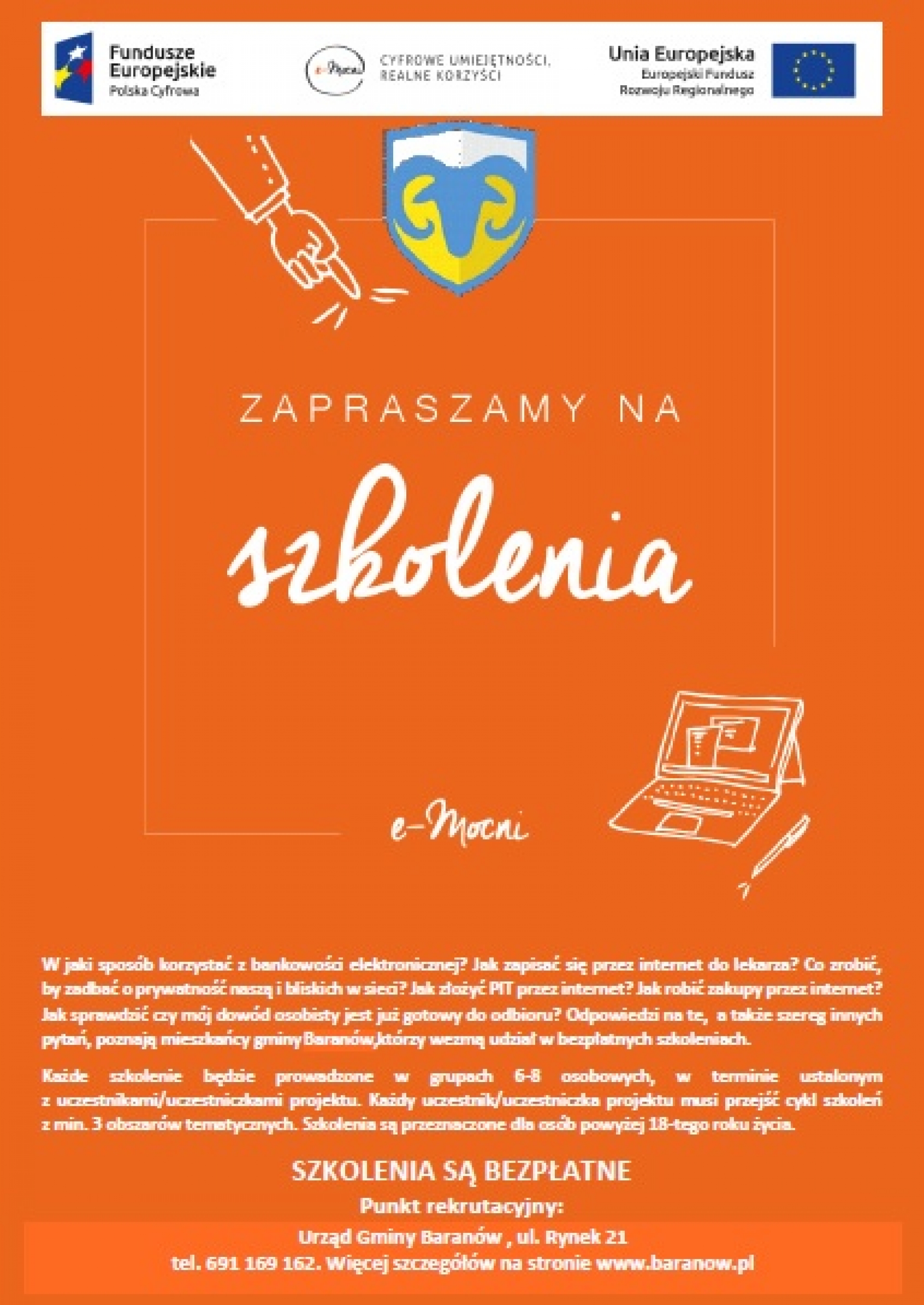 Nauczysz się, jak dzięki komputerowi z internetem szukać pracy, zadbać o zdrowie, załatwiać codzienne sprawy, uczyć się, inwestować, odpoczywać, rozwijać swoje hobby i życie duchowe, a także stać się bardziej aktywnym obywatelem. Więcej informacji znajdziesz na stronie www.e-mocni.org.pl