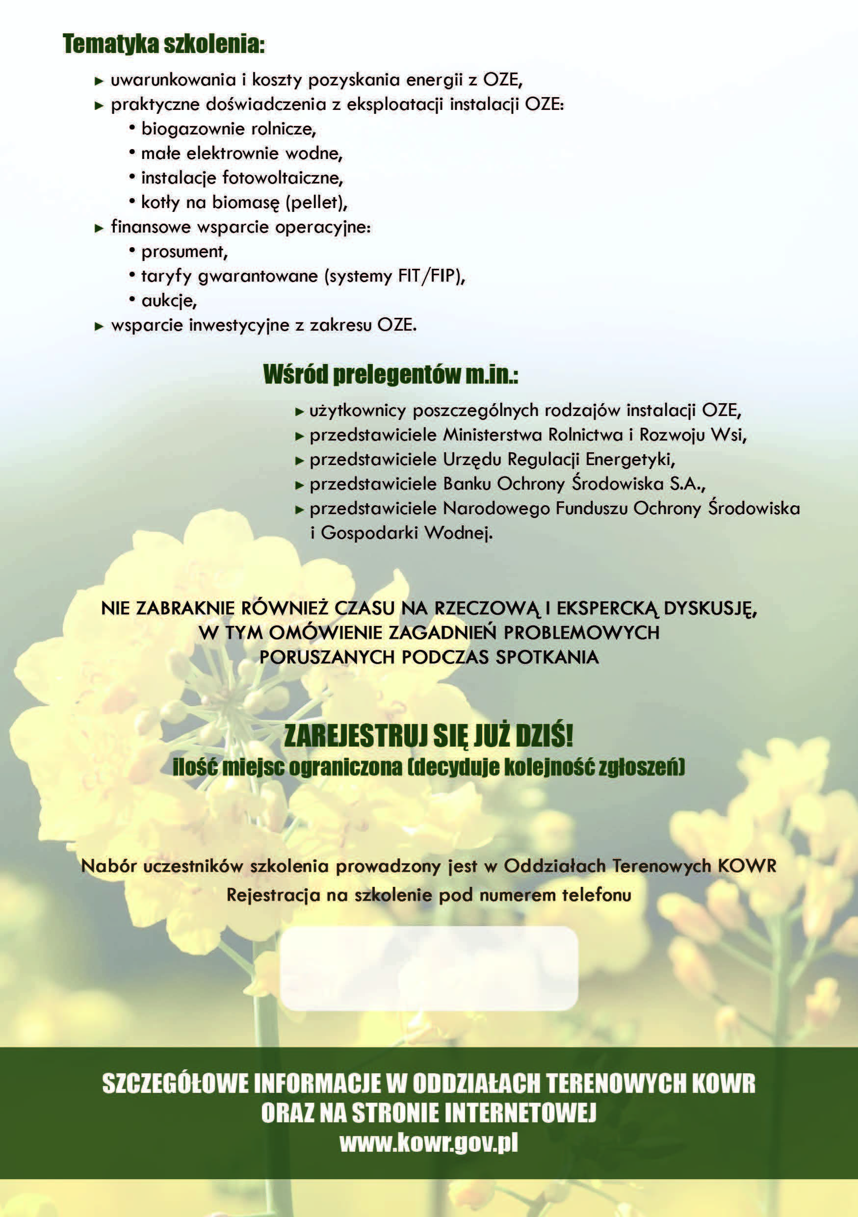 Krajowy Ośrodek Wsparcia Rolnictwa zaprasza na konferencję dla mieszkańców województwa Wielkopolskiego, która odbędzie się 19 marca w Sielinku na ul. Parkowej 2